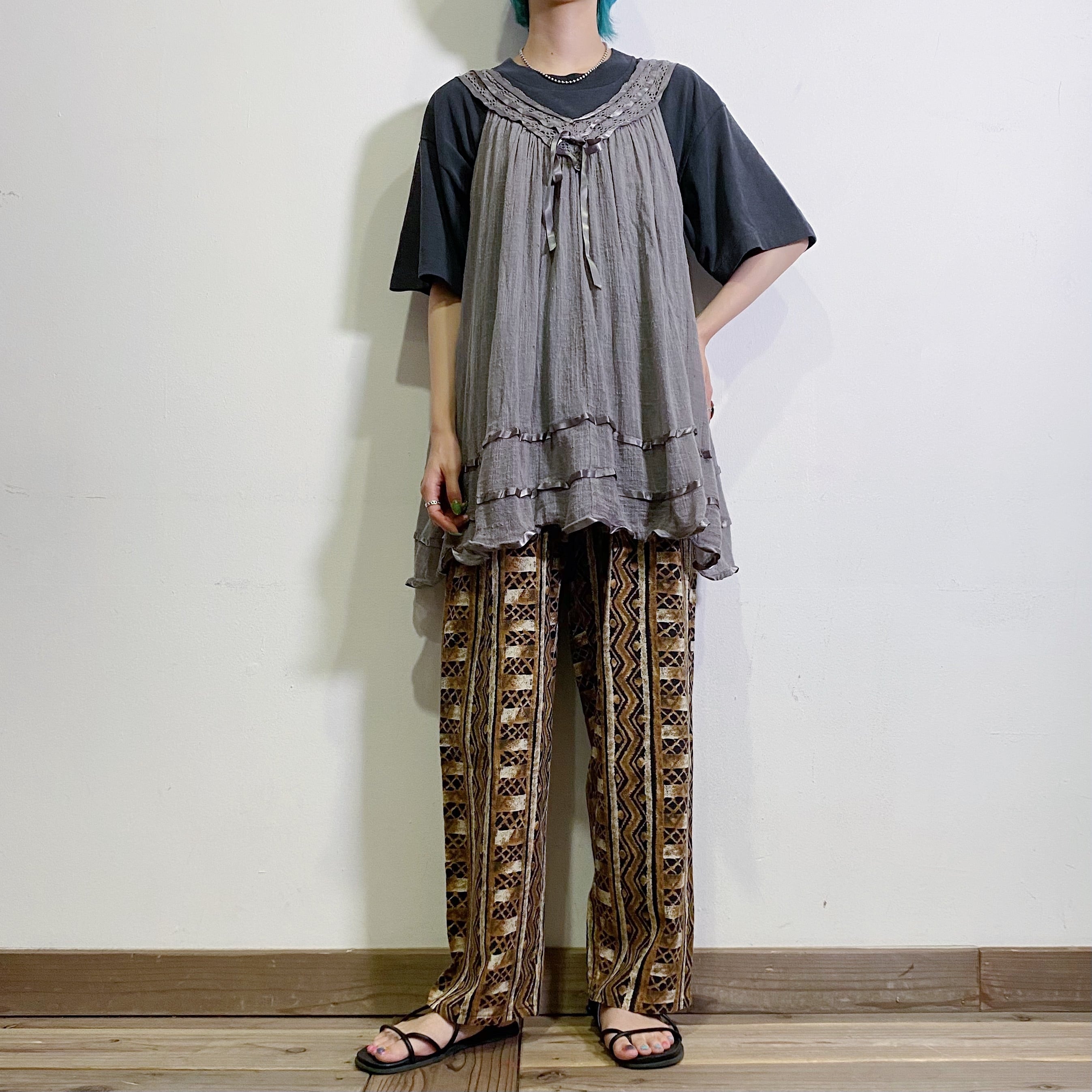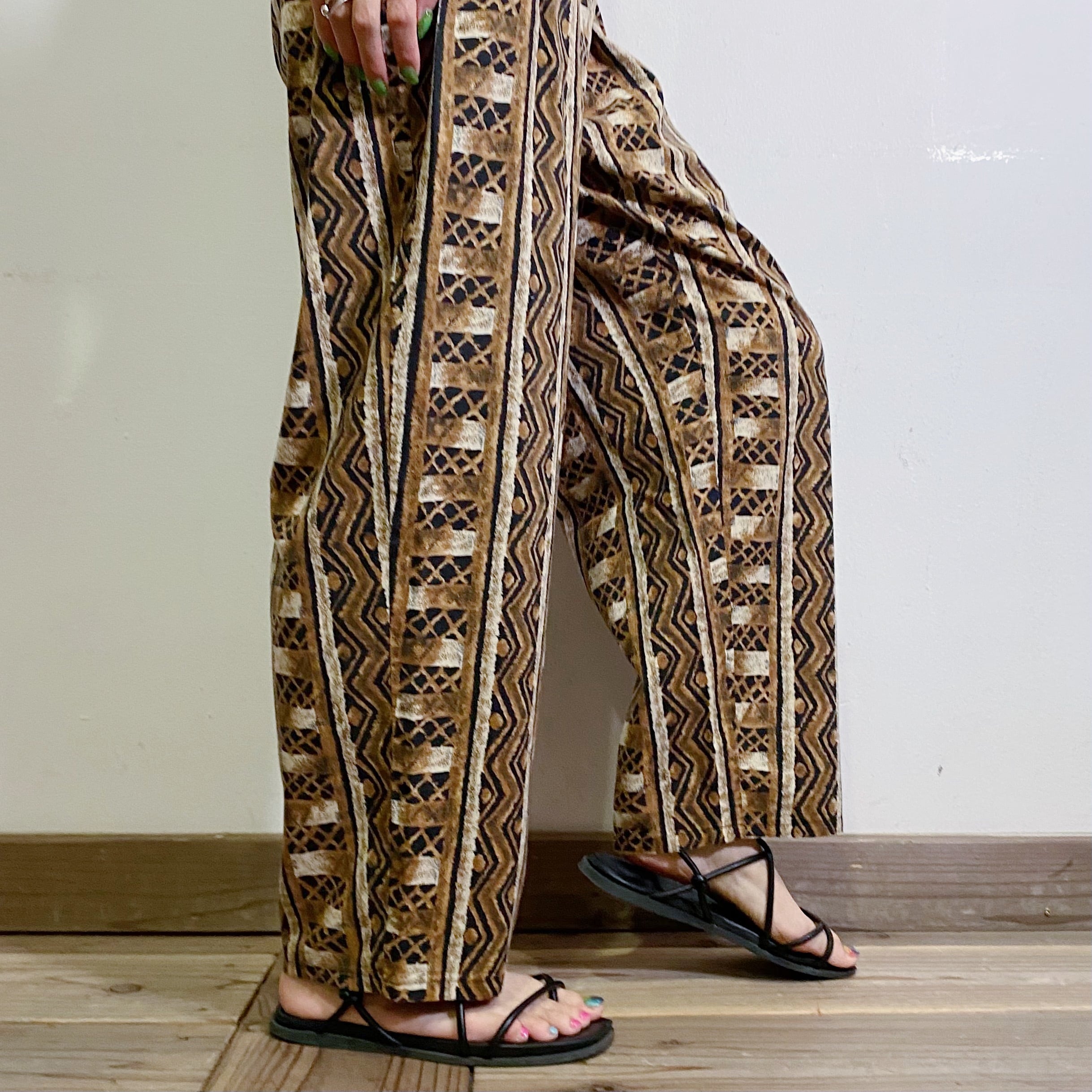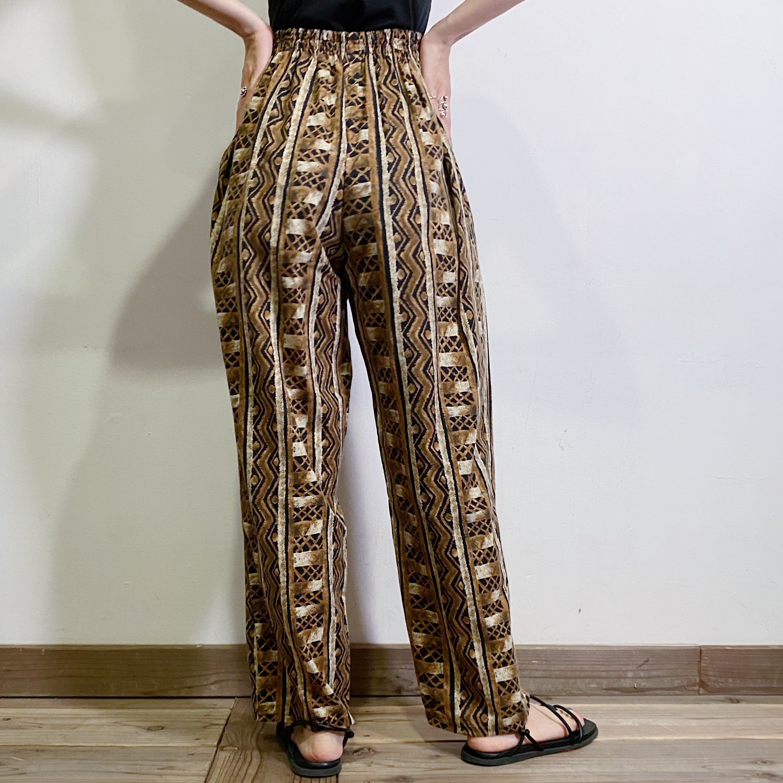80s brown and black rayon easy pants