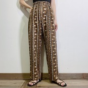 黒と茶色の落ち着いた色合いにジグザグとした個性的な柄が可愛い、イージーパンツです。