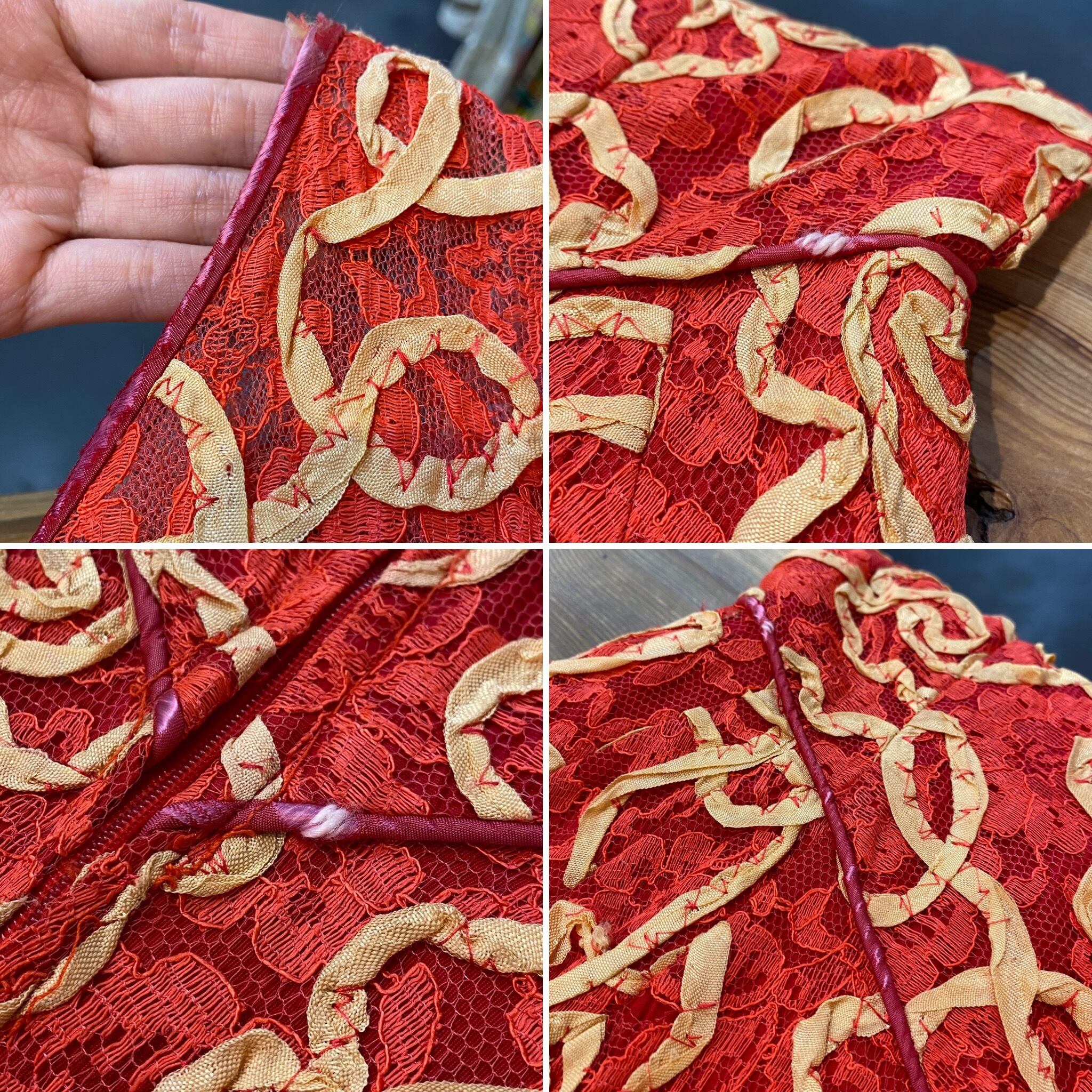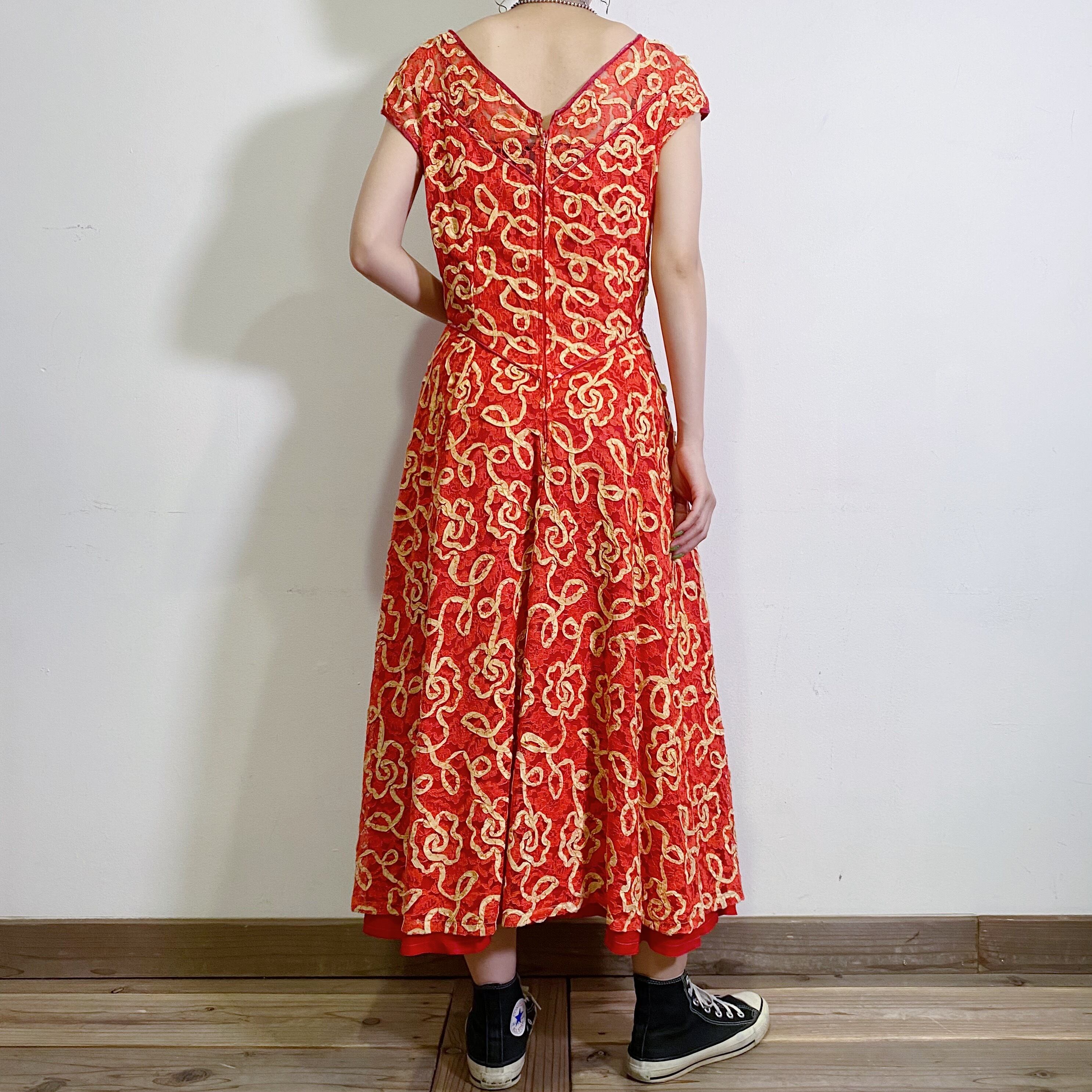 鮮やかな赤の総レースがパッと目を惹く、50年代のヴィンテージドレスです。