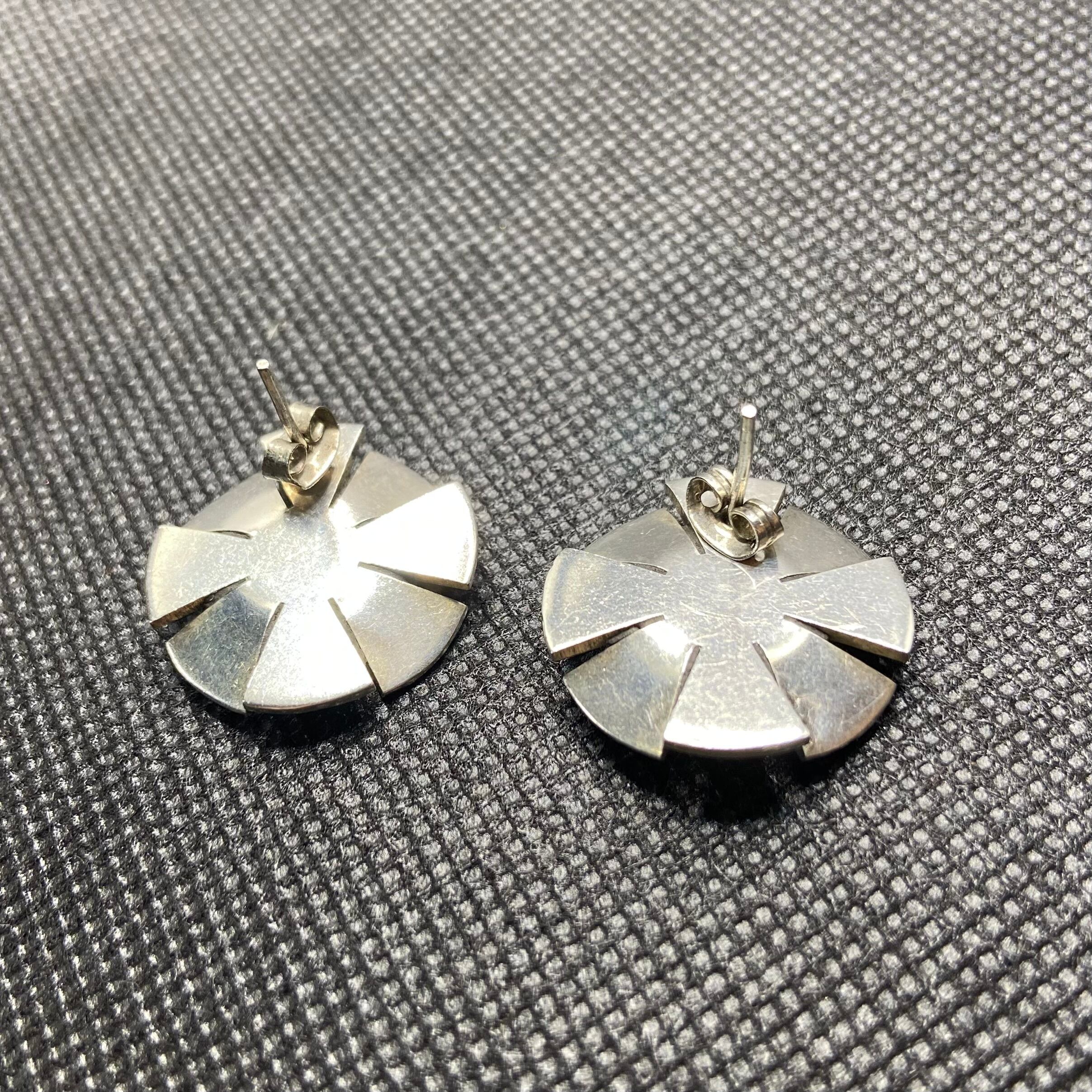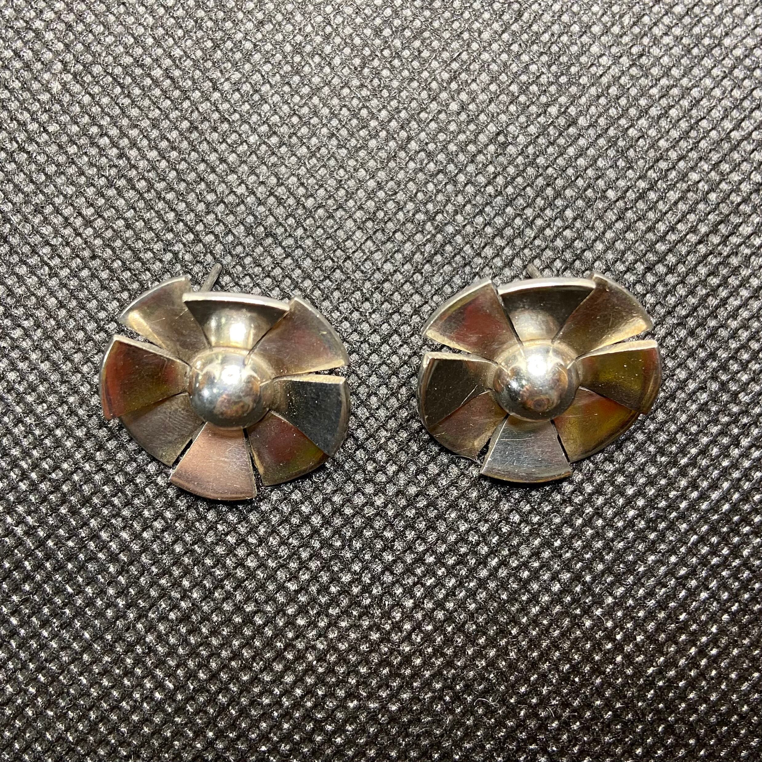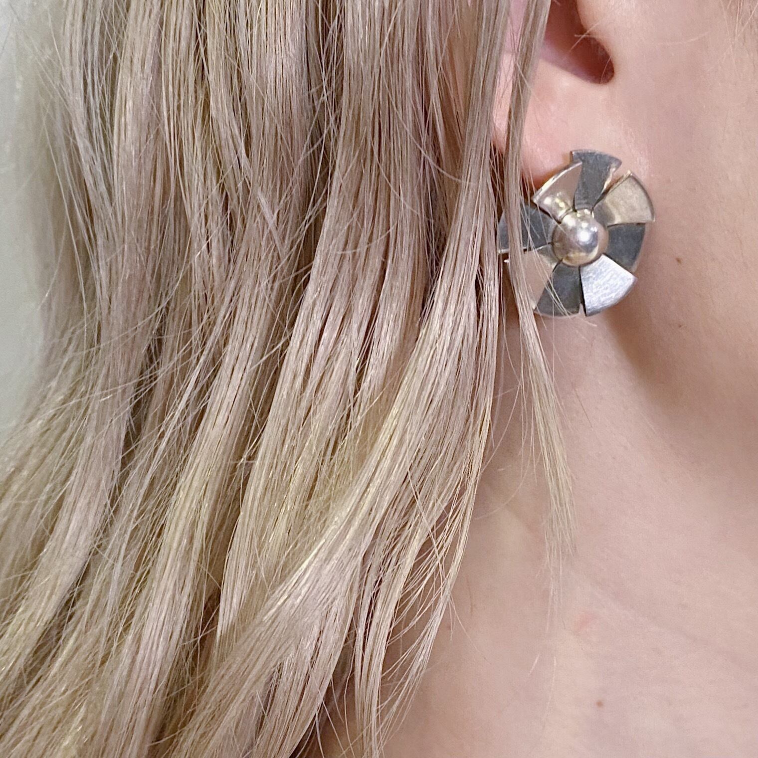 ころんとした丸いフラワーモチーフが可愛い、925シルバーのピアスです。