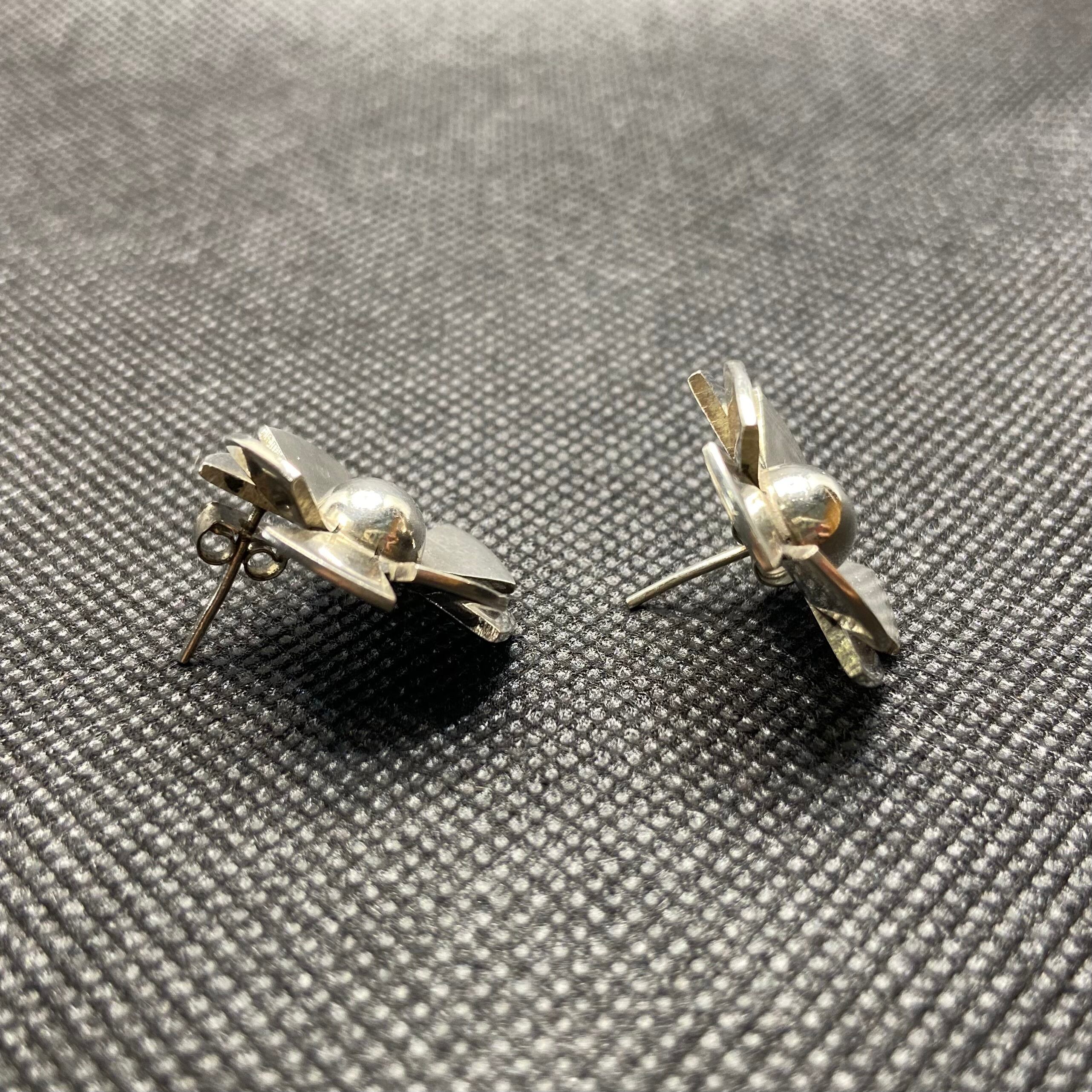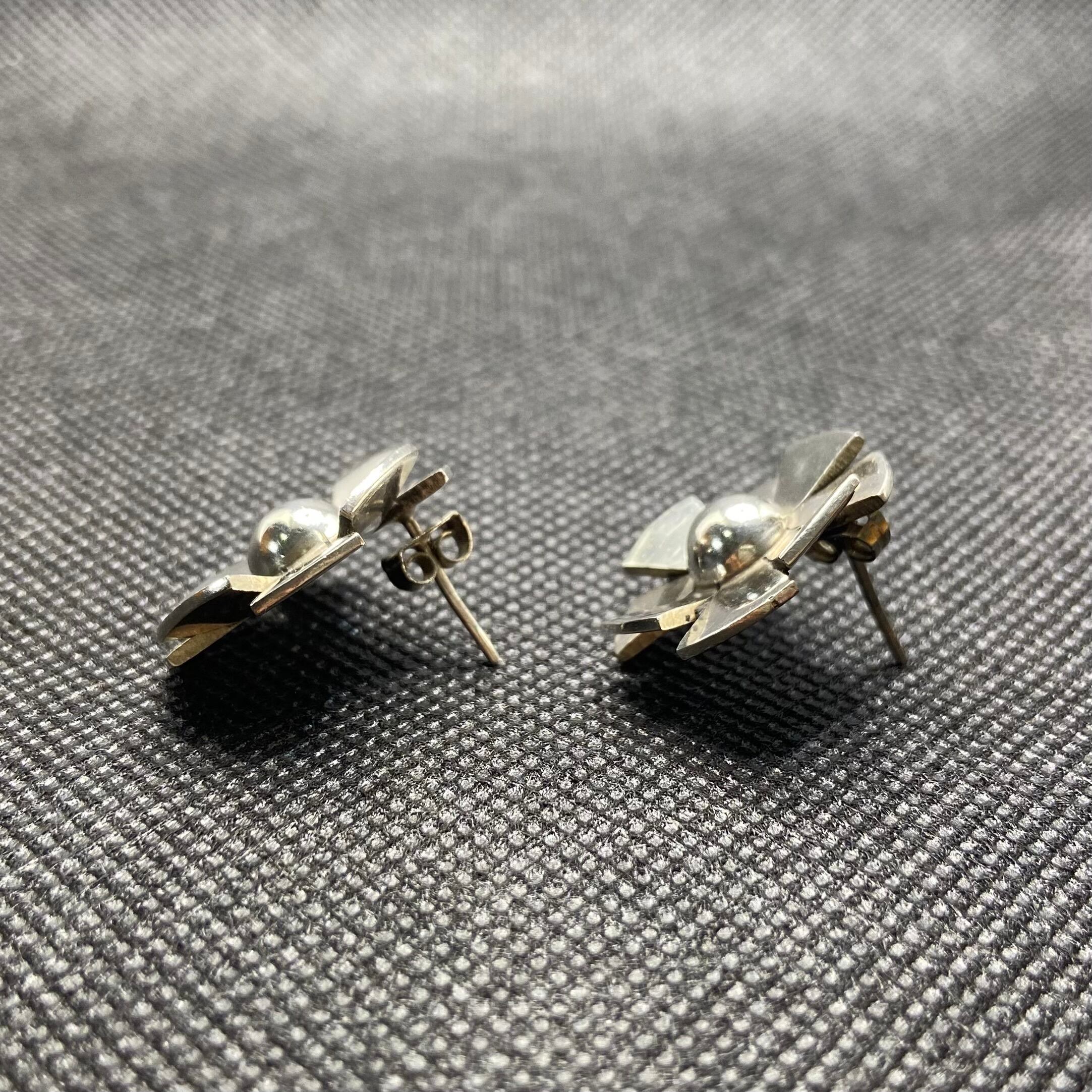 925 silver flower motif pierce earrings
