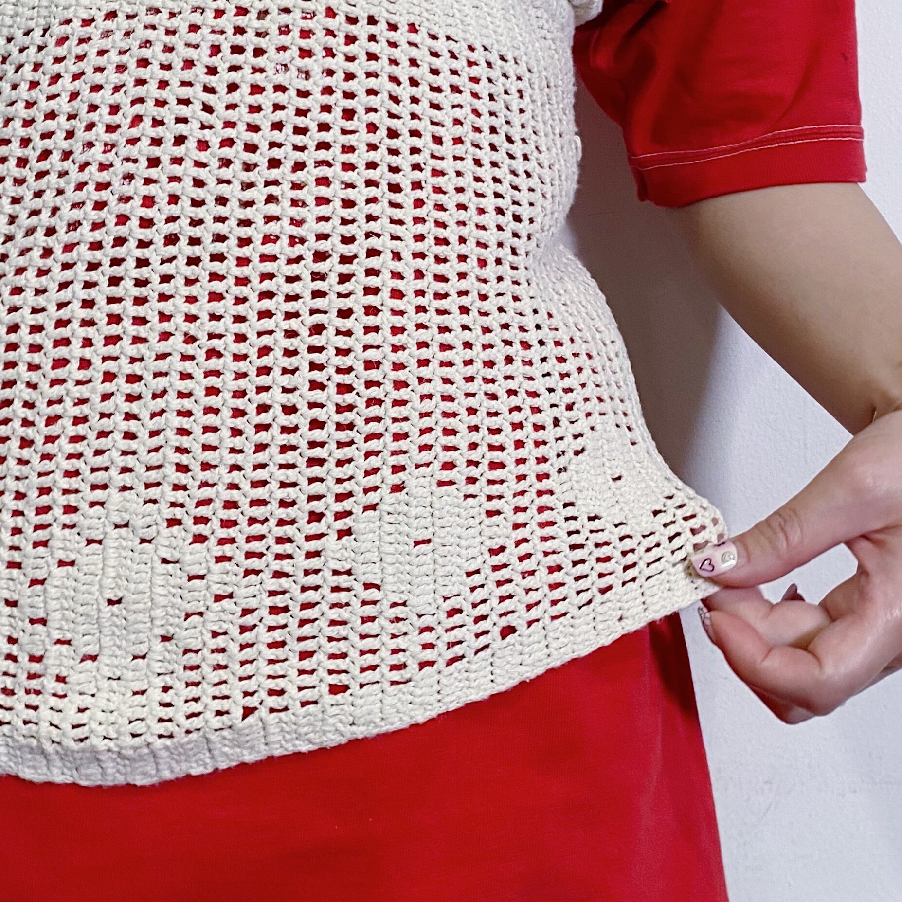 コットン素材のクロシェ編みが可愛いビスチェです。
