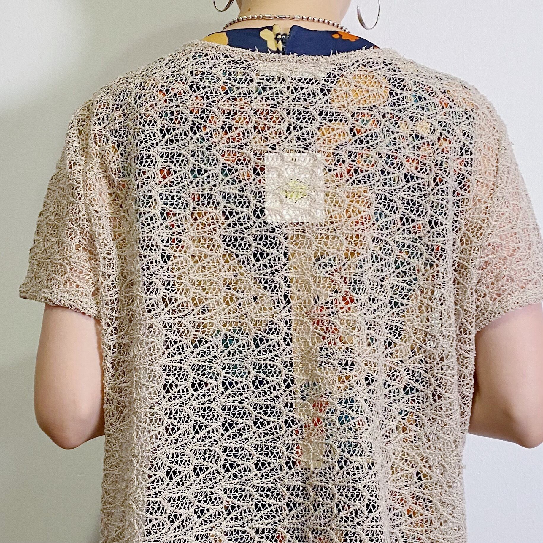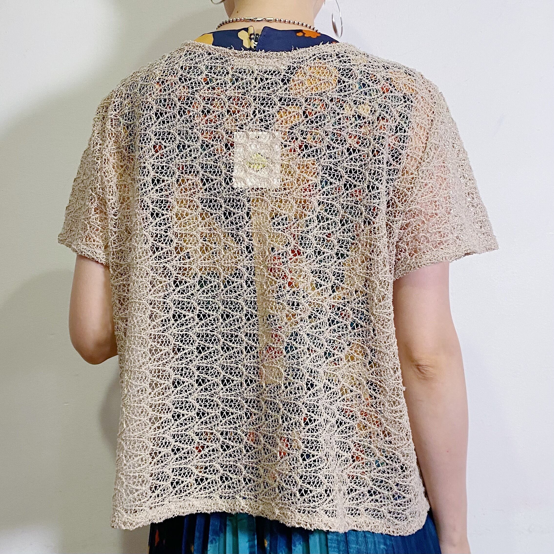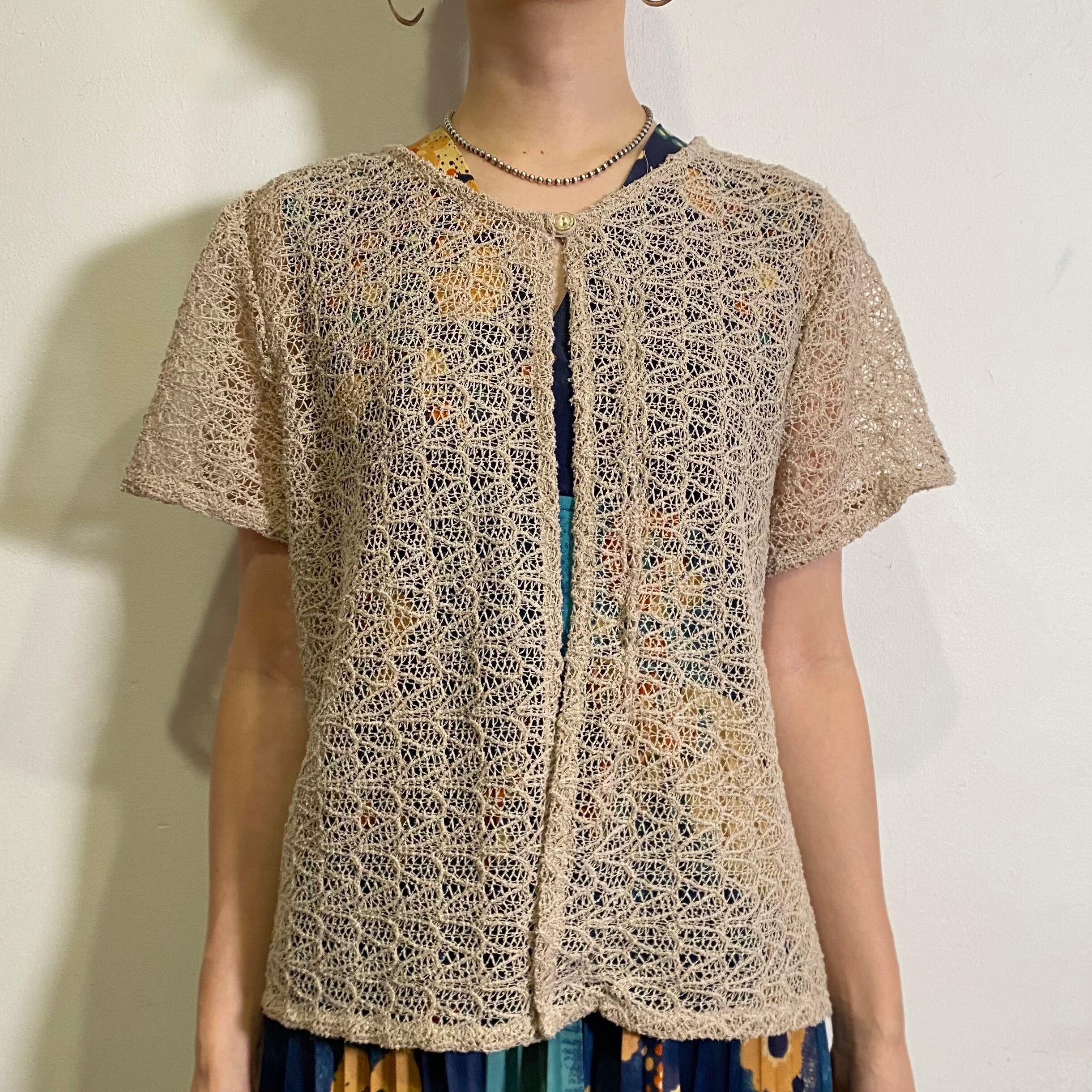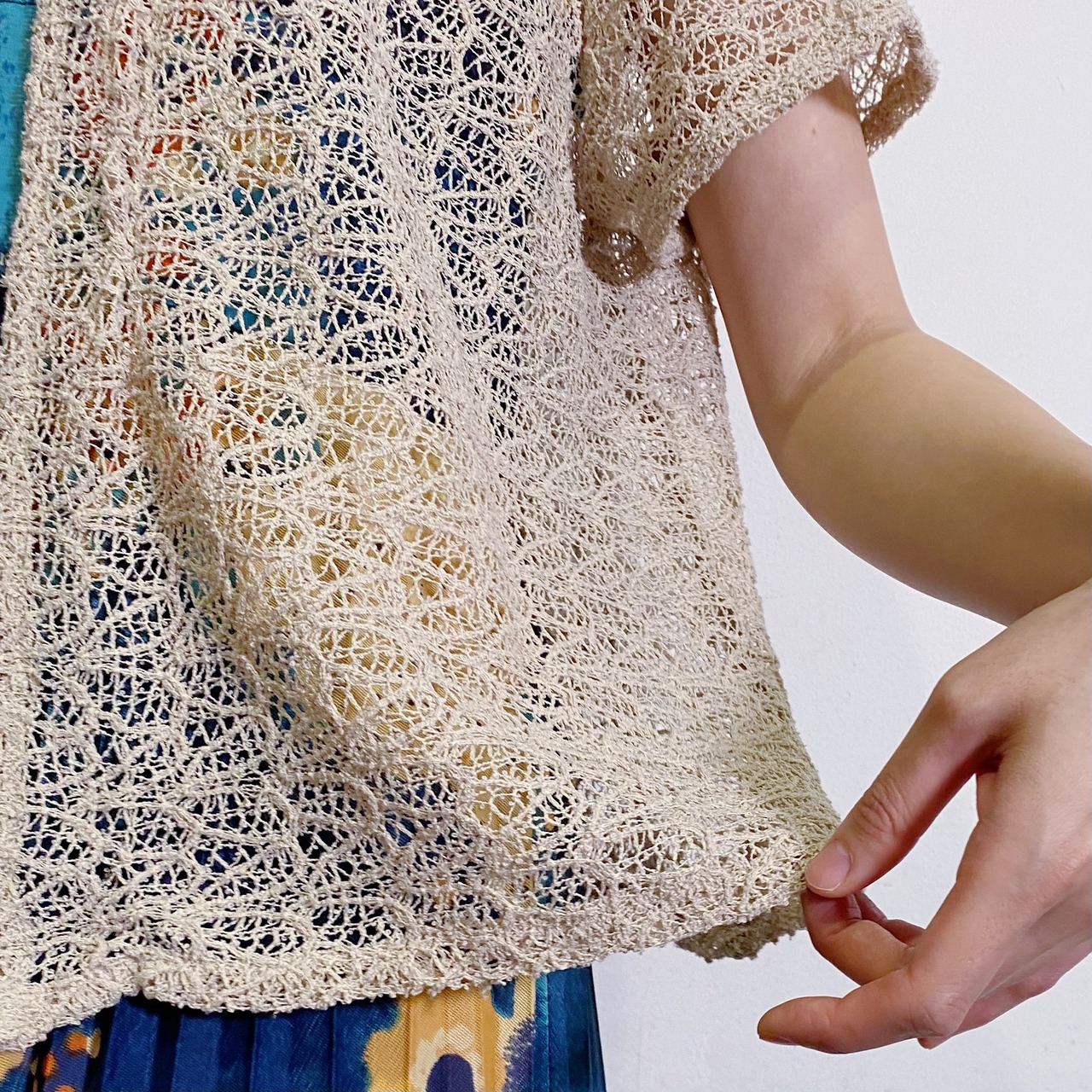 クロシェ編みがとっても可愛い半袖のカーディガンです。