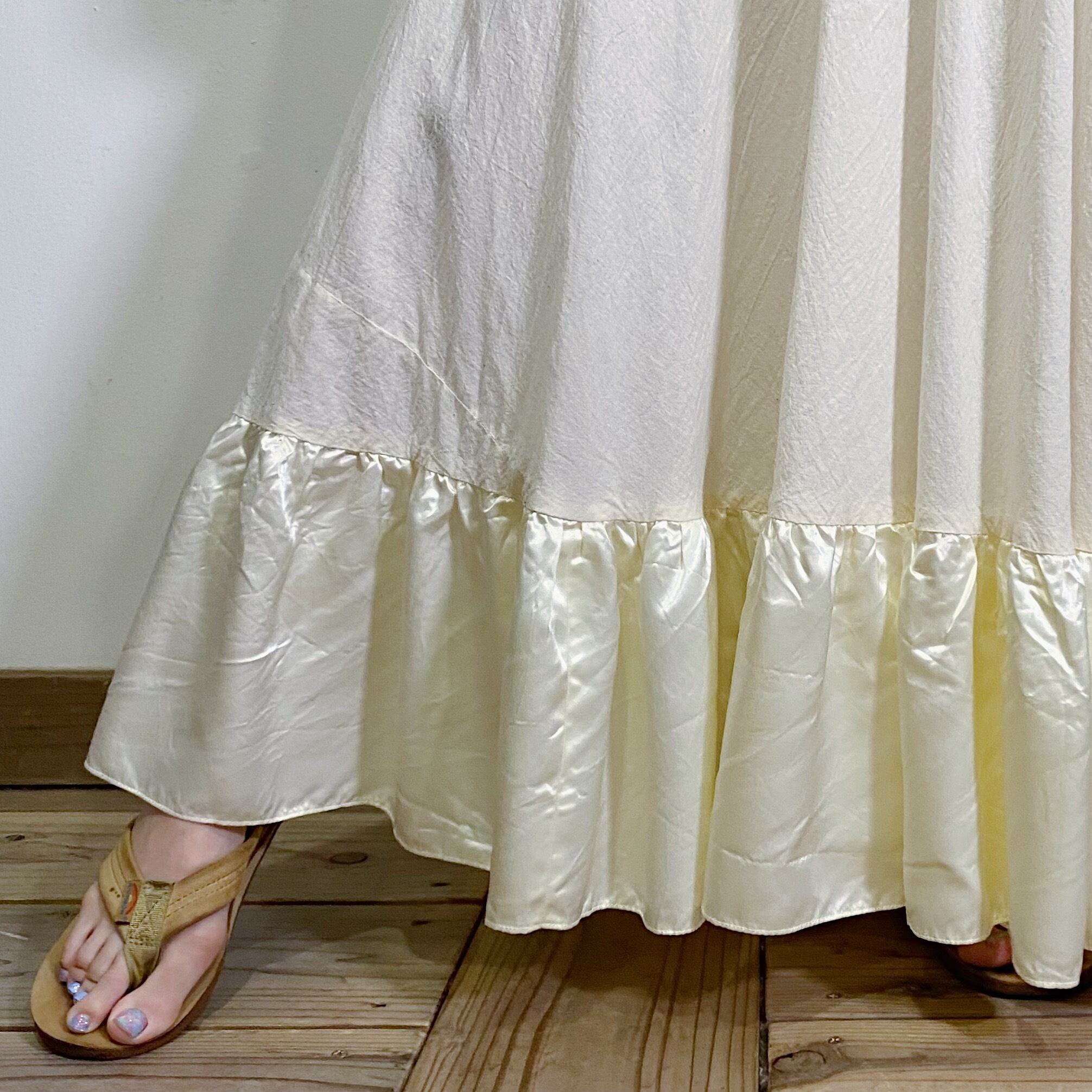 コットンとサテン地の切り替えが可愛い、70年代のスカートです。