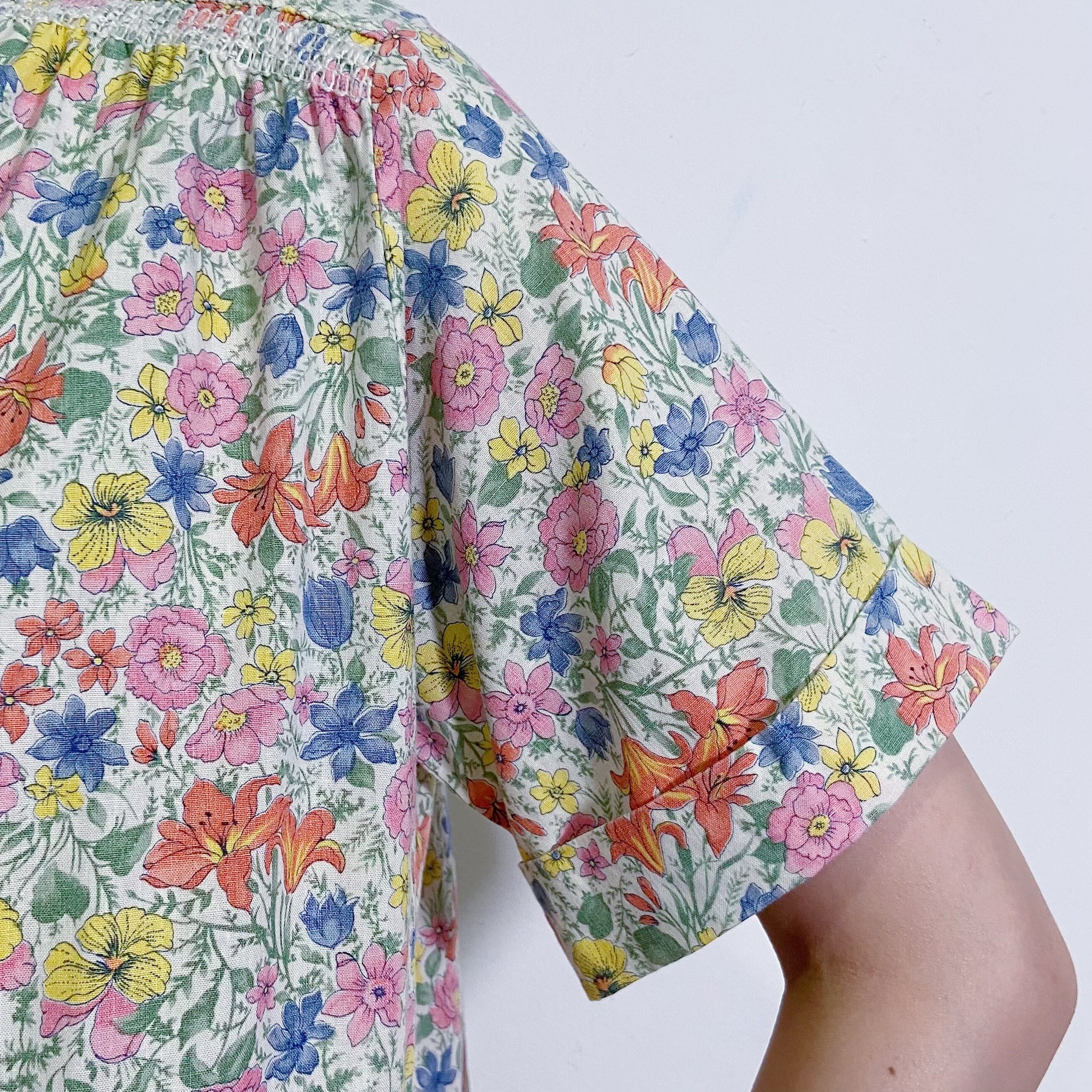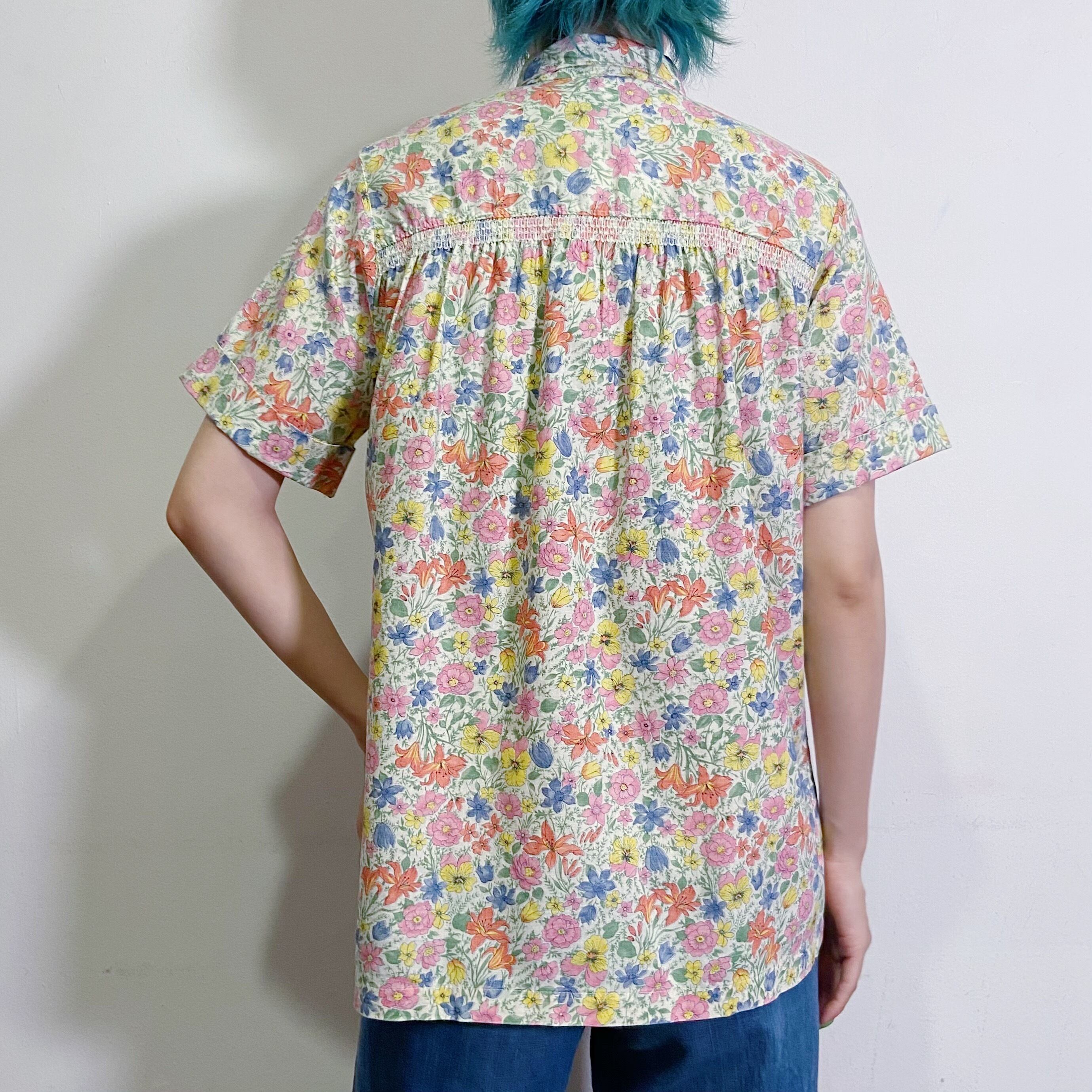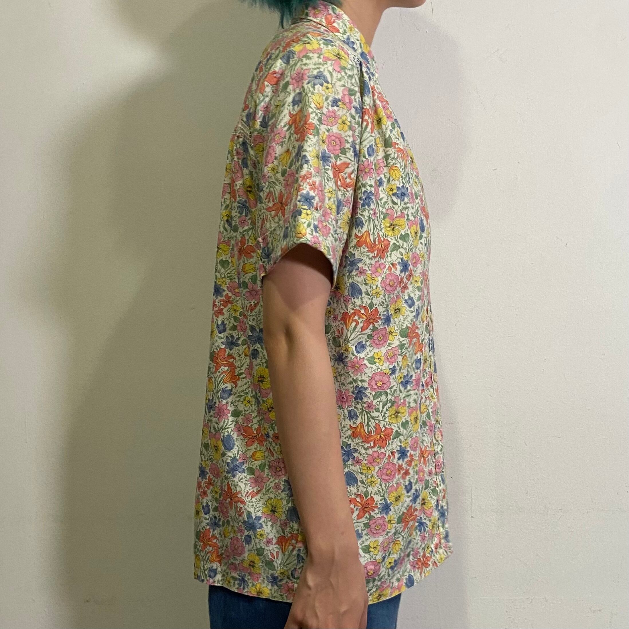 カラフルで華やかな花柄が可愛い80年代のシャツです。