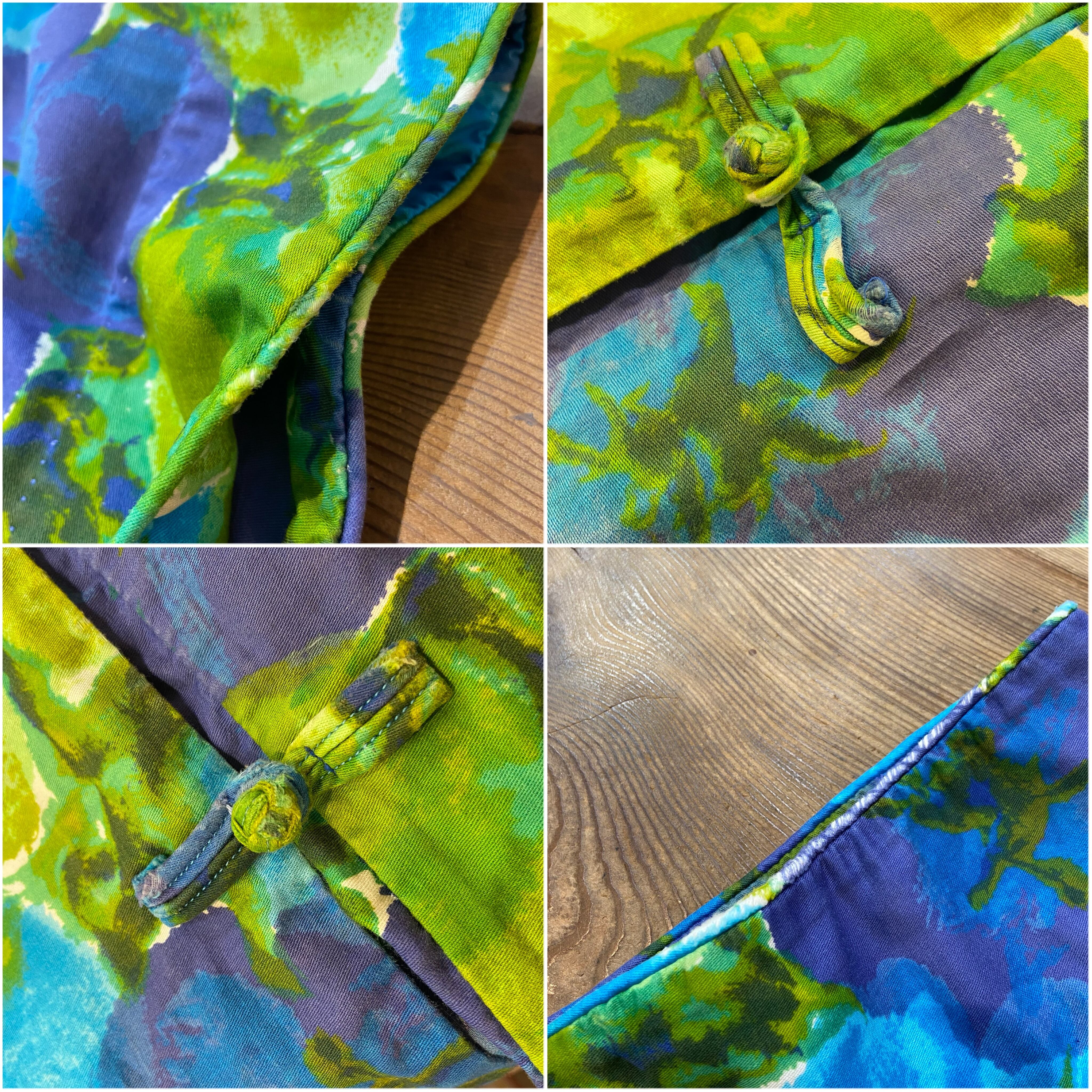 パープルとグリーンのマーブル模様のようなお花柄が可愛い、60年代のガウンワンピースです。