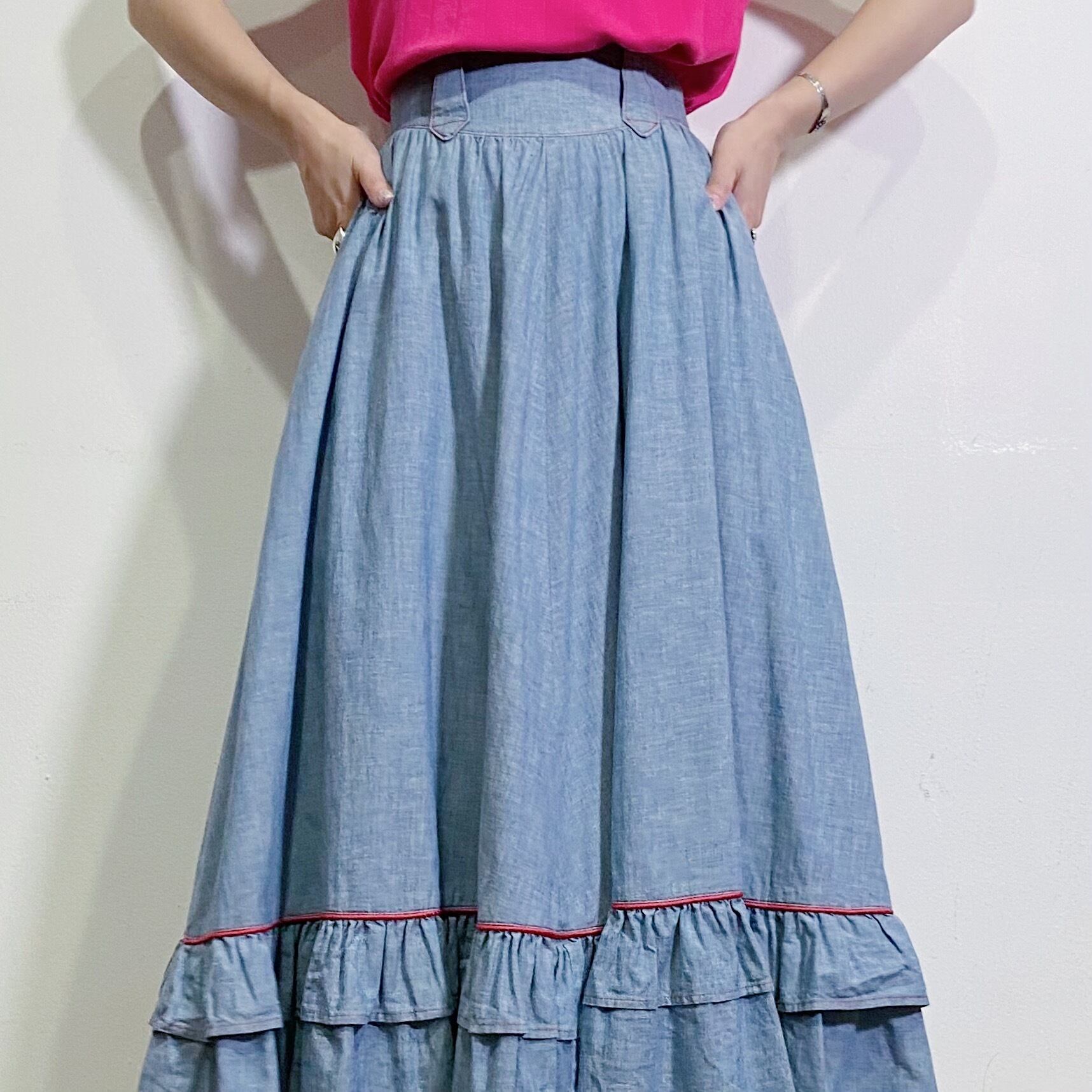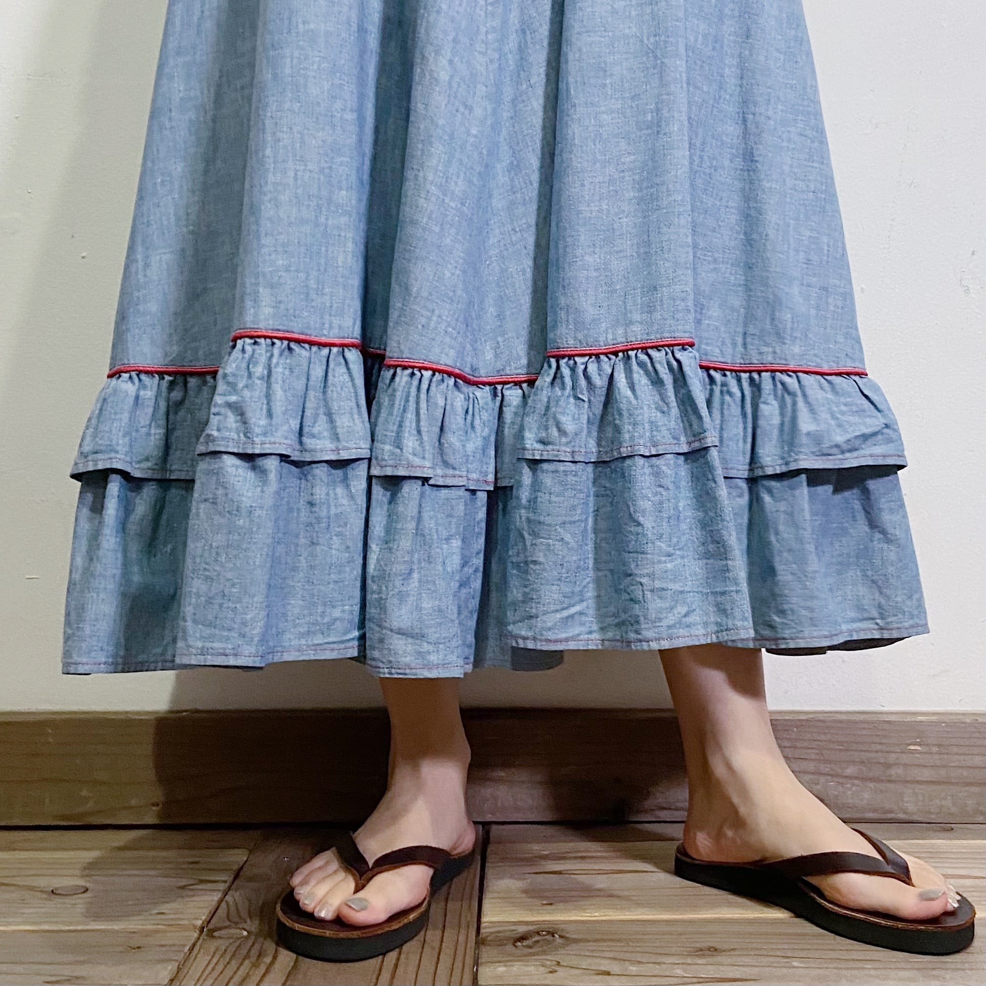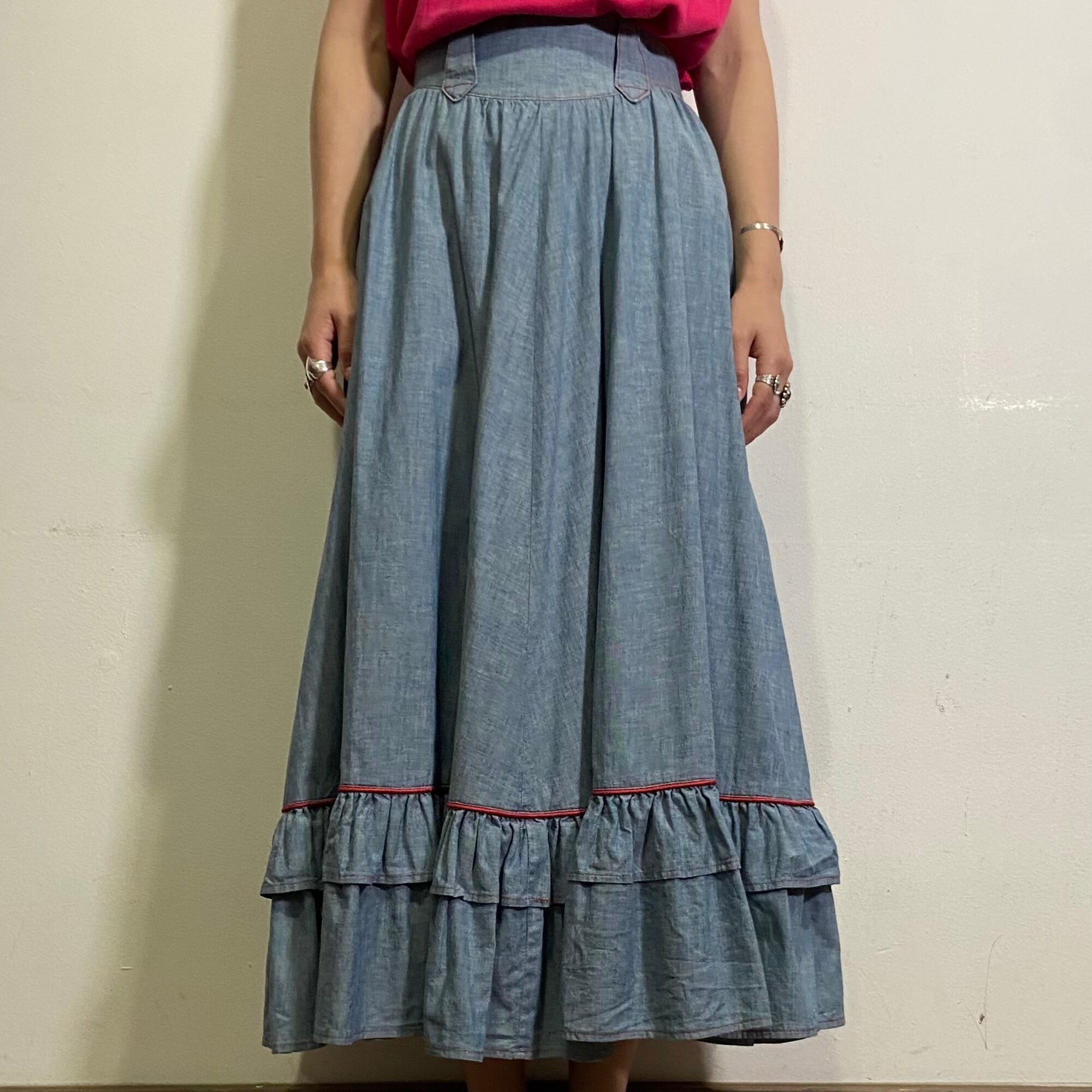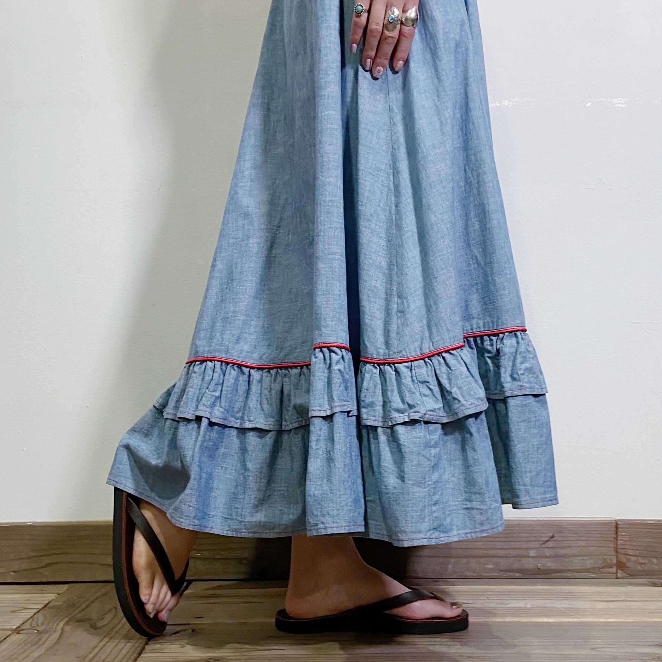 70s chambray tiered long skirt