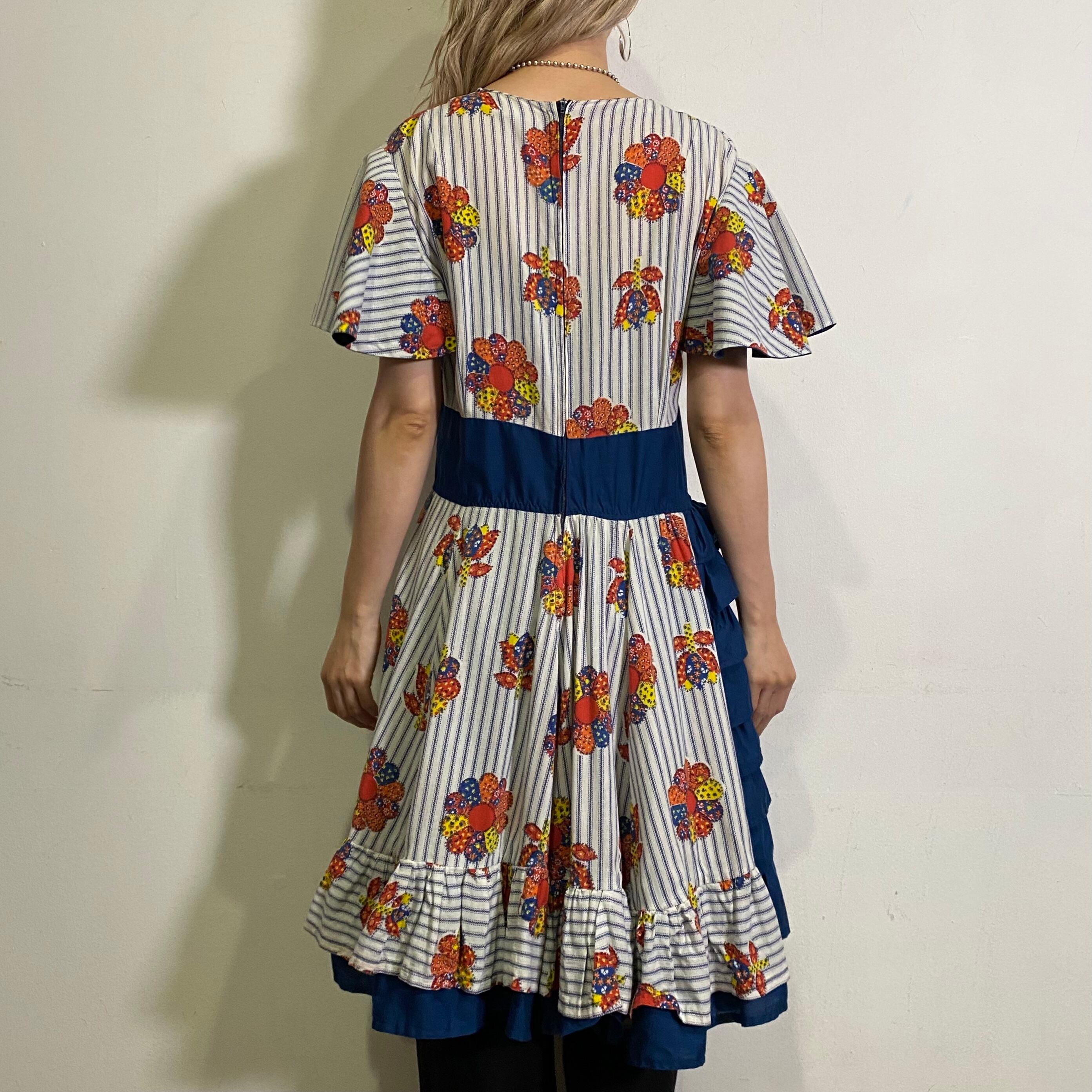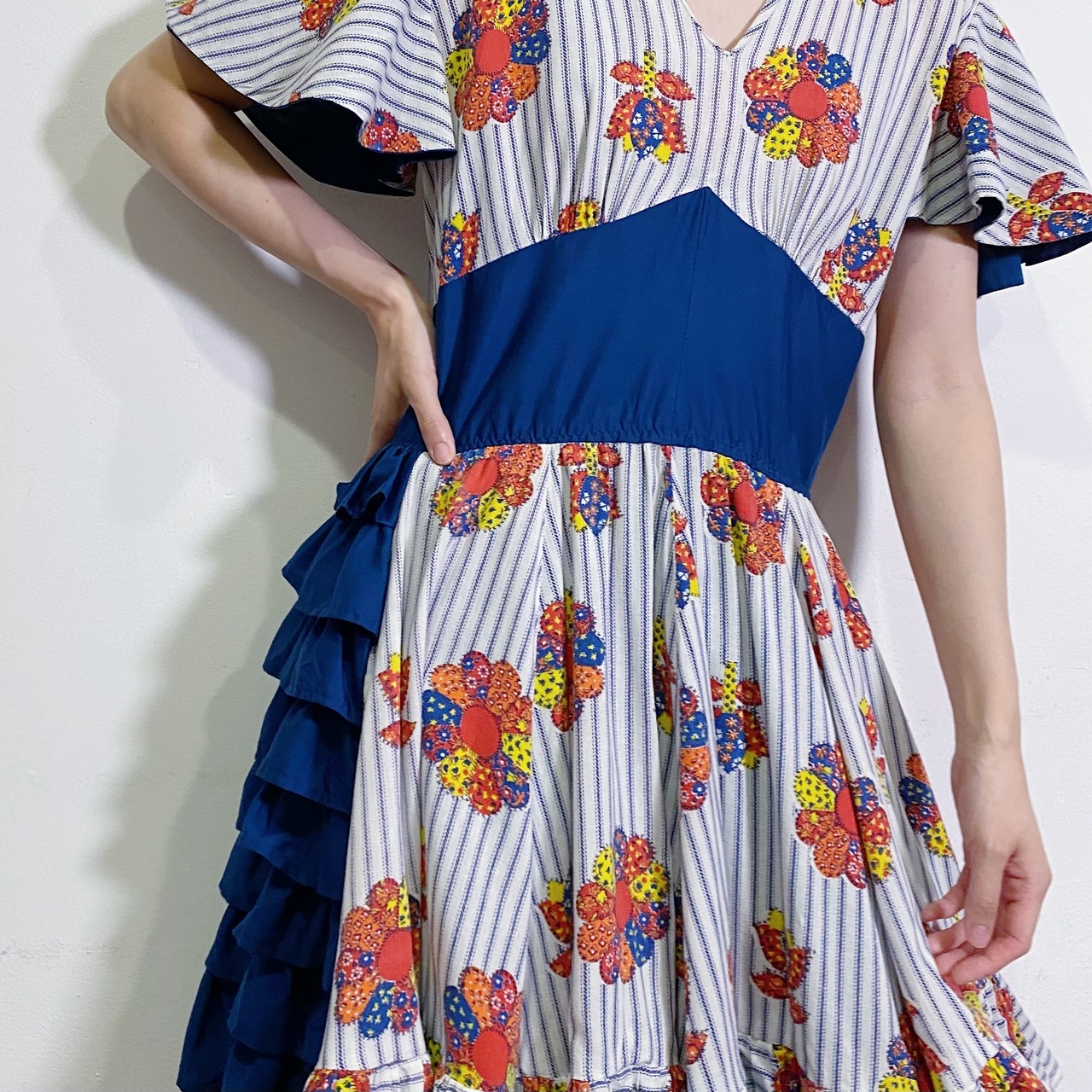 お花のパッチワークプリントが可愛い、70年代のワンピースです。