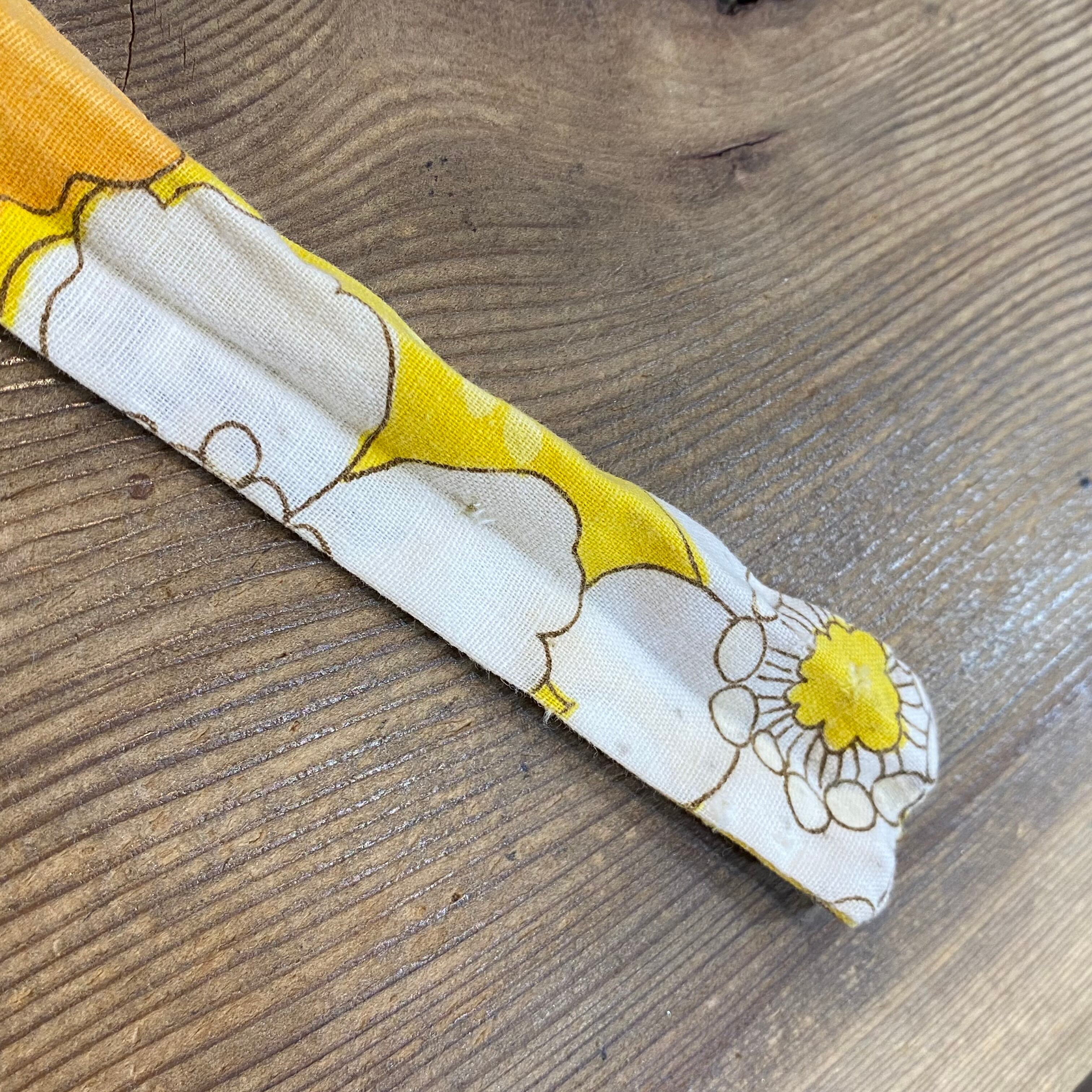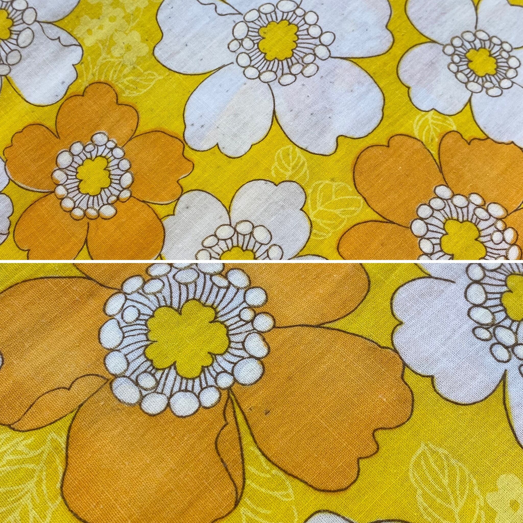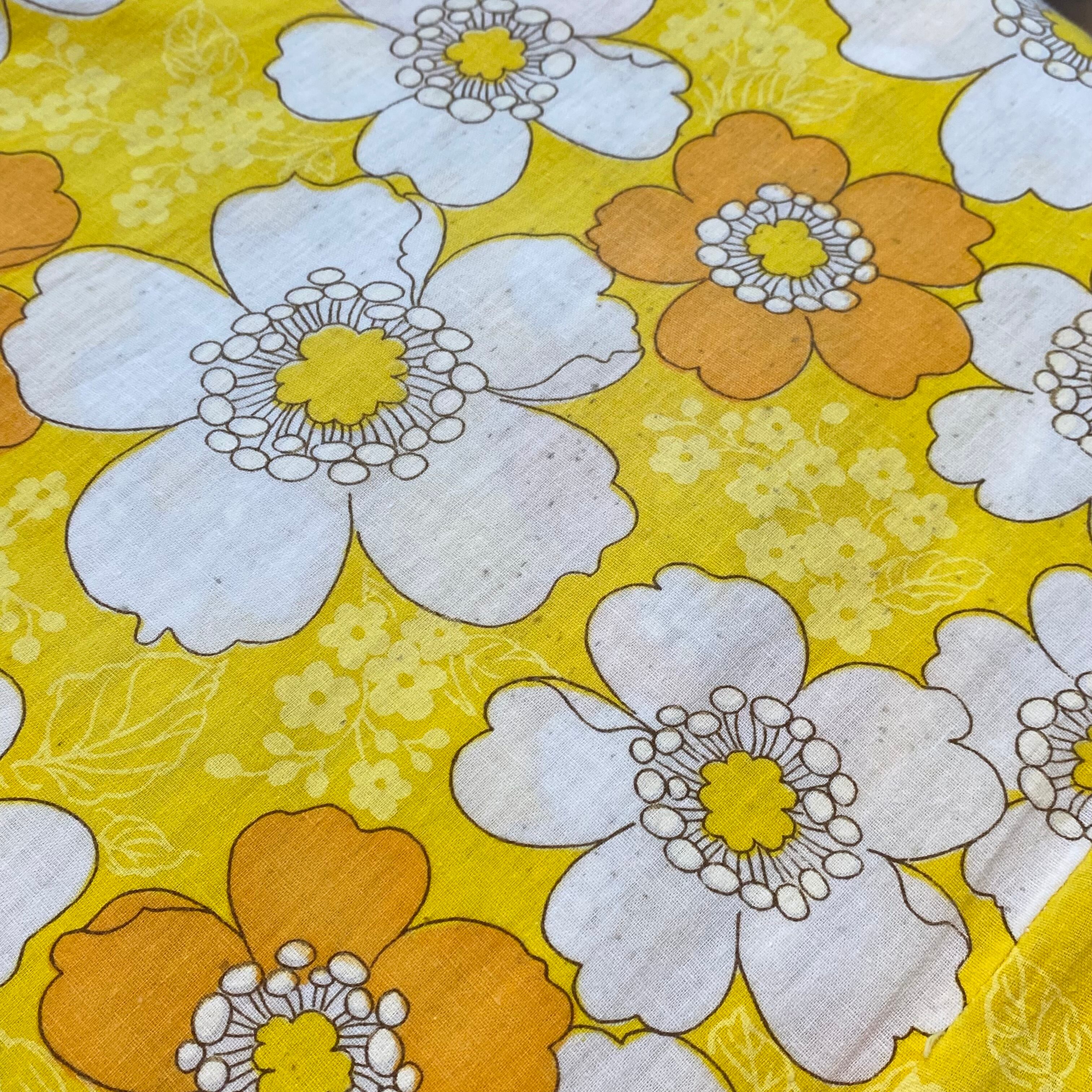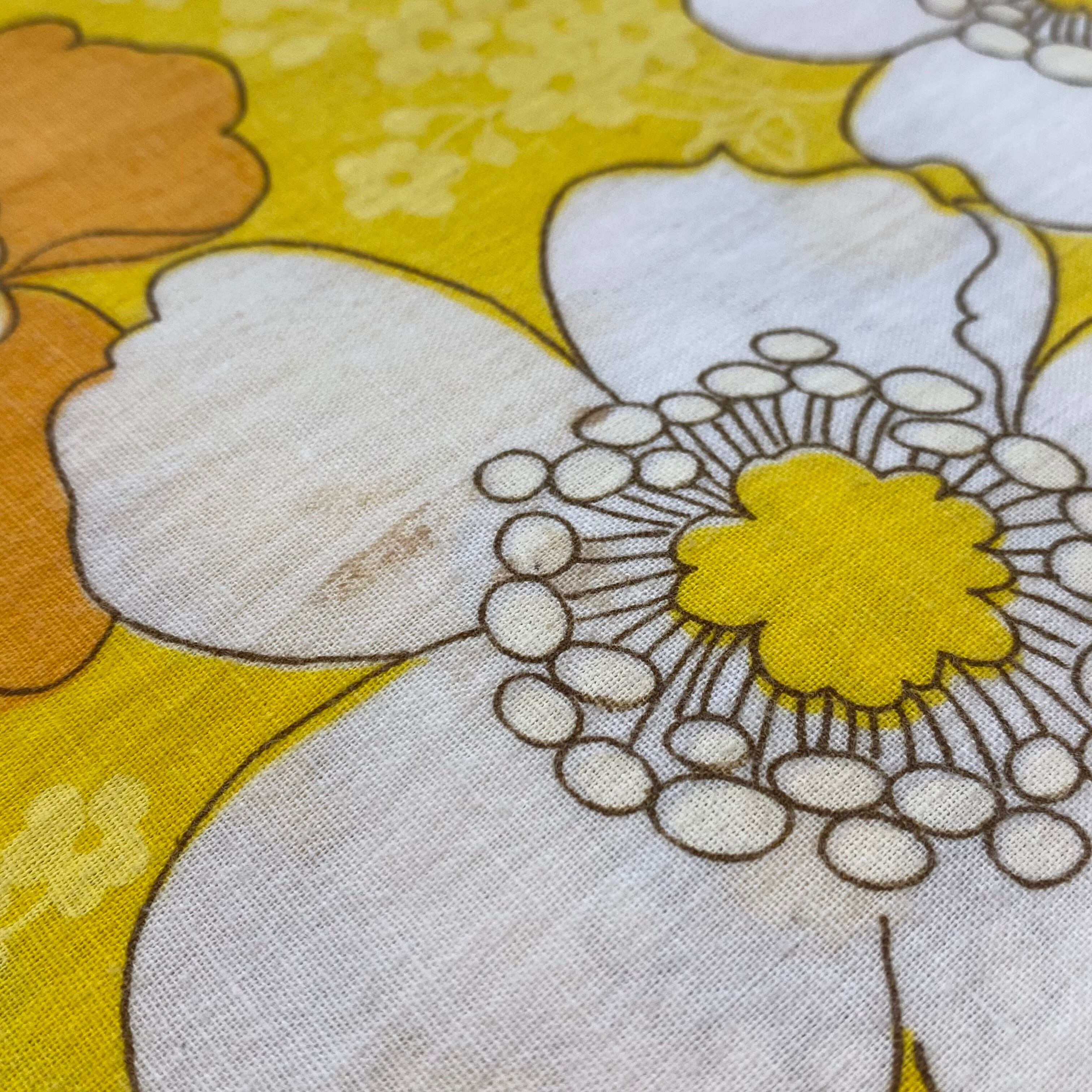 イエローベースにオレンジの花柄が可愛い、70年代のワンピースです。