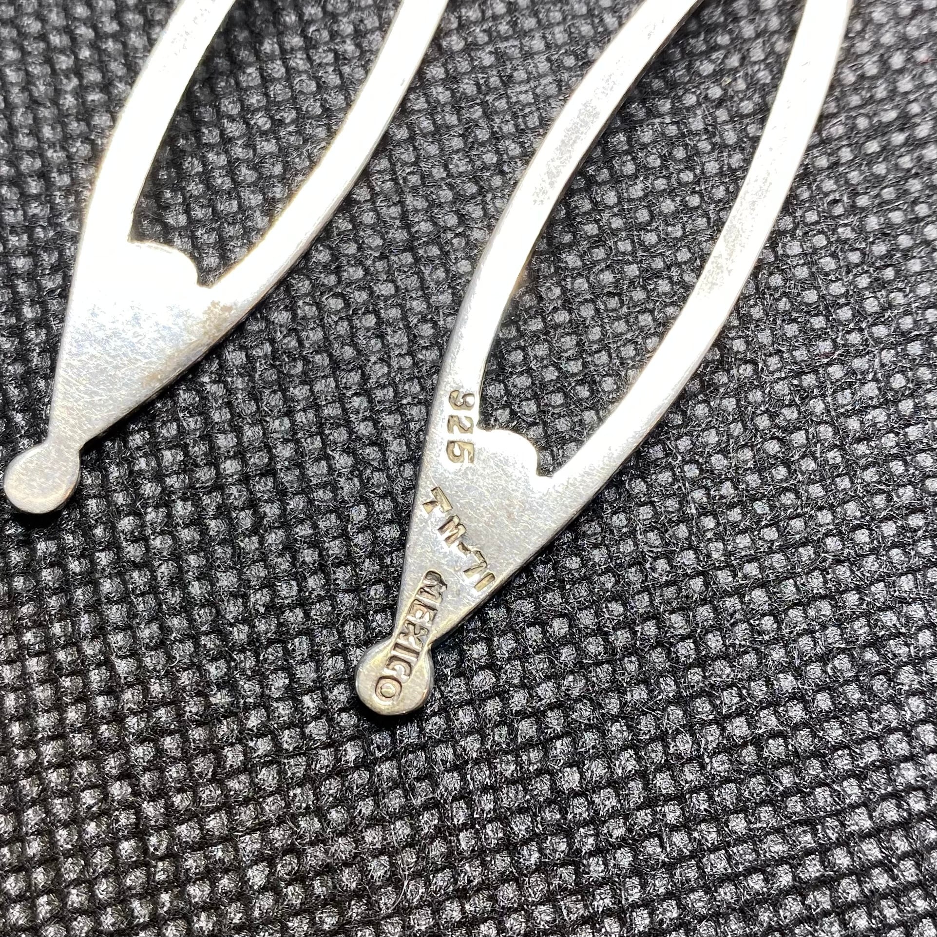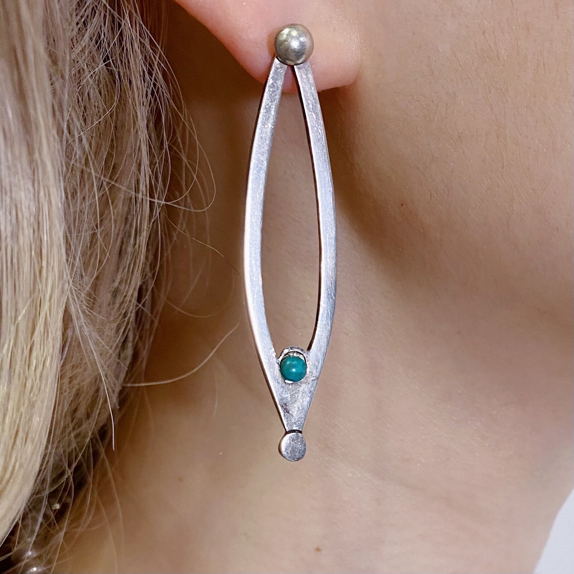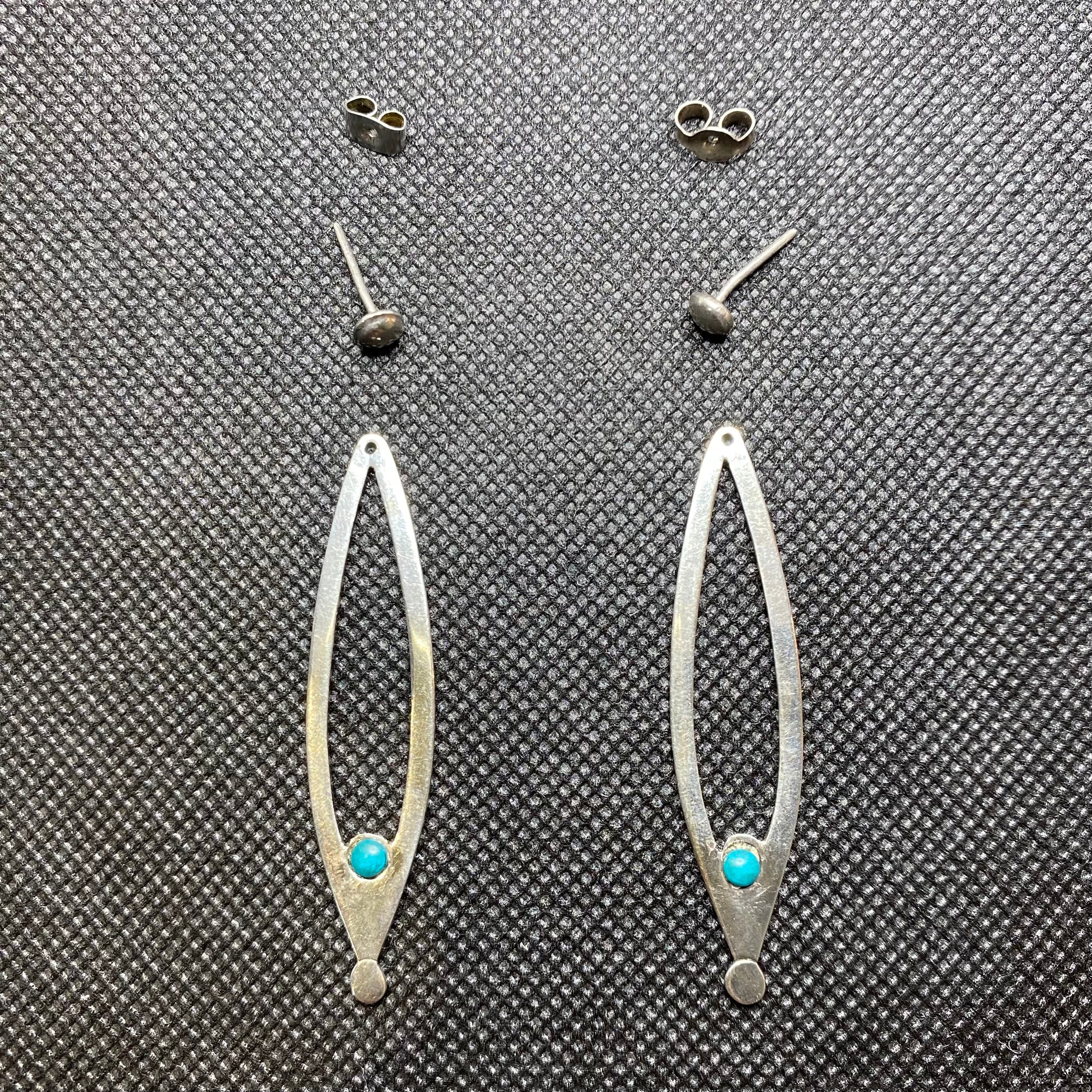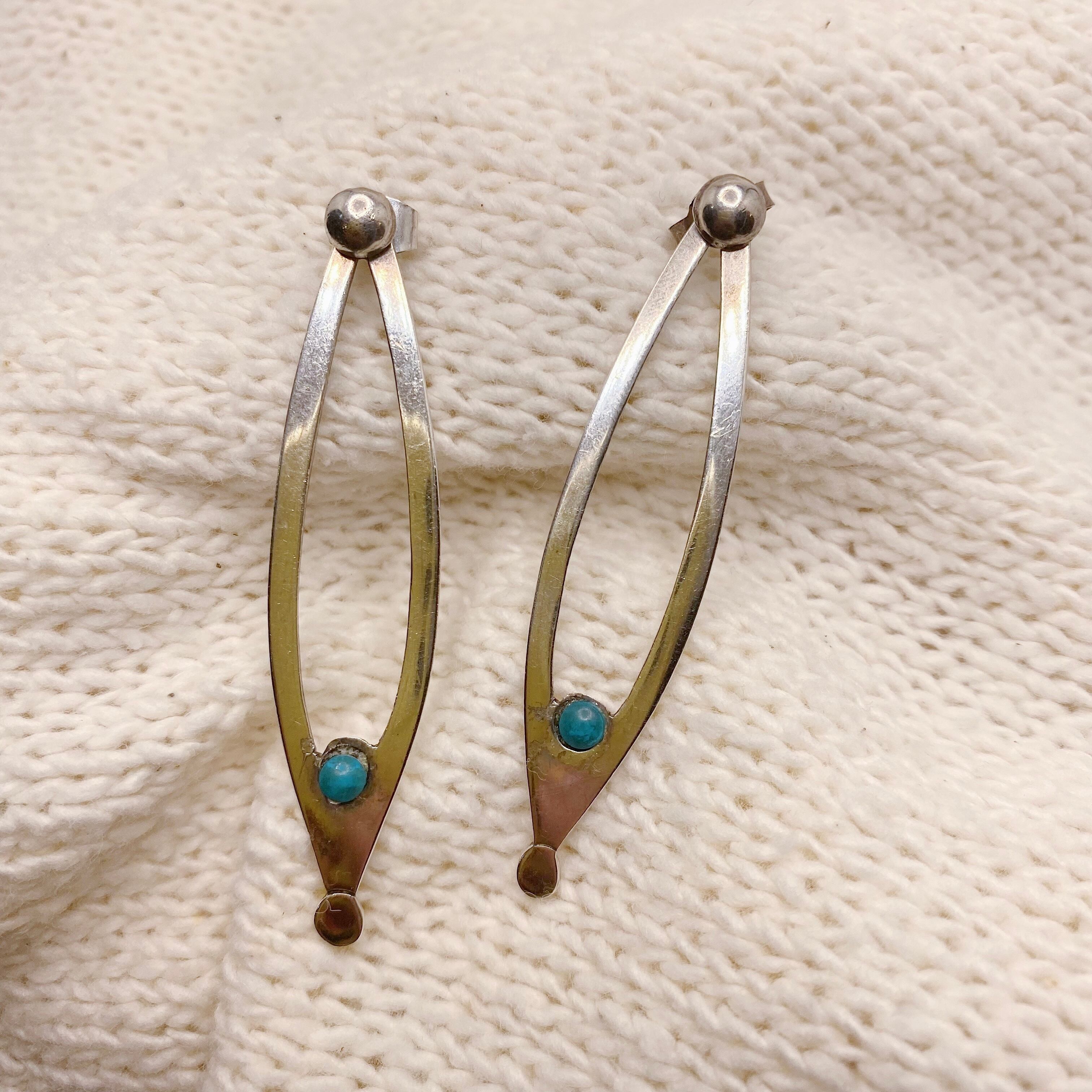 大ぶりな細長いデザインにターコイズがアクセントになった、メキシコの925シルバーのピアスです。