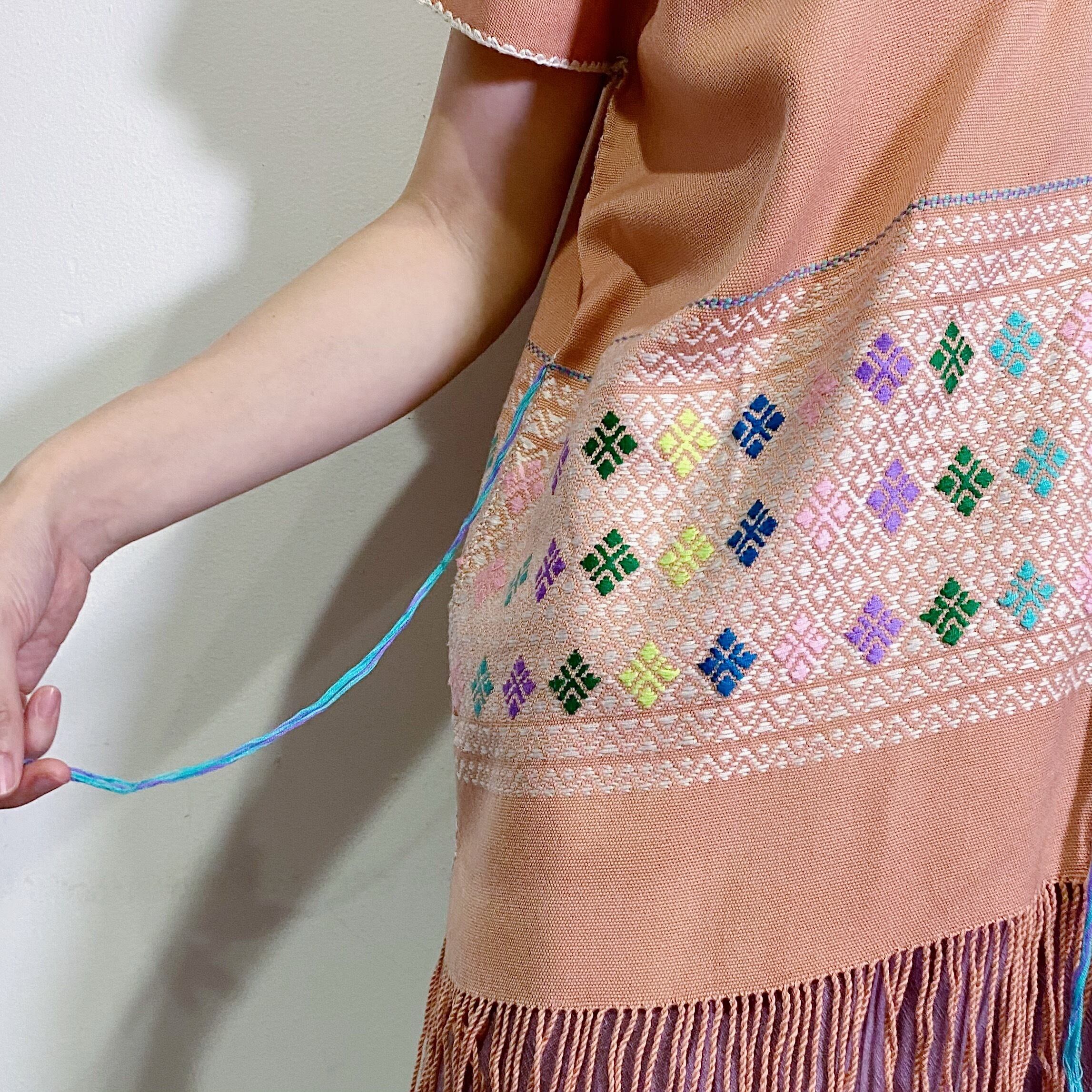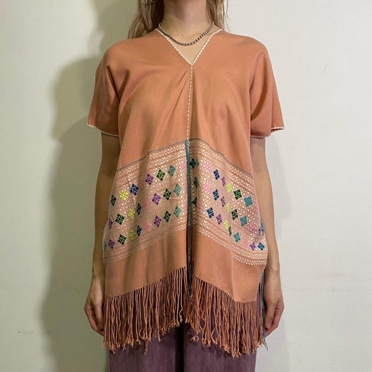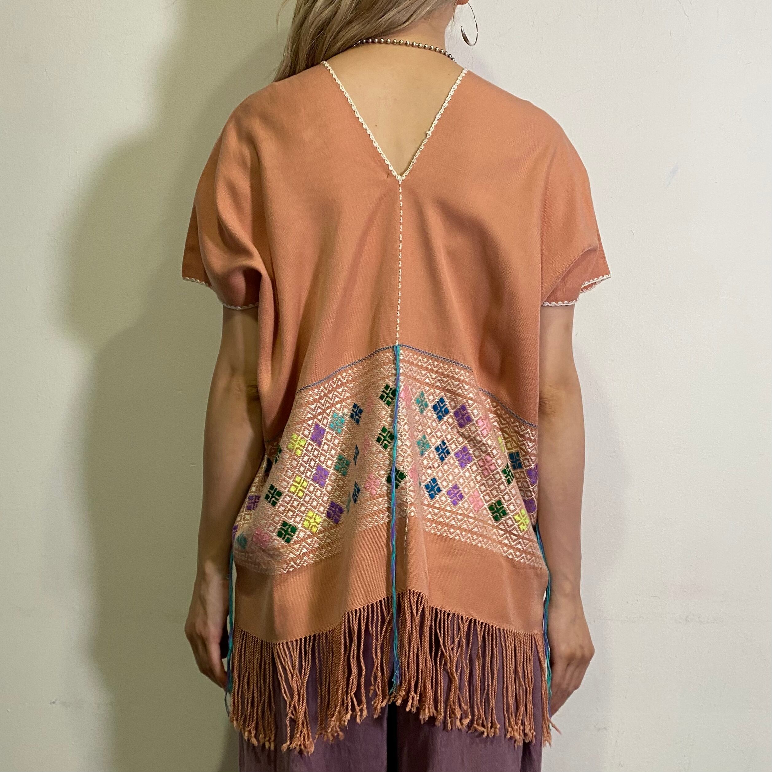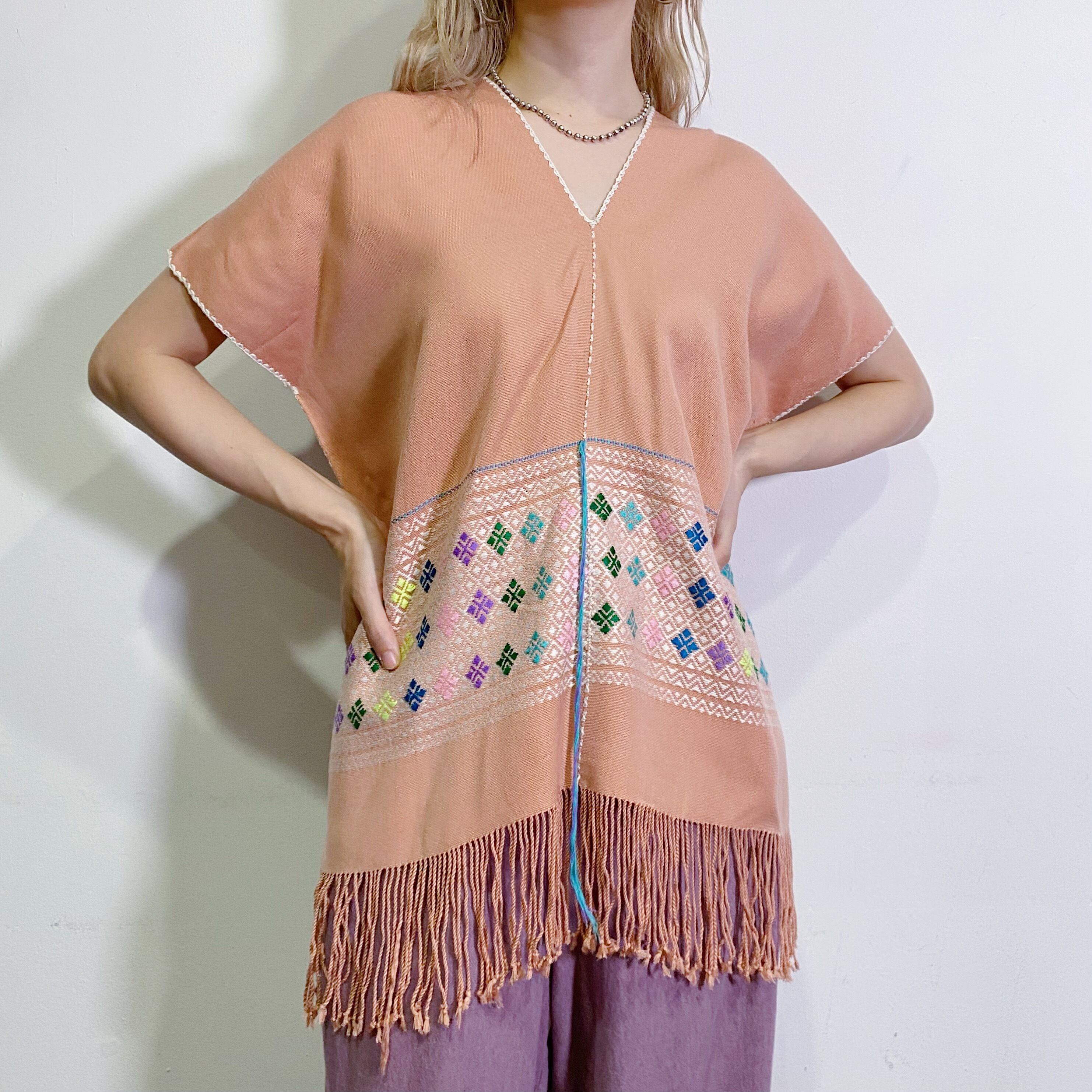 カラフルな刺繍と裾のフリンジデザインが可愛い、70年代のチュニックです。