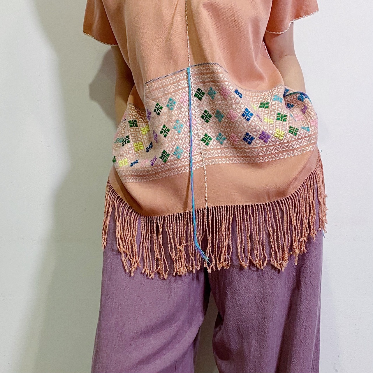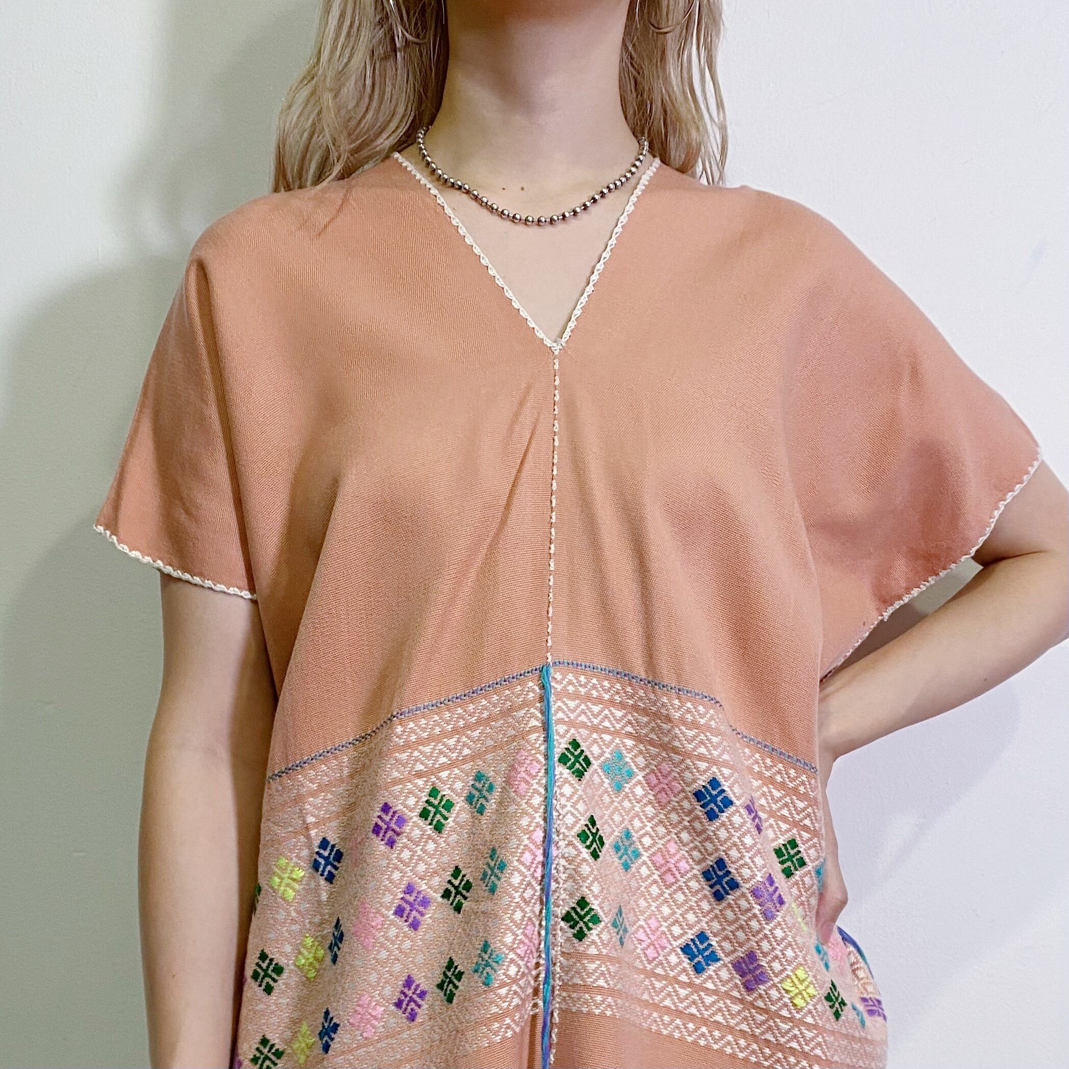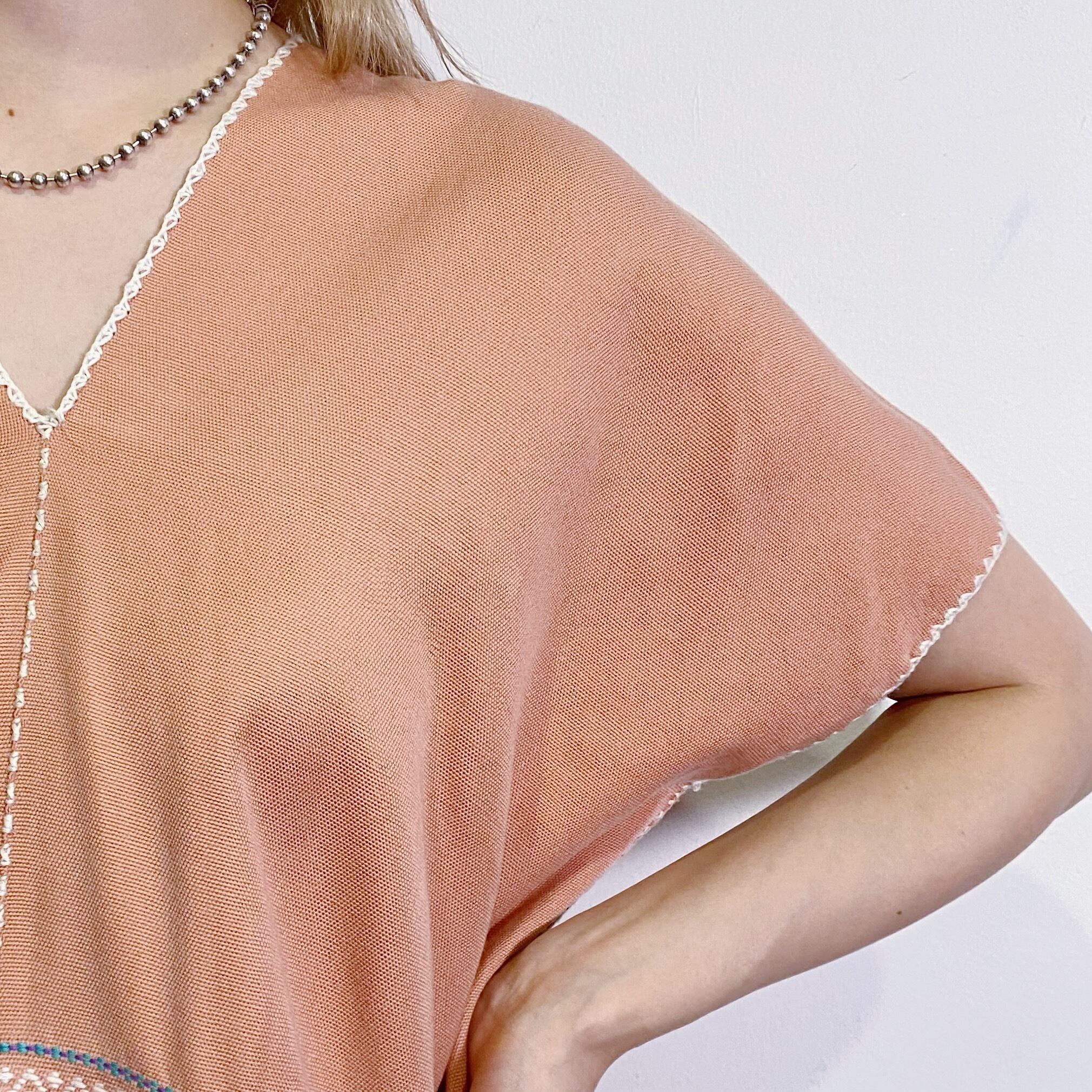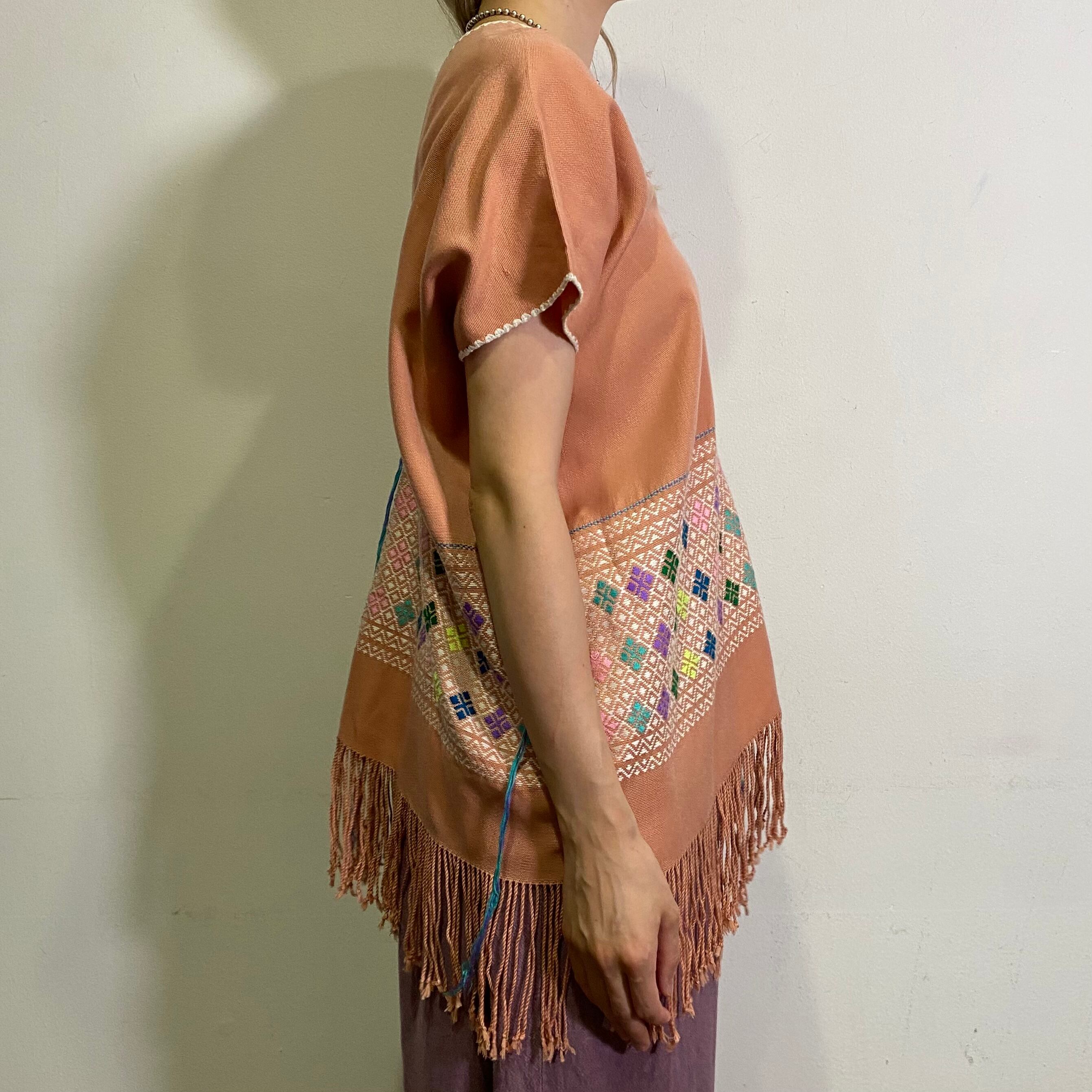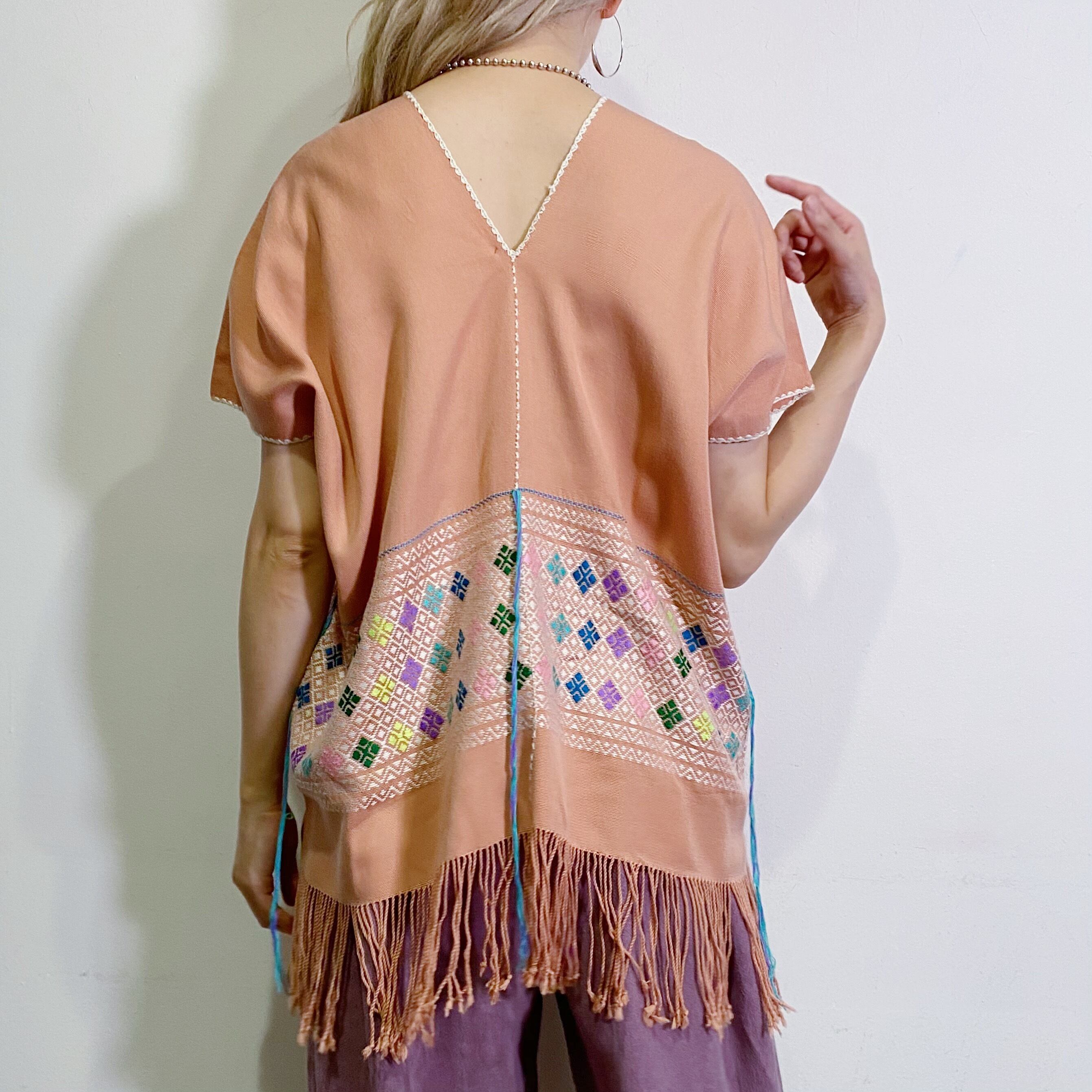 カラフルな刺繍と裾のフリンジデザインが可愛い、70年代のチュニックです。