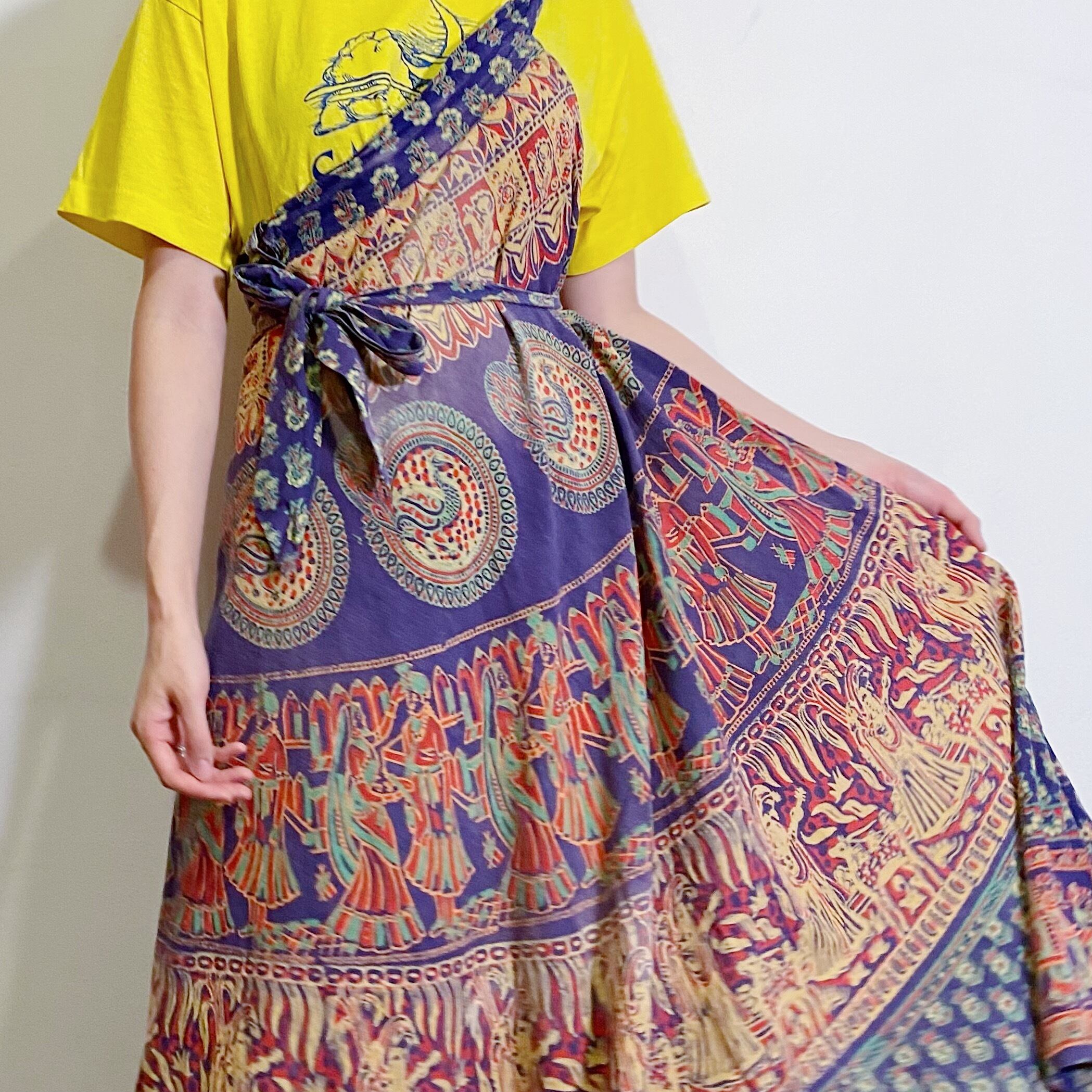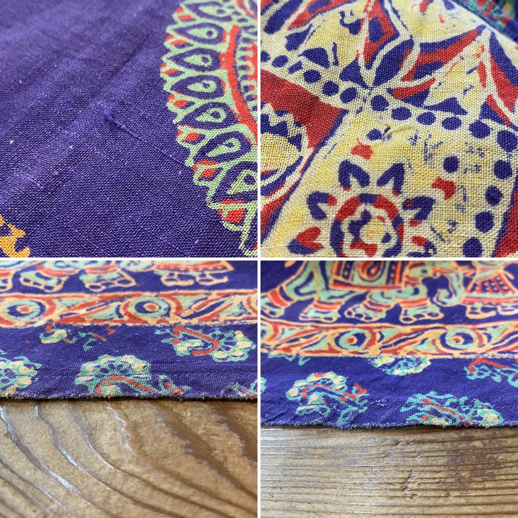 人々やゾウなどの動物がプリントされた、雰囲気たっぷりな一枚。
