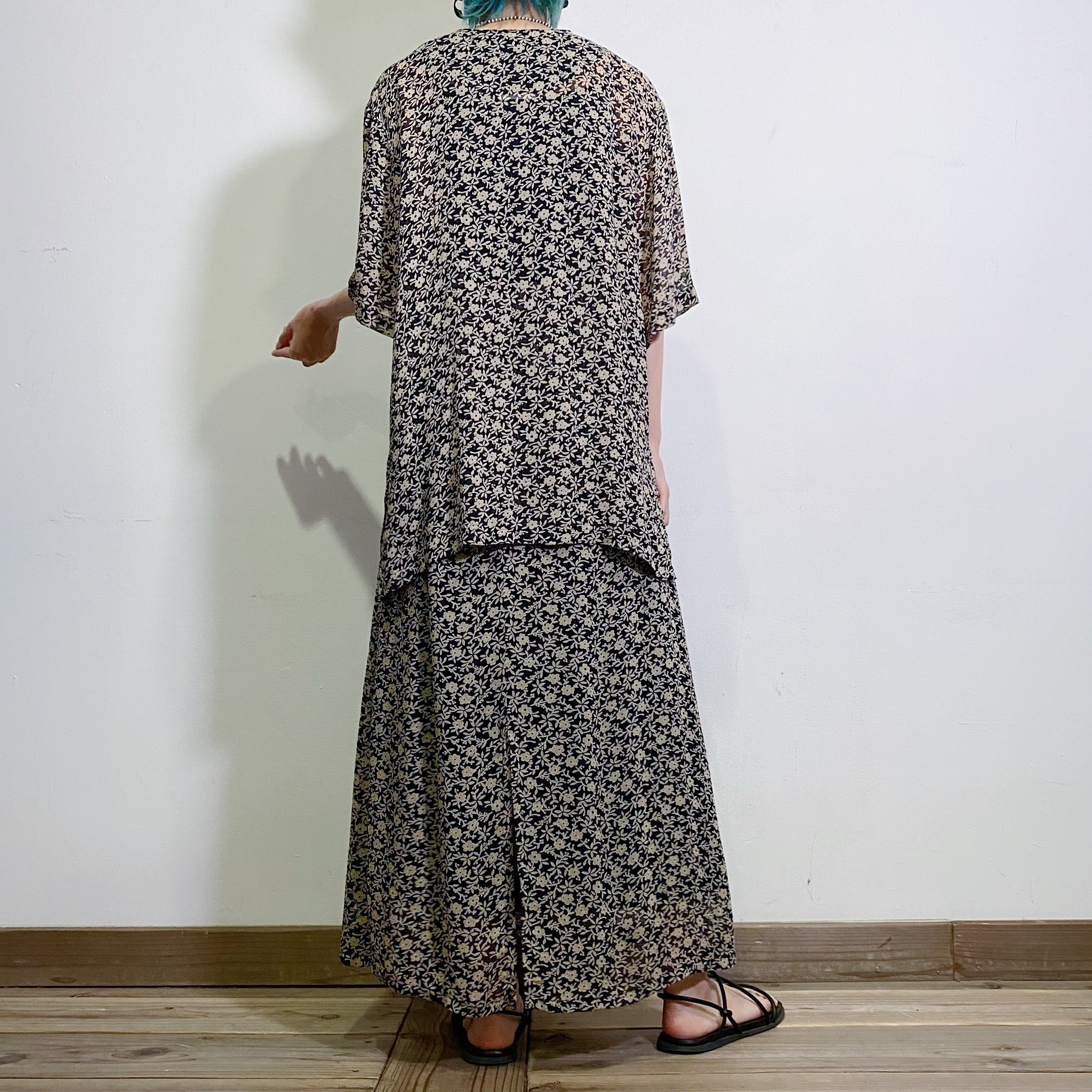 ブラックベースで使い勝手の良い、花柄のセットアップです。