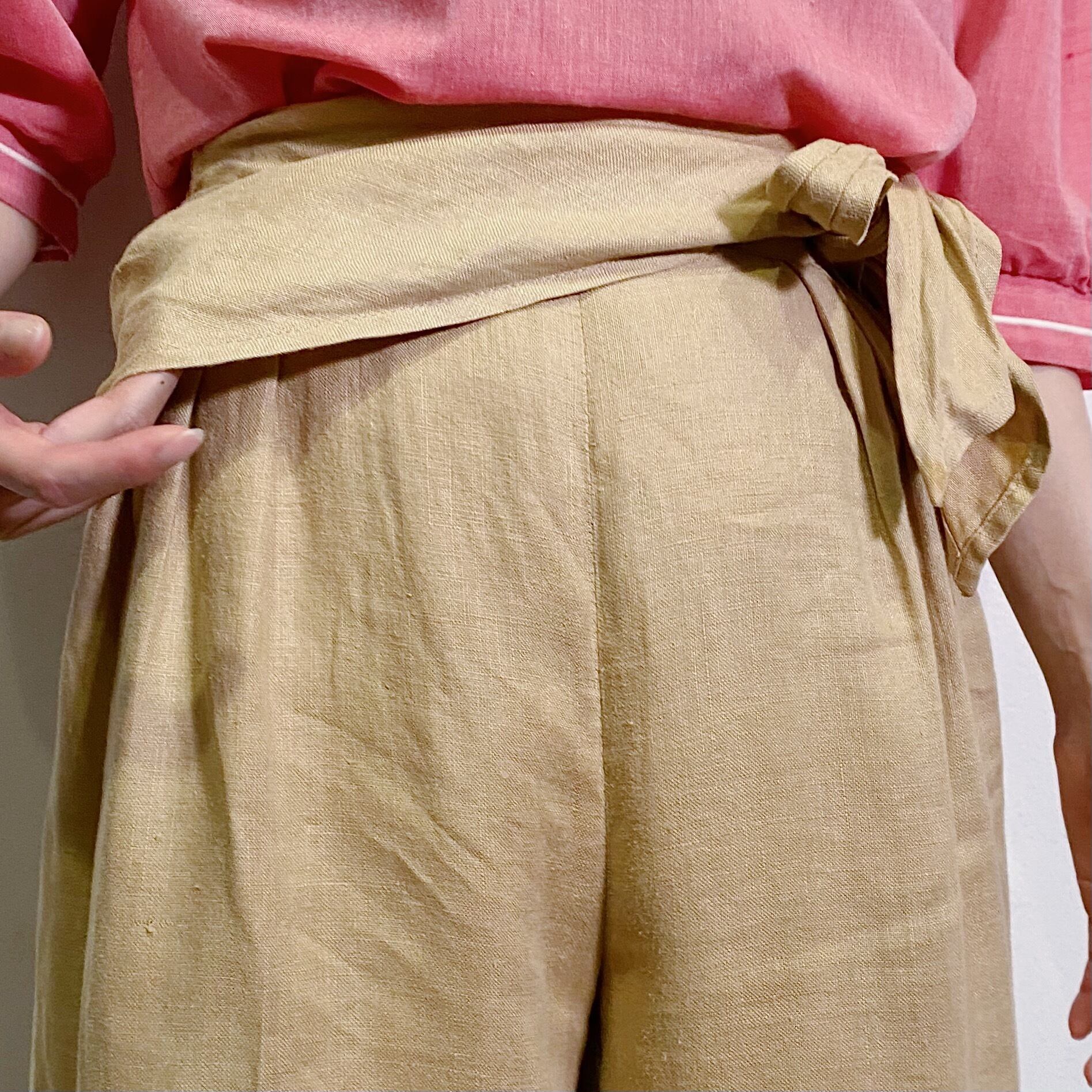 beige side ribbon pants