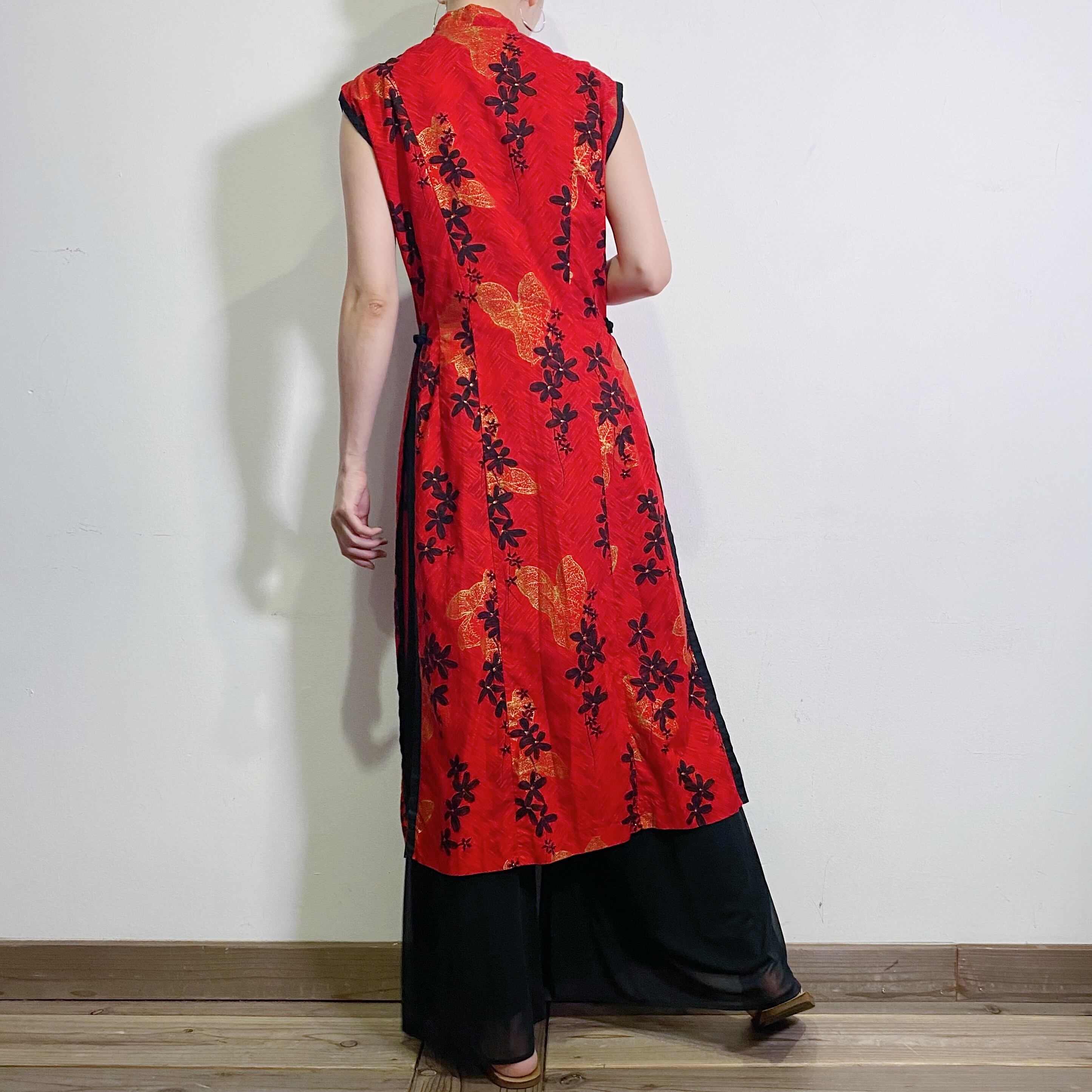 チャイナ風デザインがとっても可愛い、50年代のロングワンピースです。