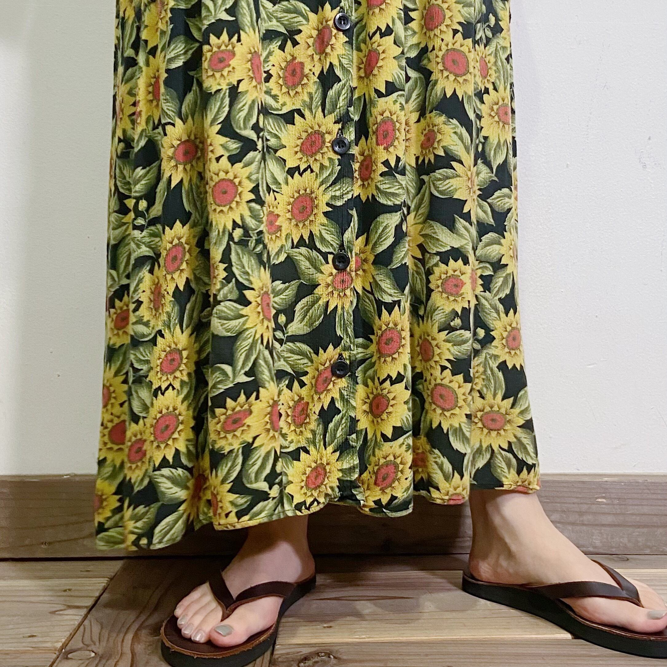ひまわり柄がとっても可愛い80年代のロングワンピースです。