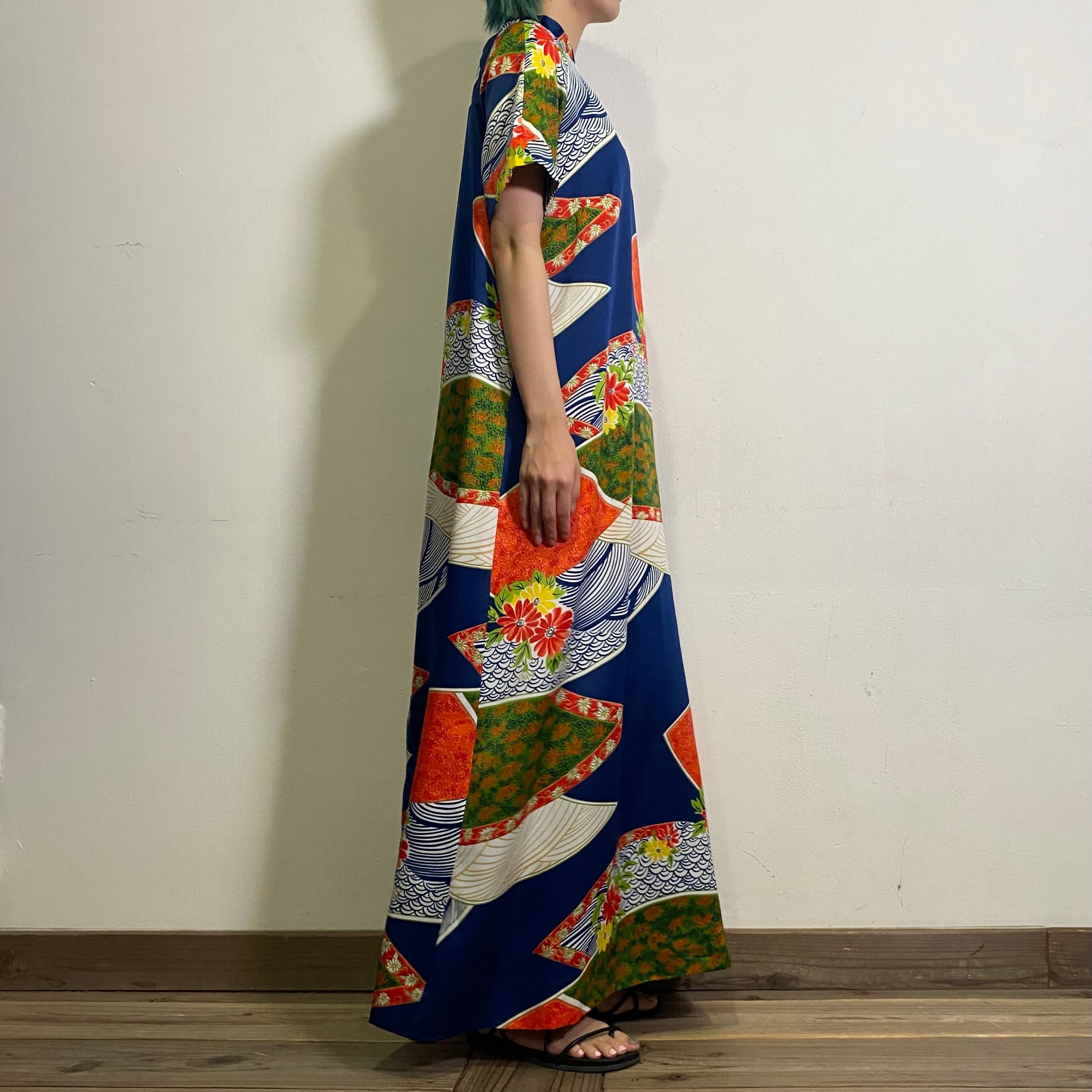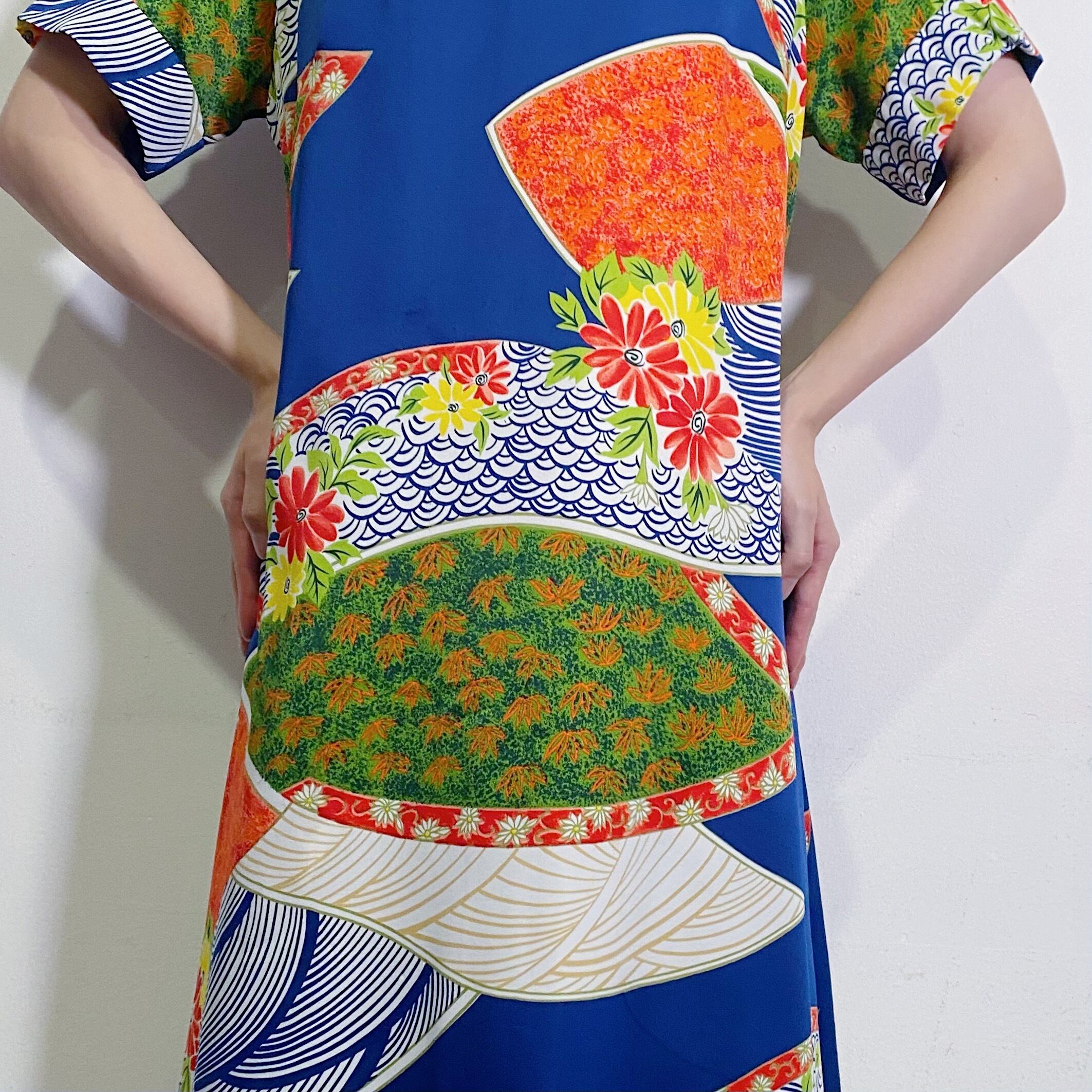 まるでお着物のような素敵なテキスタイルが魅力の70年代のワンピースです。