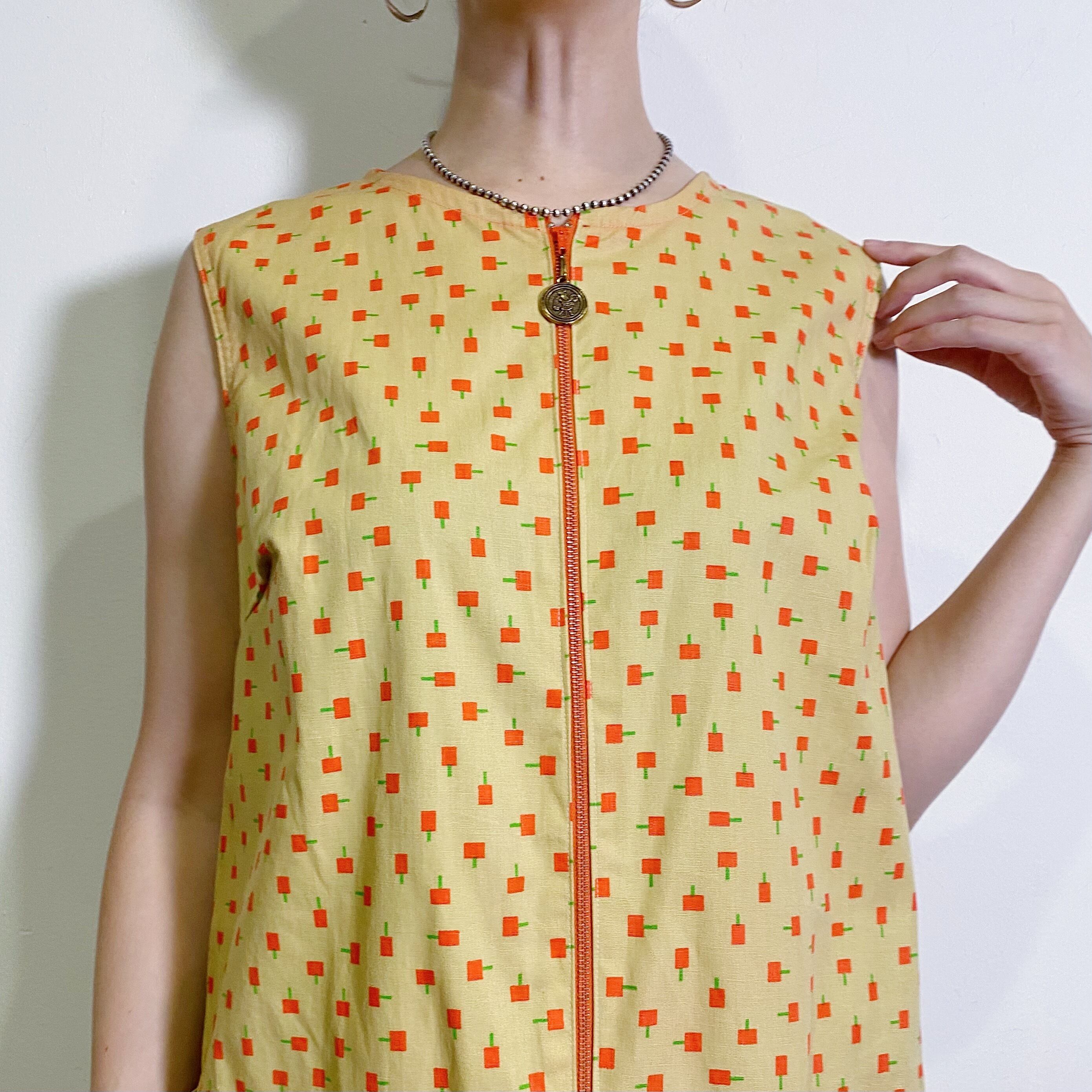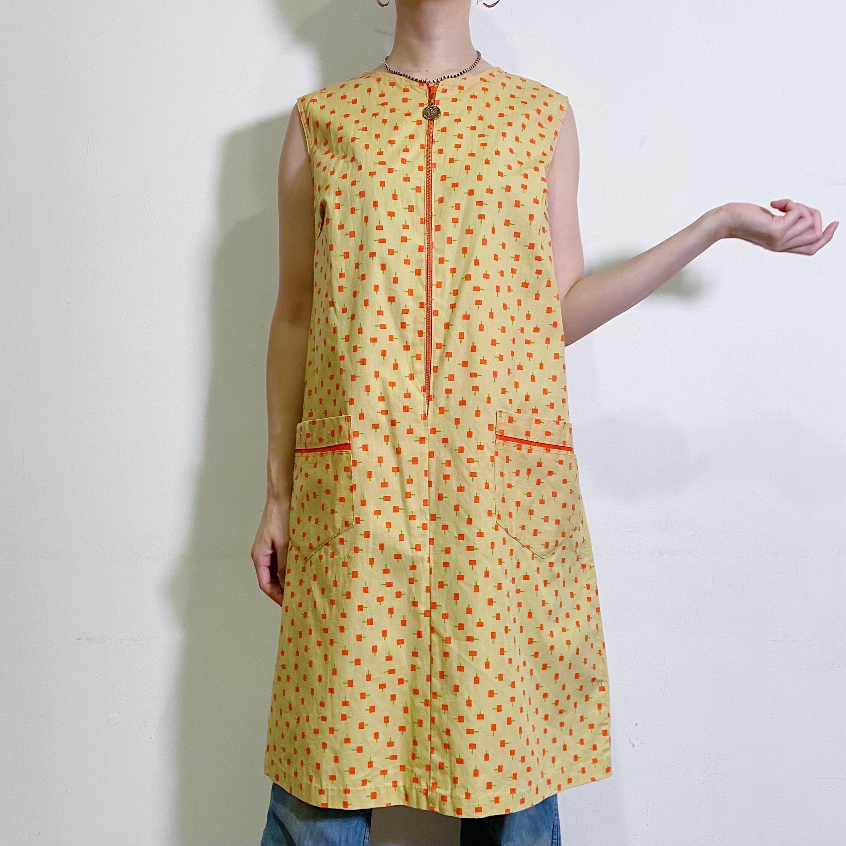 オレンジとベージュの色合いが可愛い、60年代のミニワンピースです。