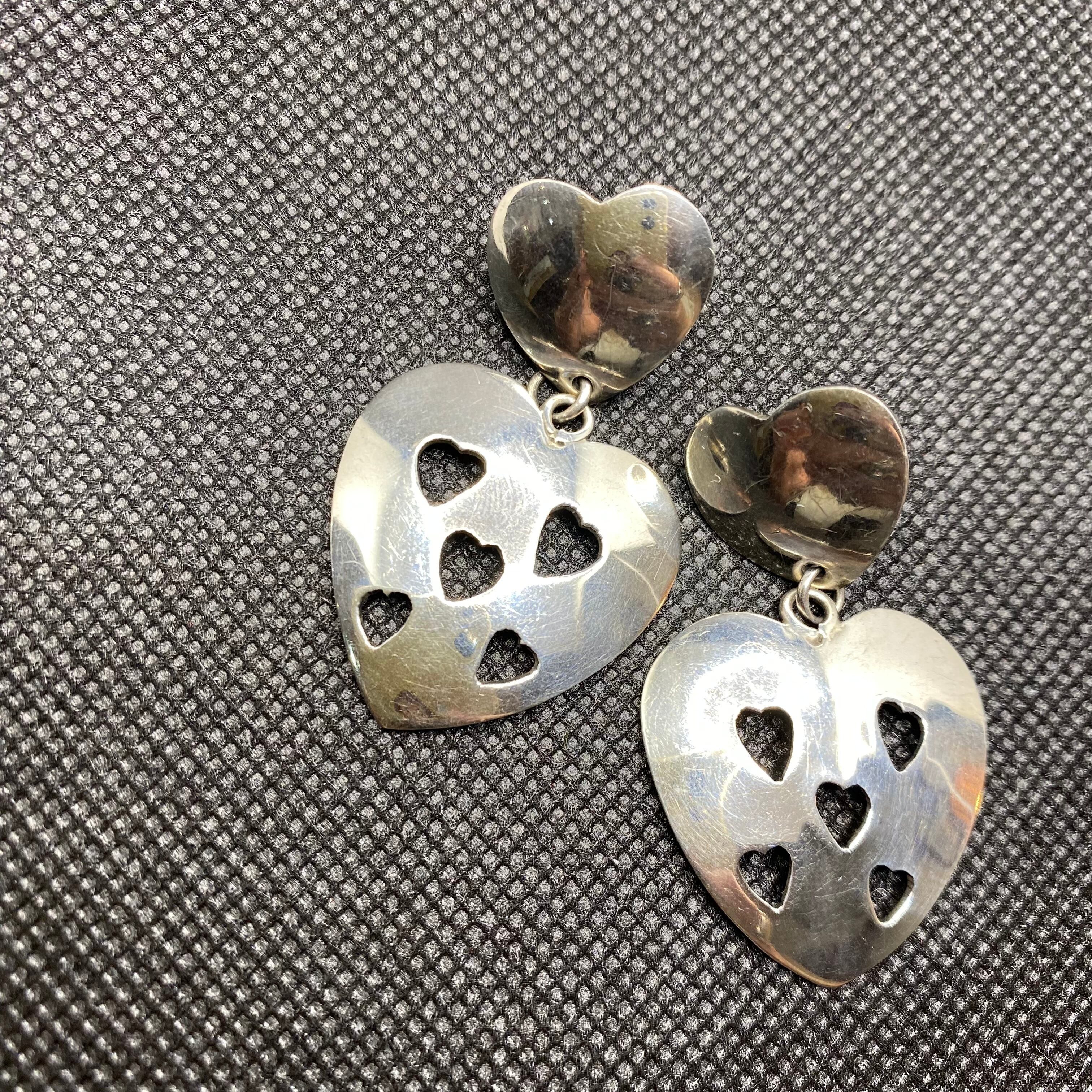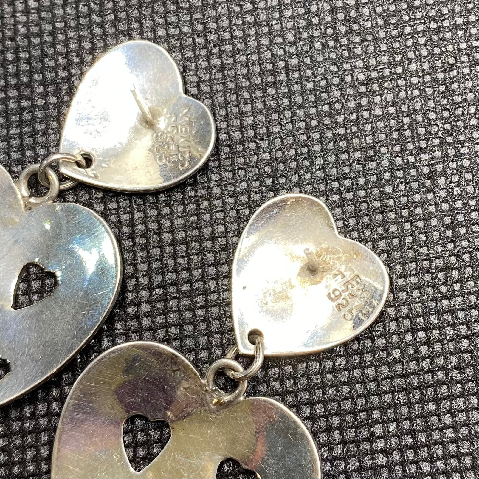 ハートモチーフが二つぶら下がったデザインが可愛い、メキシコの925シルバーのピアスです。