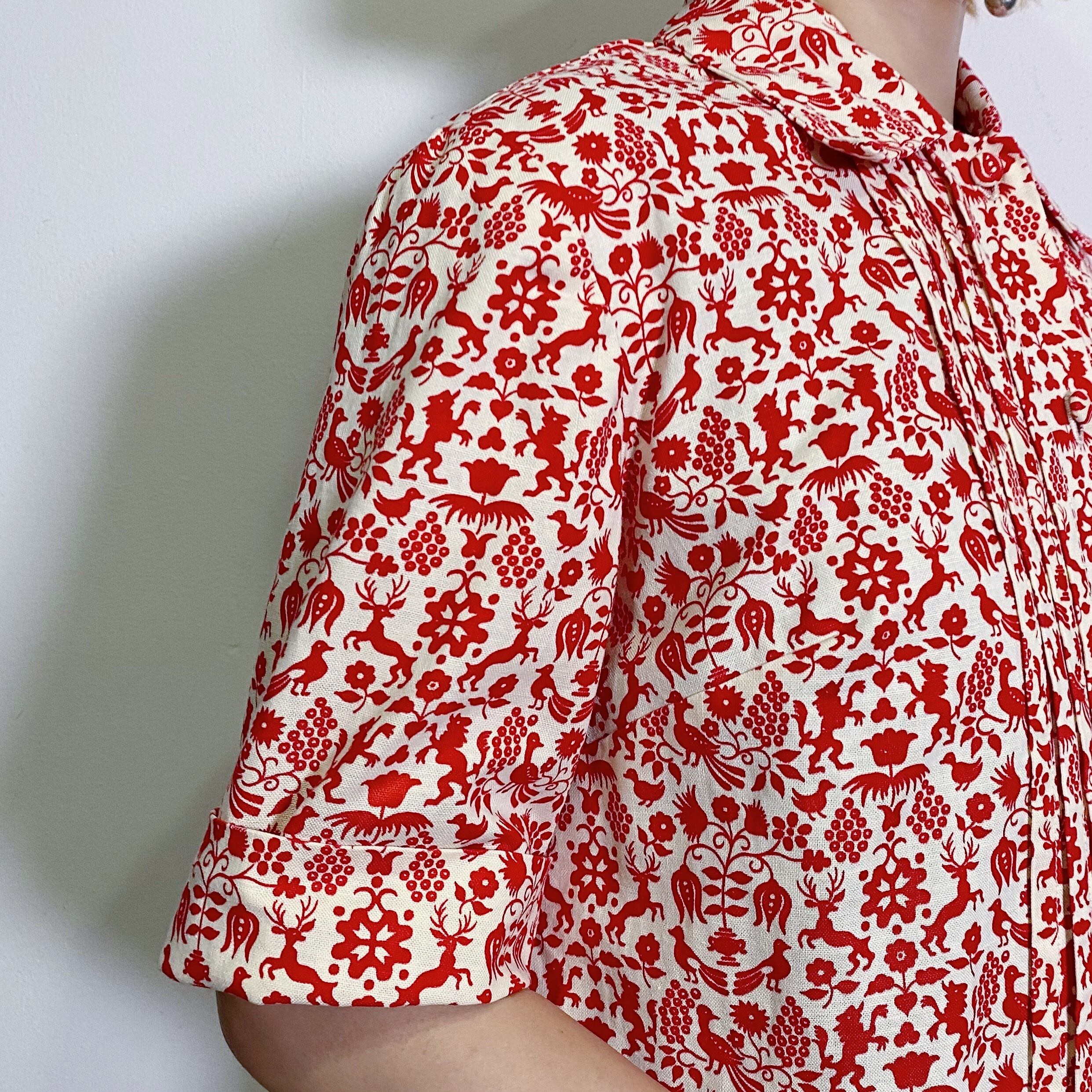 お花や動物たちの小さなプリント柄が可愛い、60年代のシャツワンピースです。
