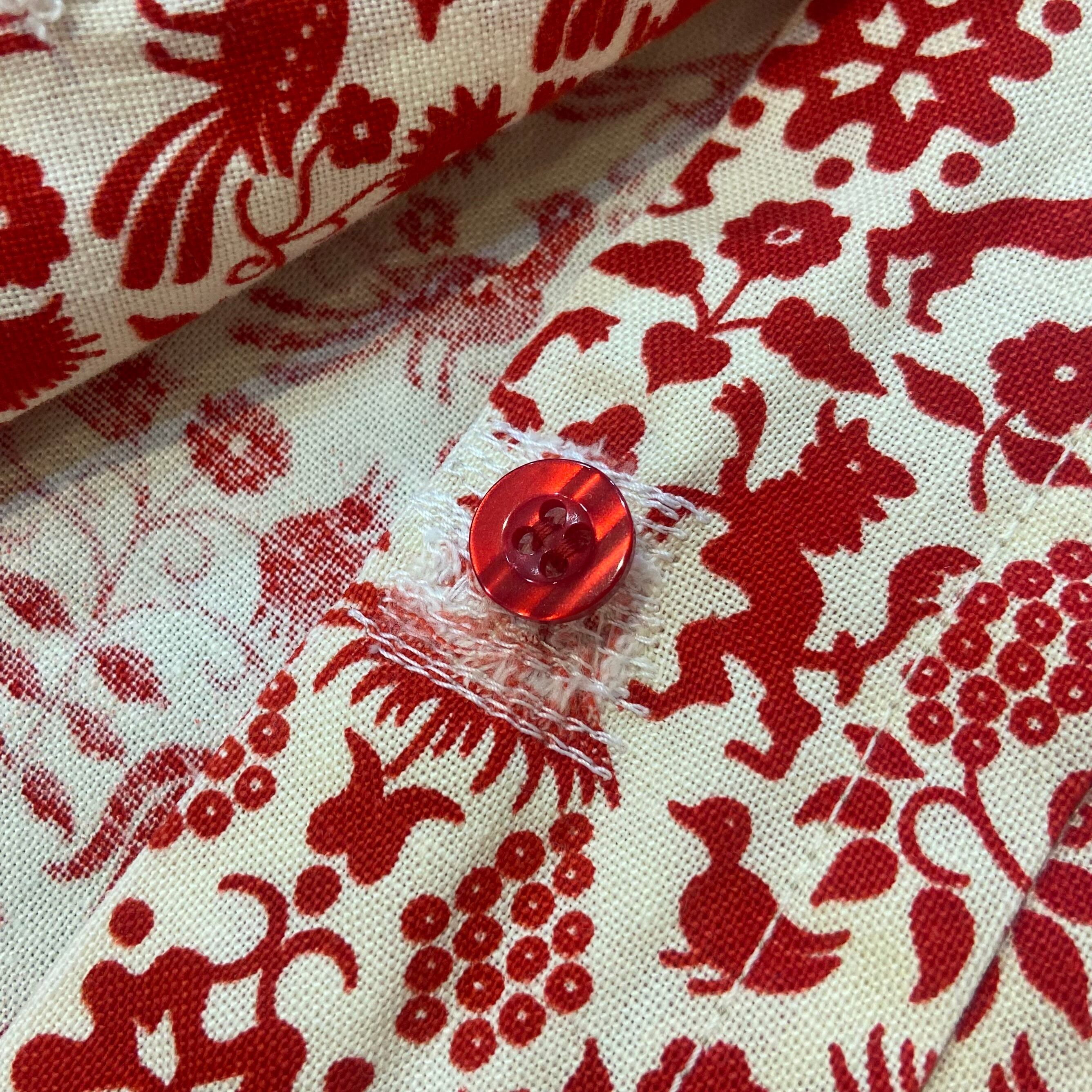 ホワイトベースにレッドの色味や、同じ生地のクルミボタンも素敵です。