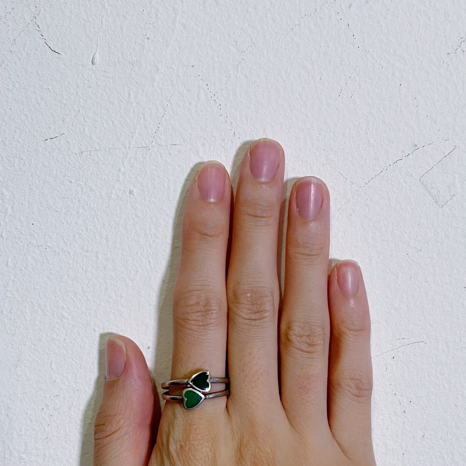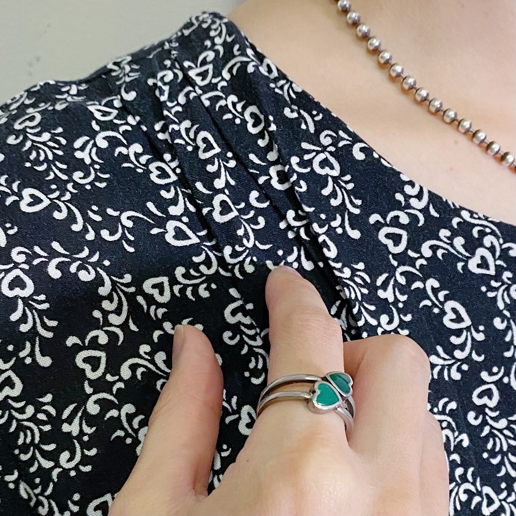 グリーンのハートモチーフが可愛い、925シルバーのリングです。