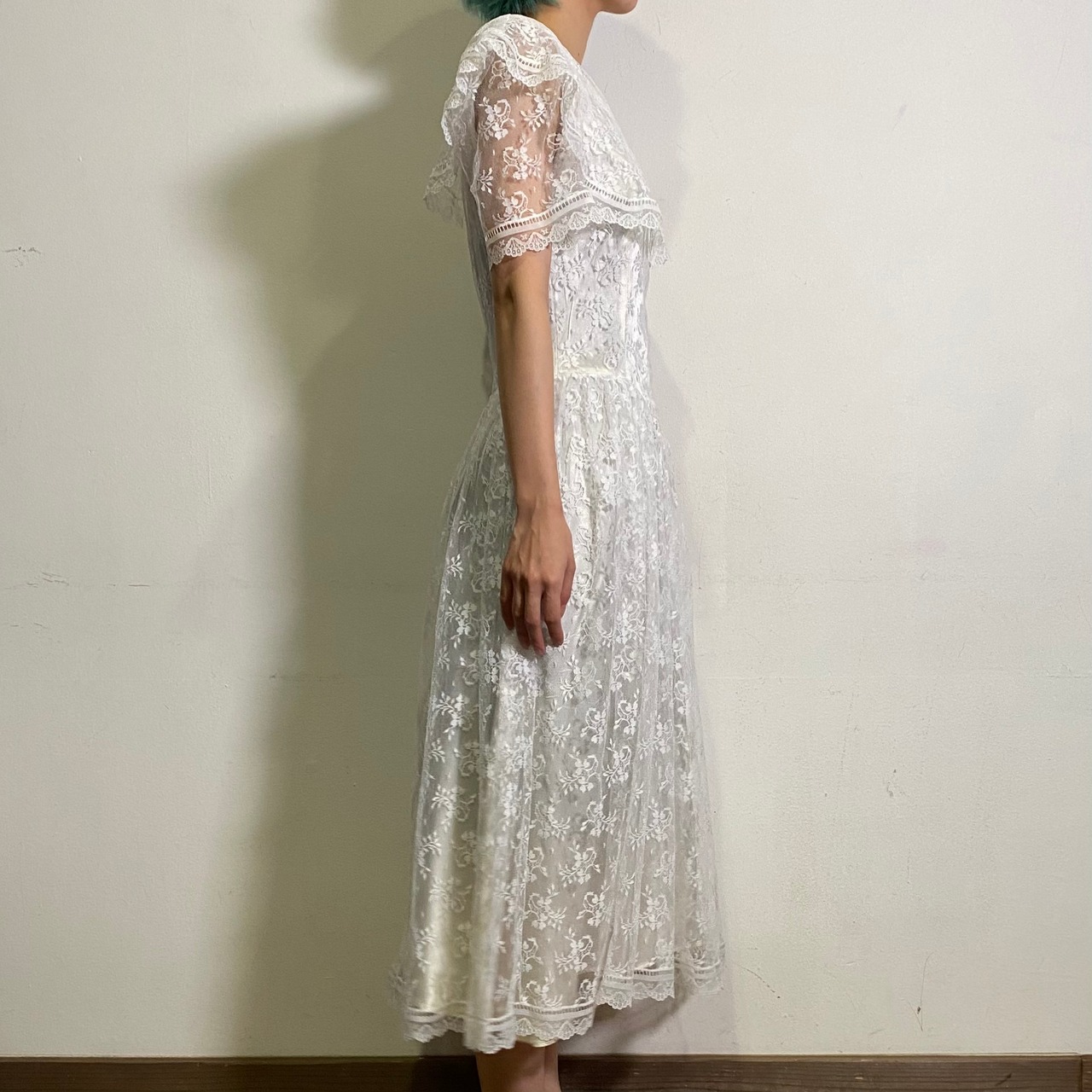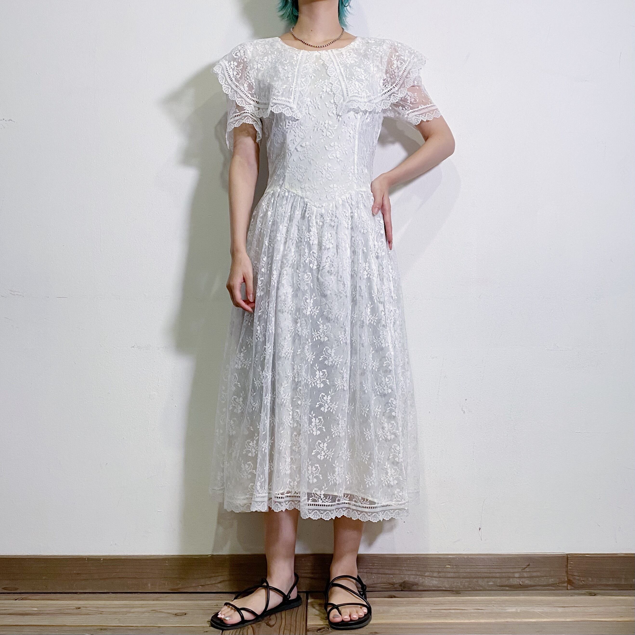 真っ白な総レースの生地が可愛い、80年代のワンピースです。