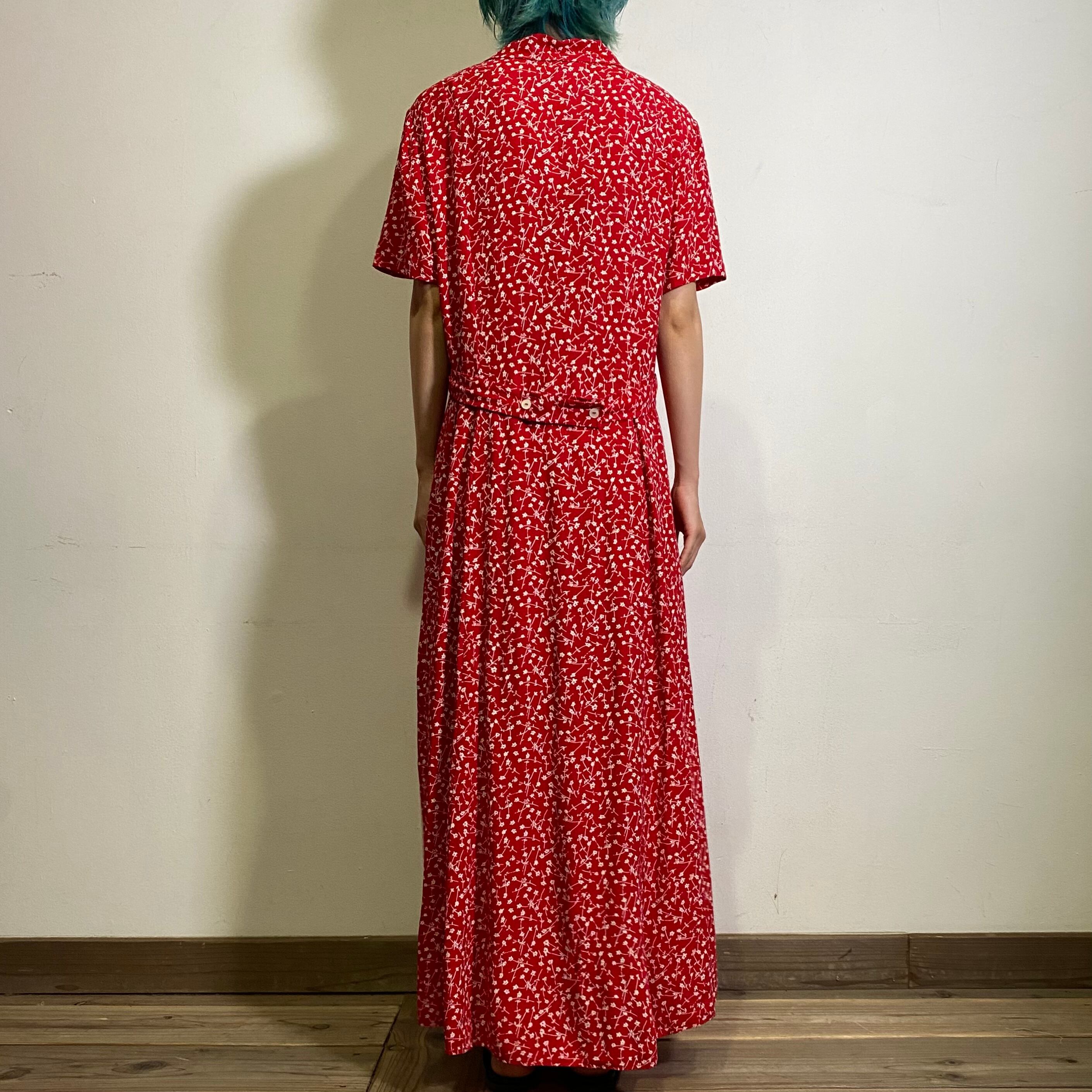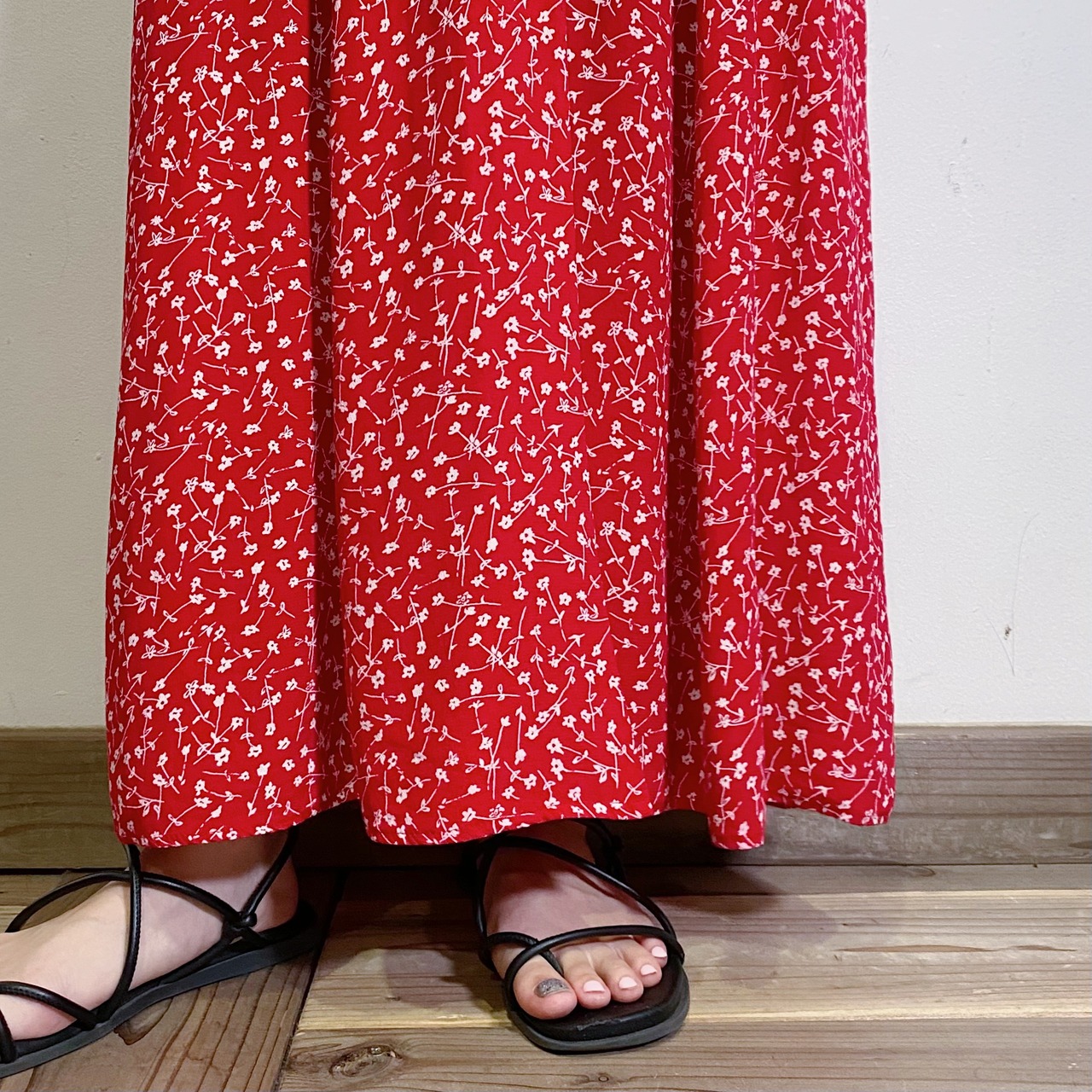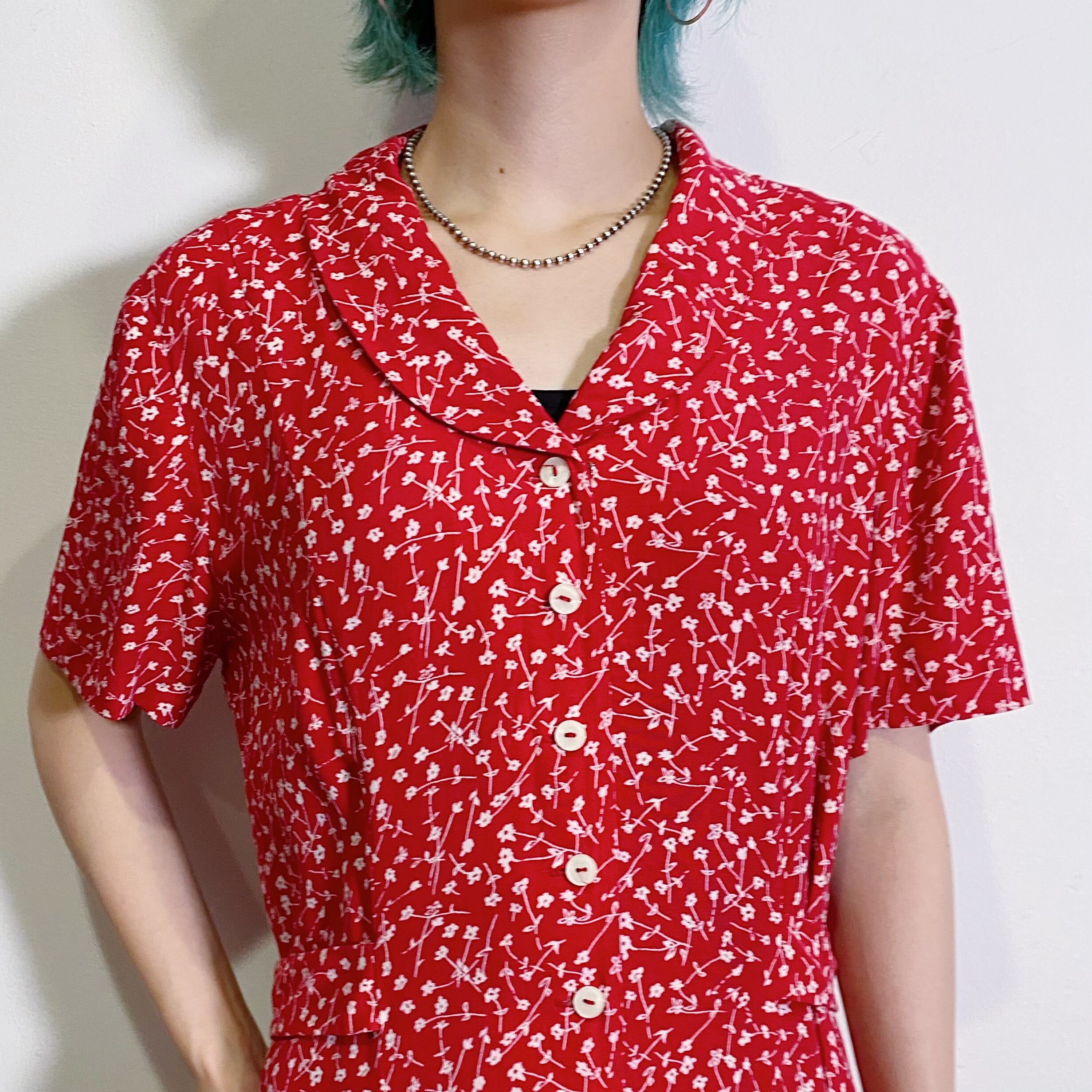 赤×白の組み合わせが可愛い、90年代の花柄ワンピースです。