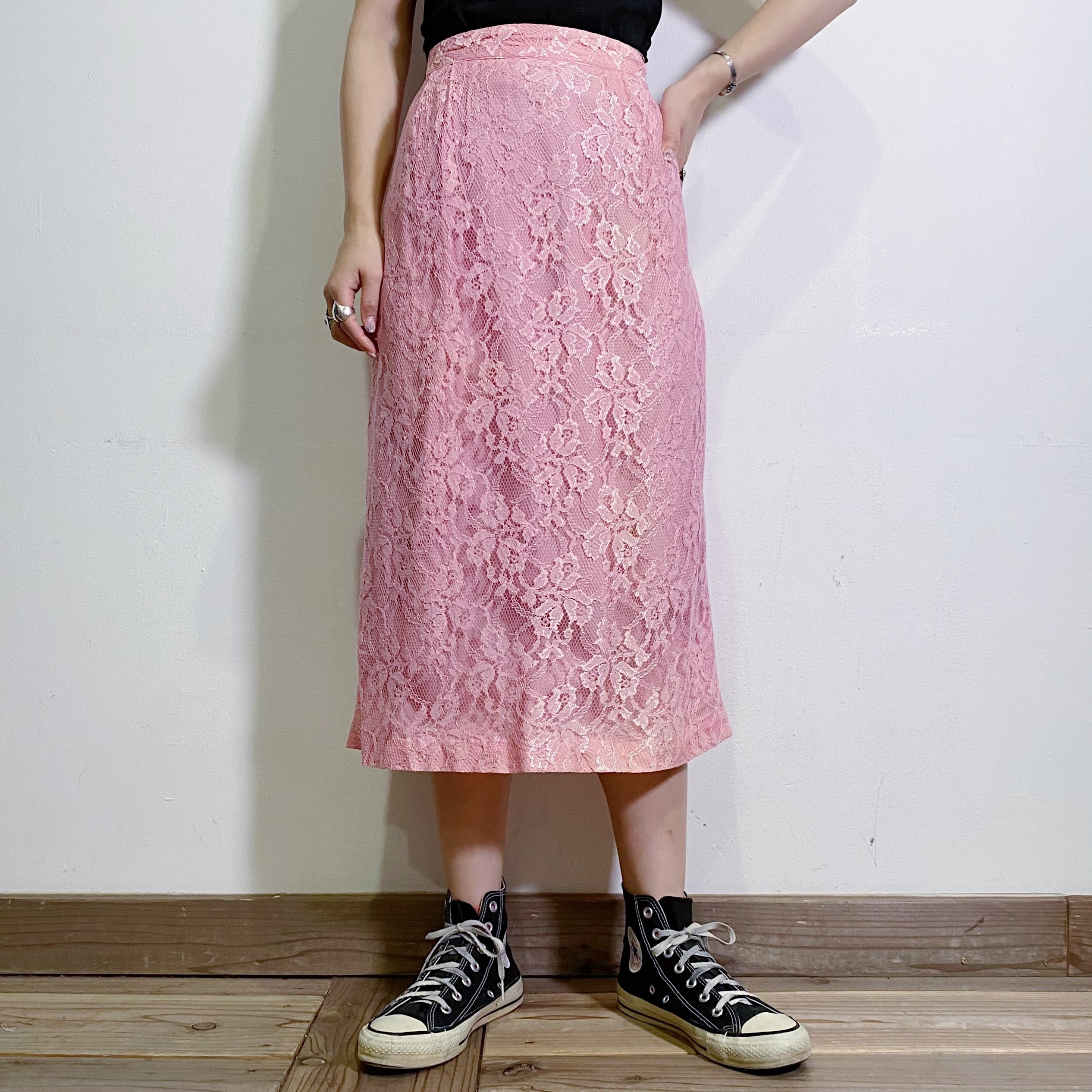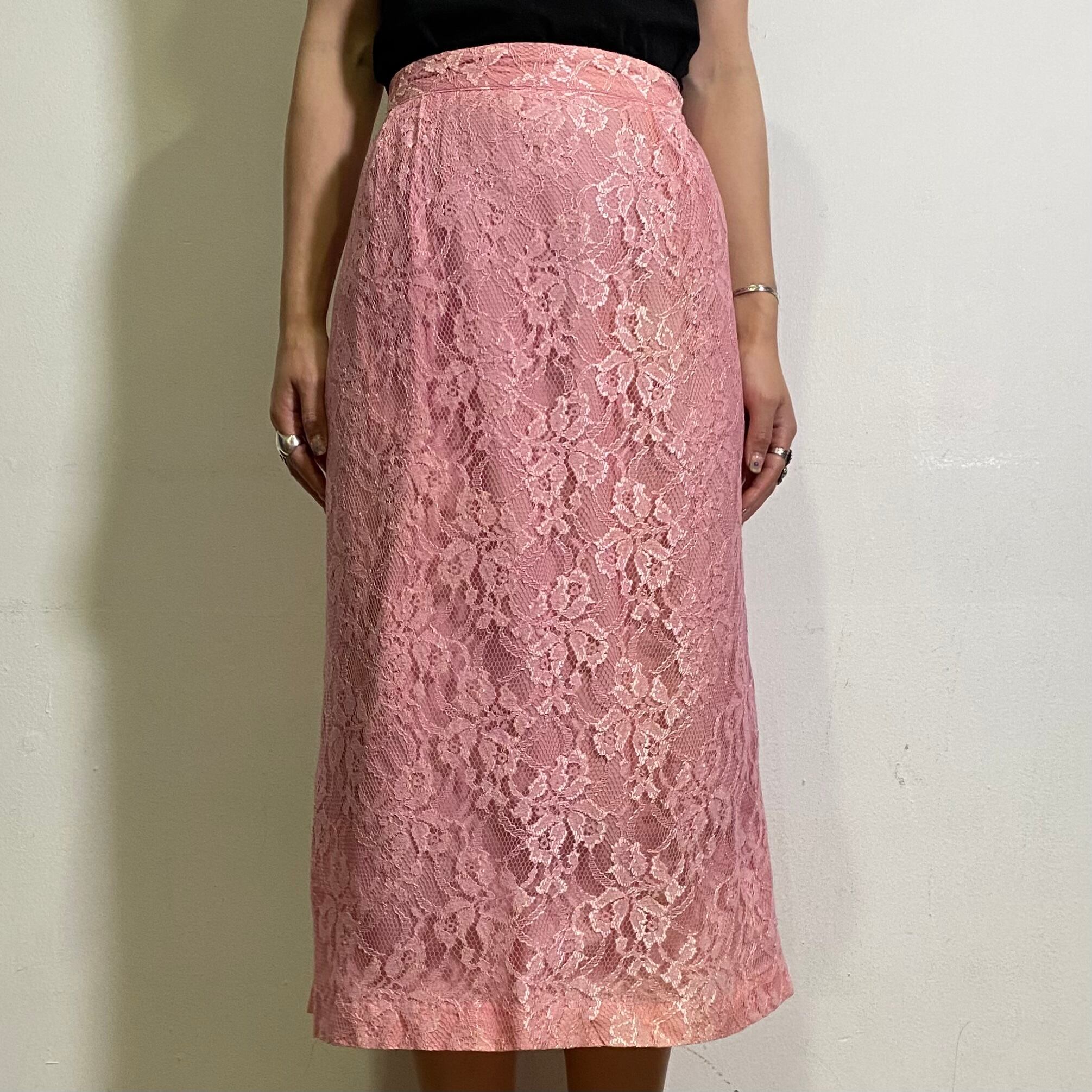 ピンクの総レースが可愛い、80年代のスカートです。