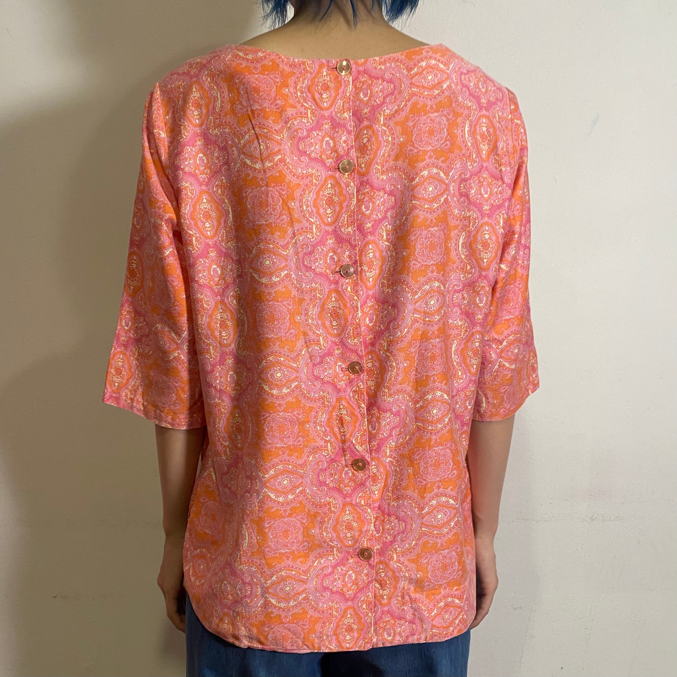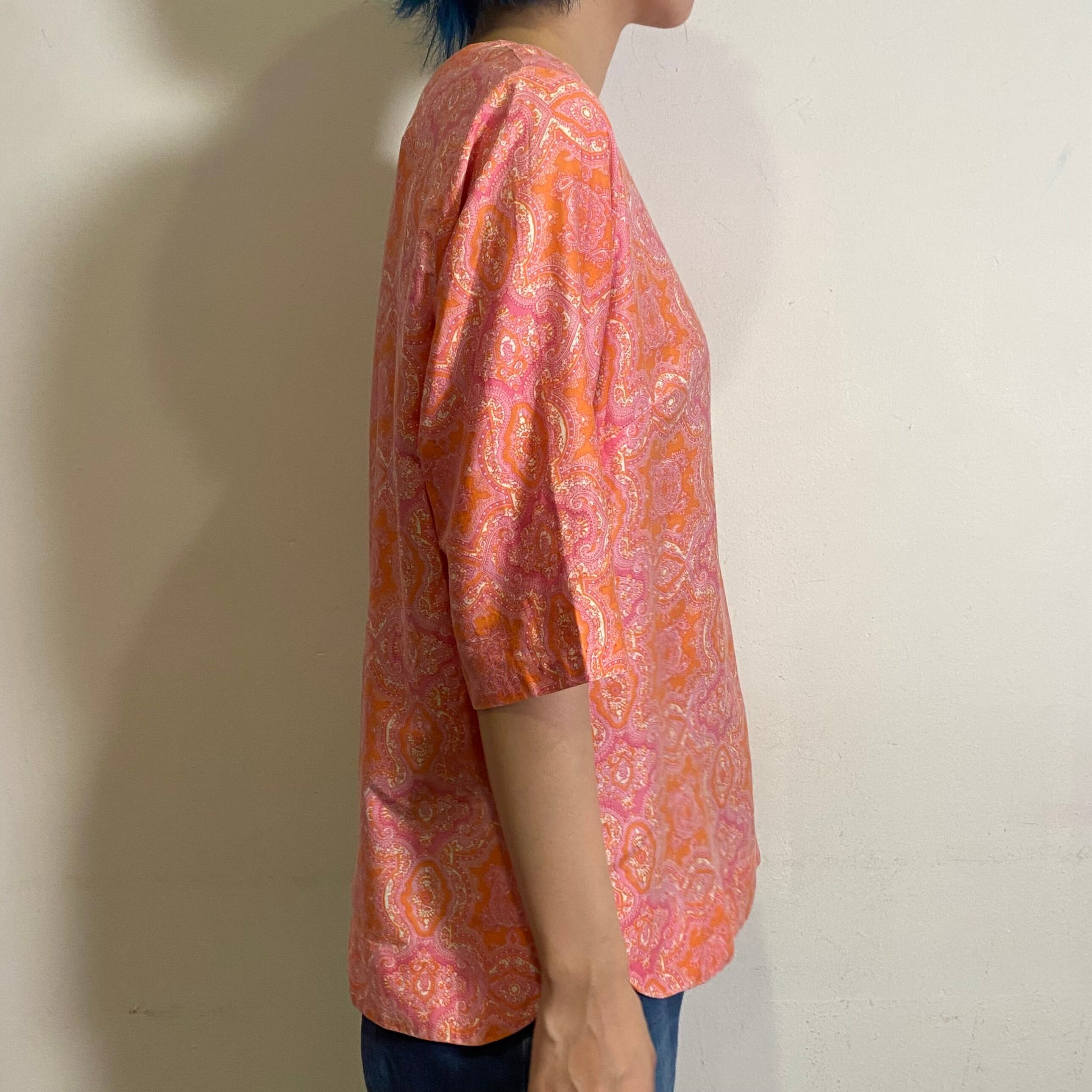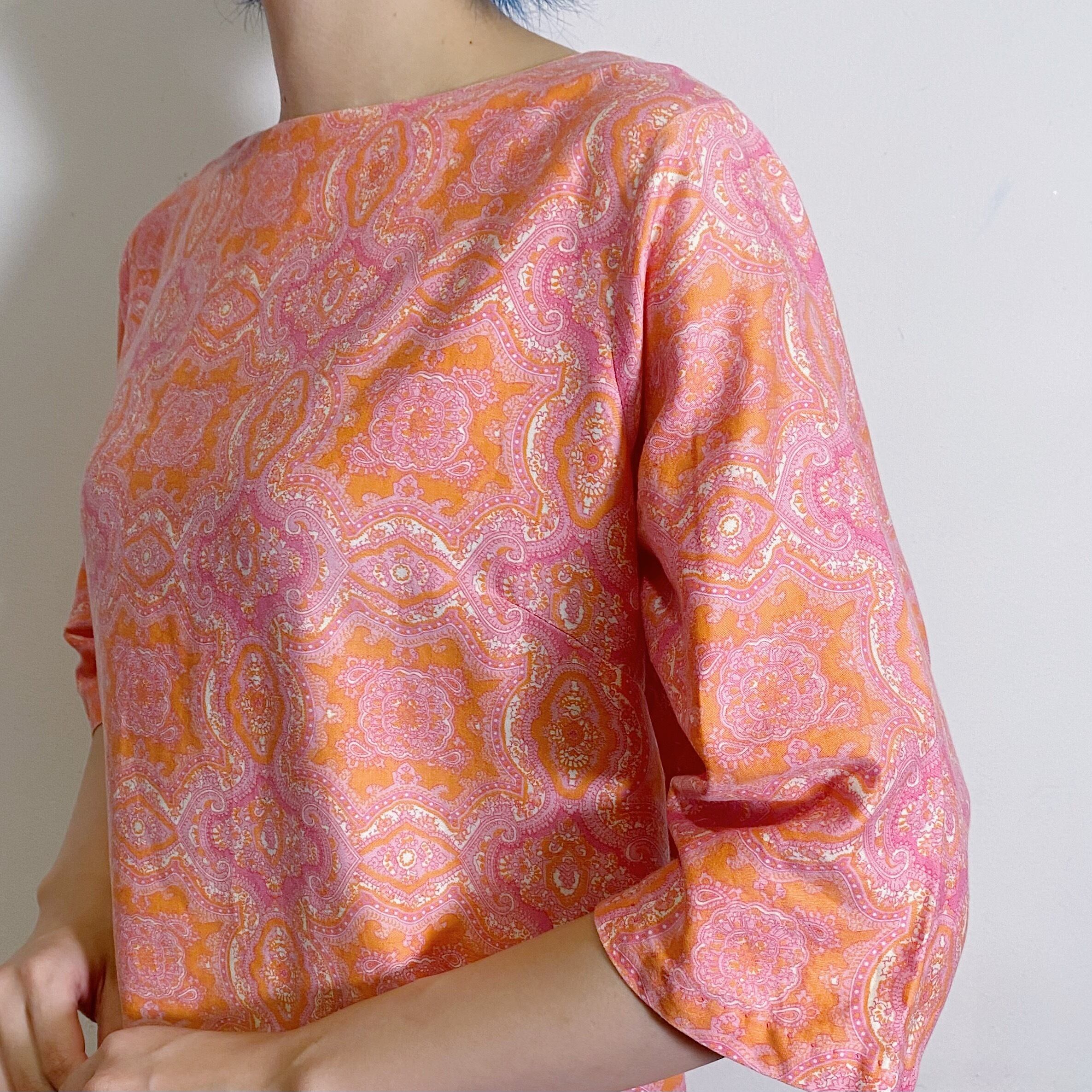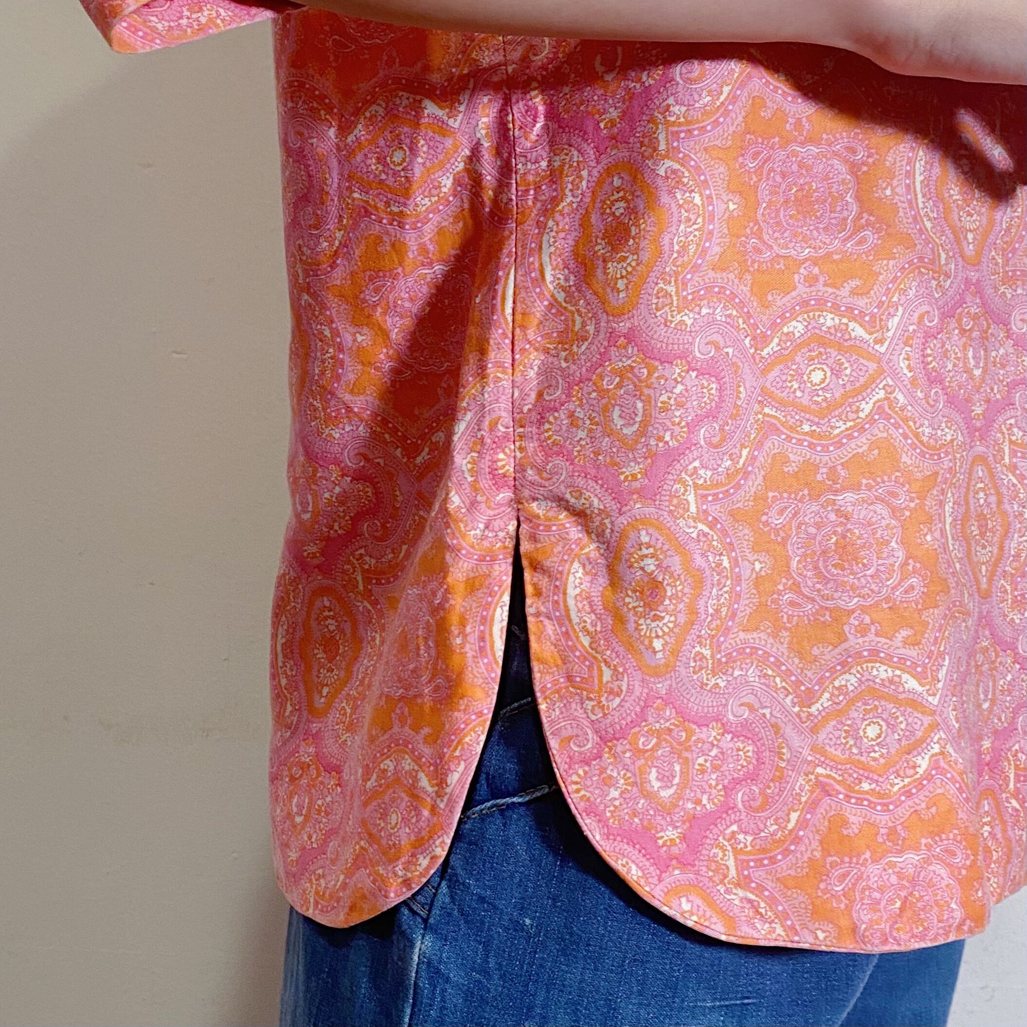 海外の壁紙のようなテキスタイルが可愛い、70年代のトップスです。