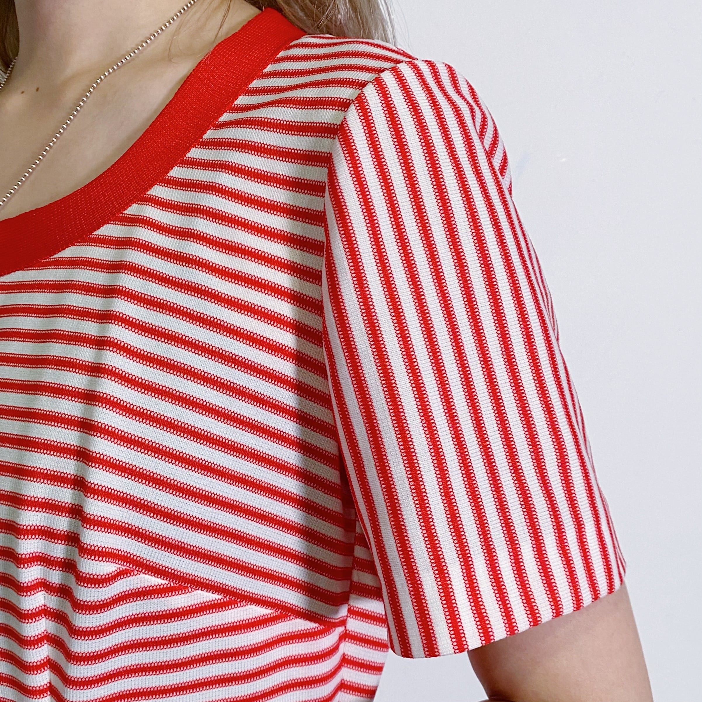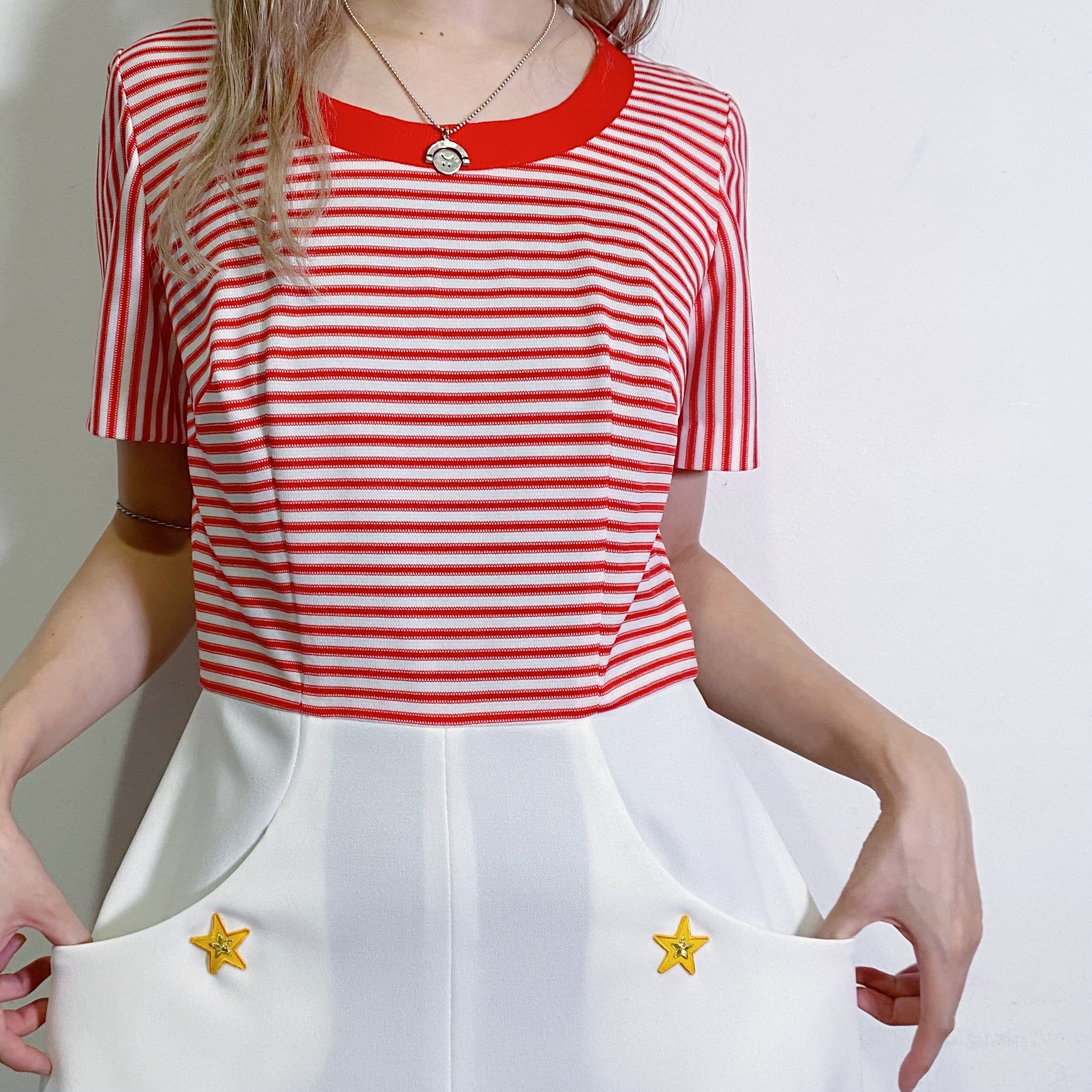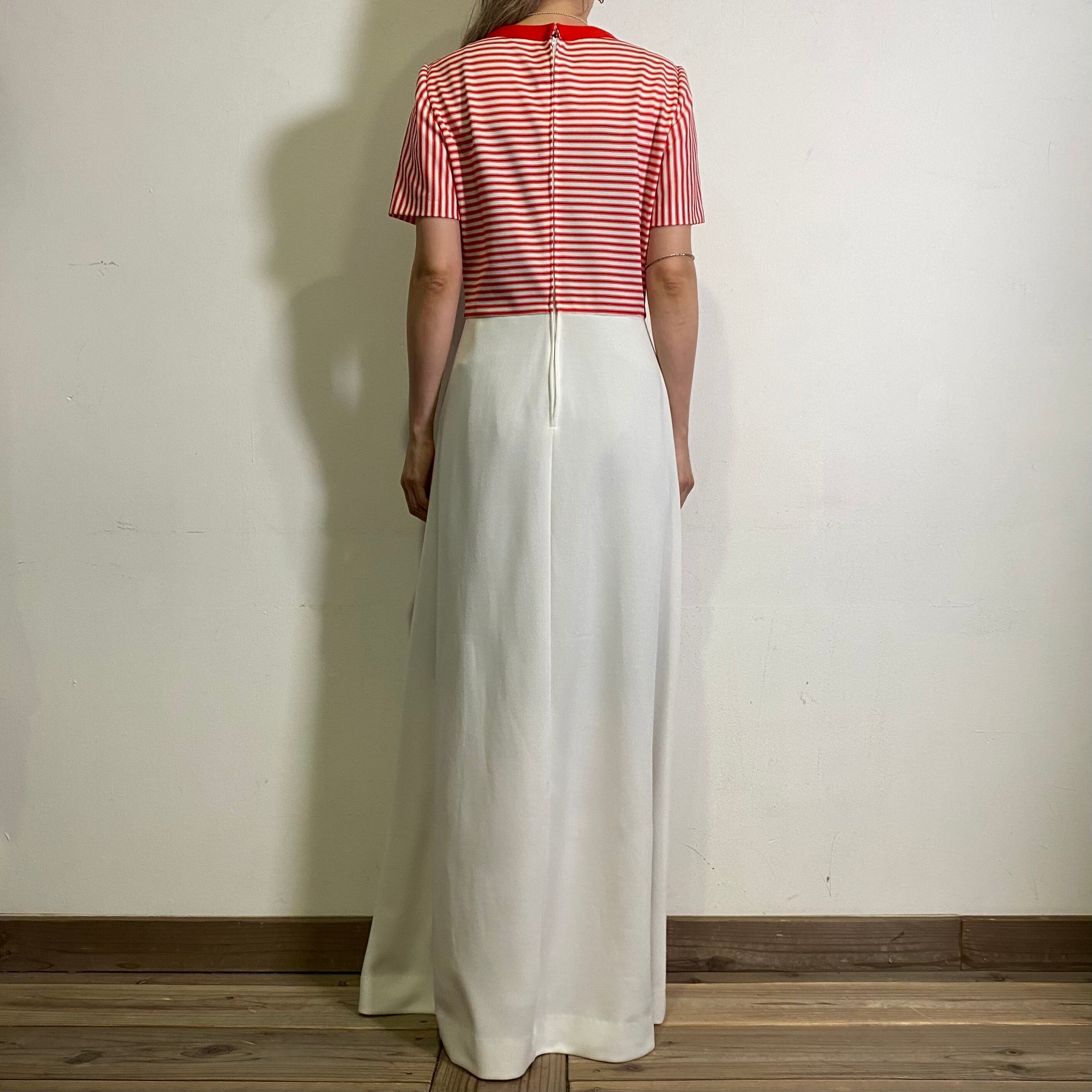 赤白ボーダーが可愛い、70年代のワンピースです。