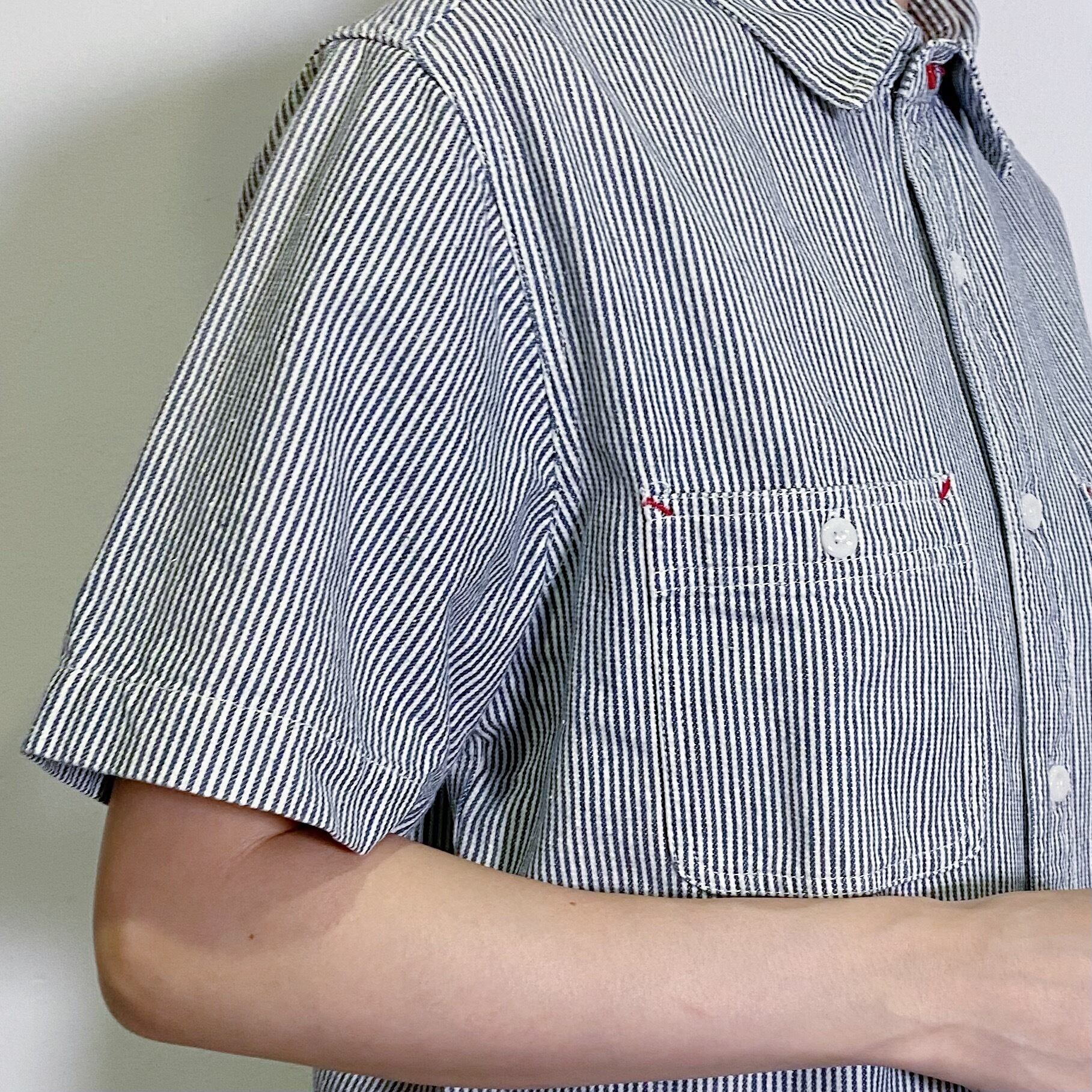 使い勝手の良さそうな、ヒッコリーの半袖シャツです。