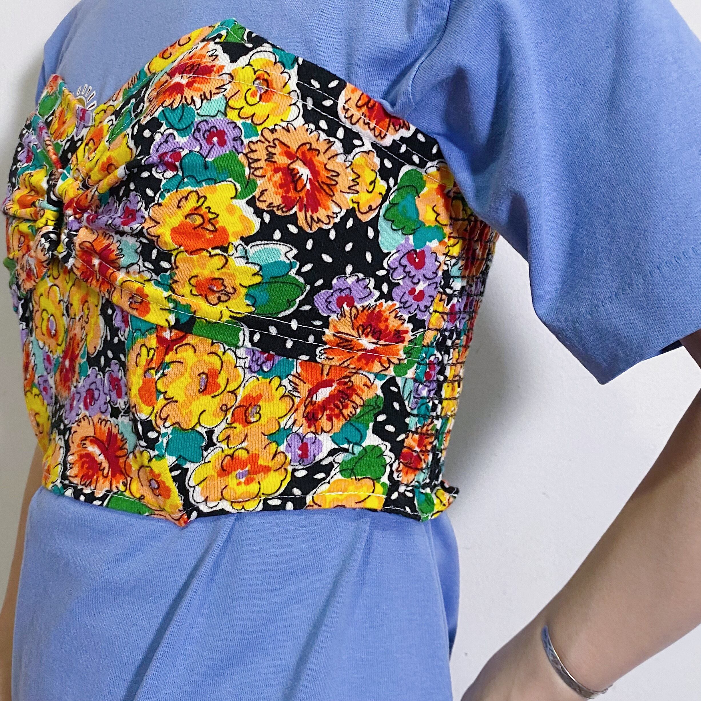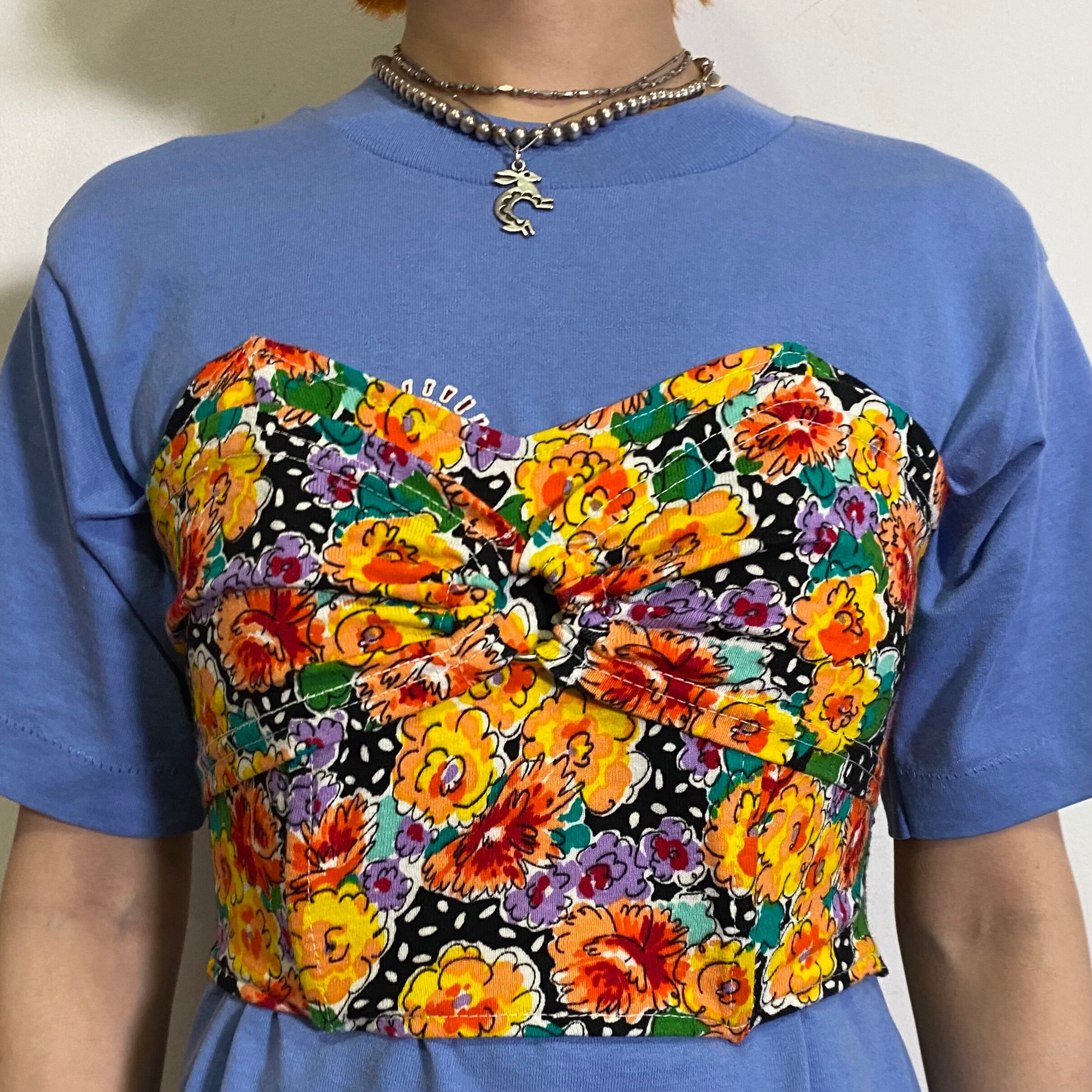 手書きタッチの花柄が可愛い、80年代のチューブトップです。