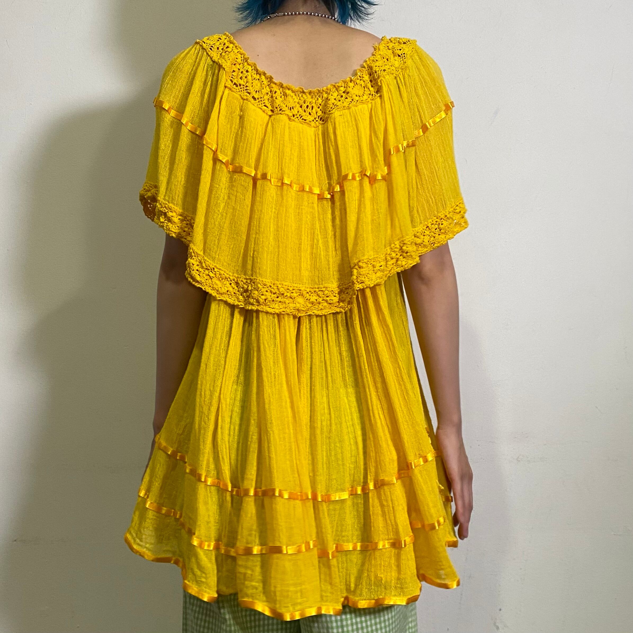 鮮やかなイエローカラーがパッと目を惹く、ギリシャガーゼのチュニックです。