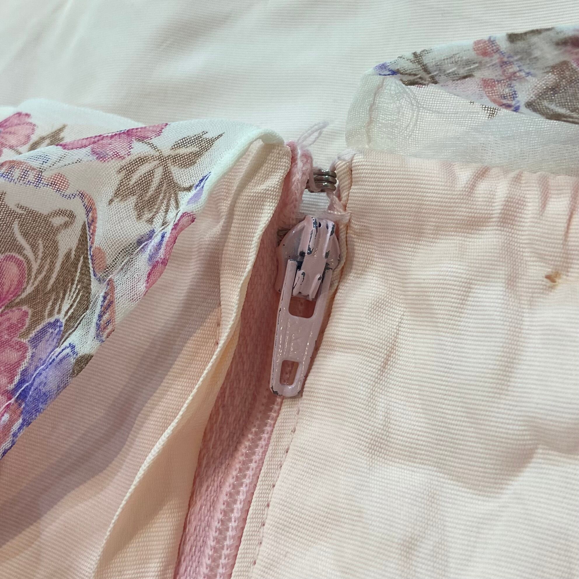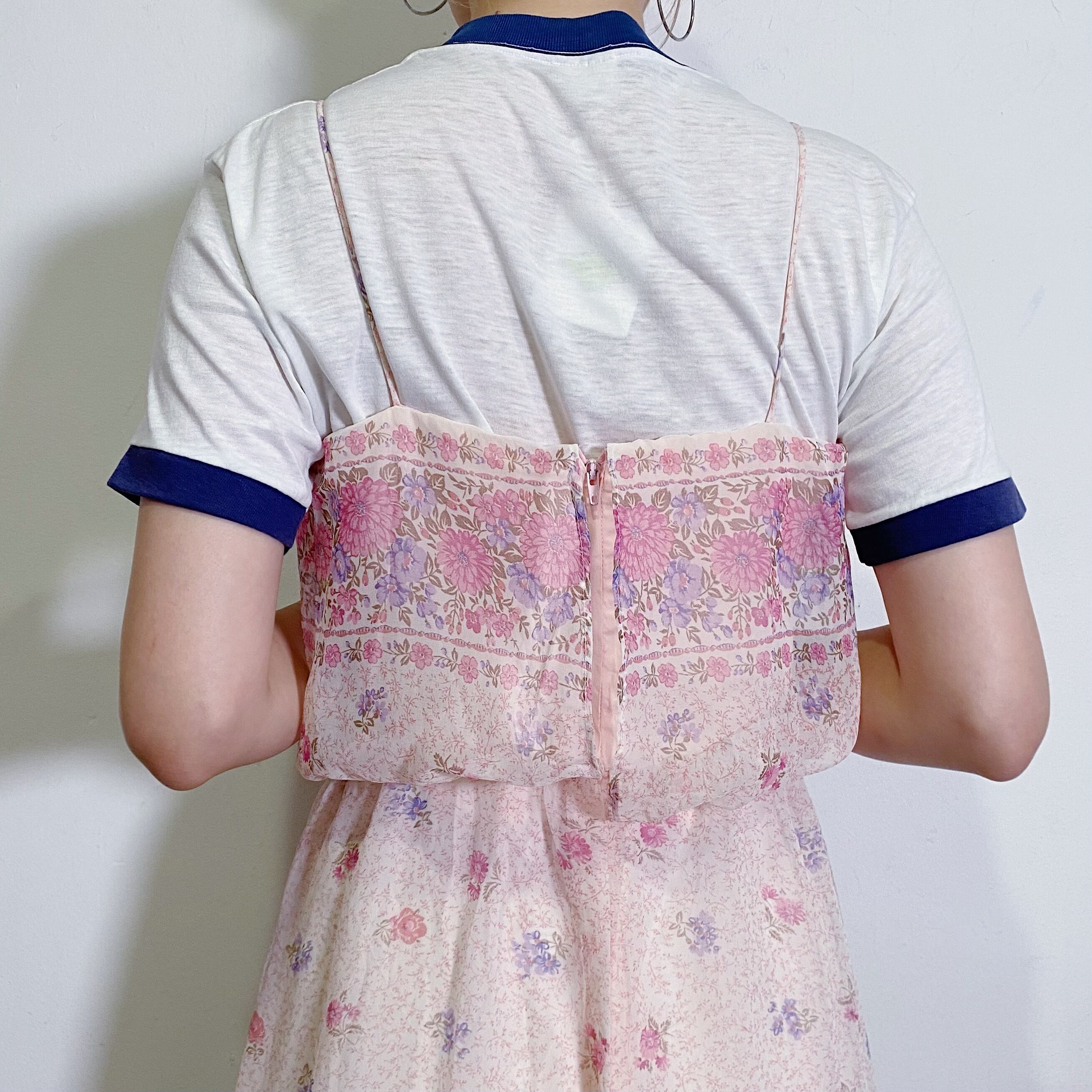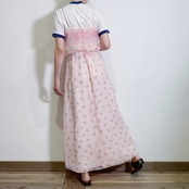 淡いピンクの色合いが可愛い、70年代の花柄ワンピースです。