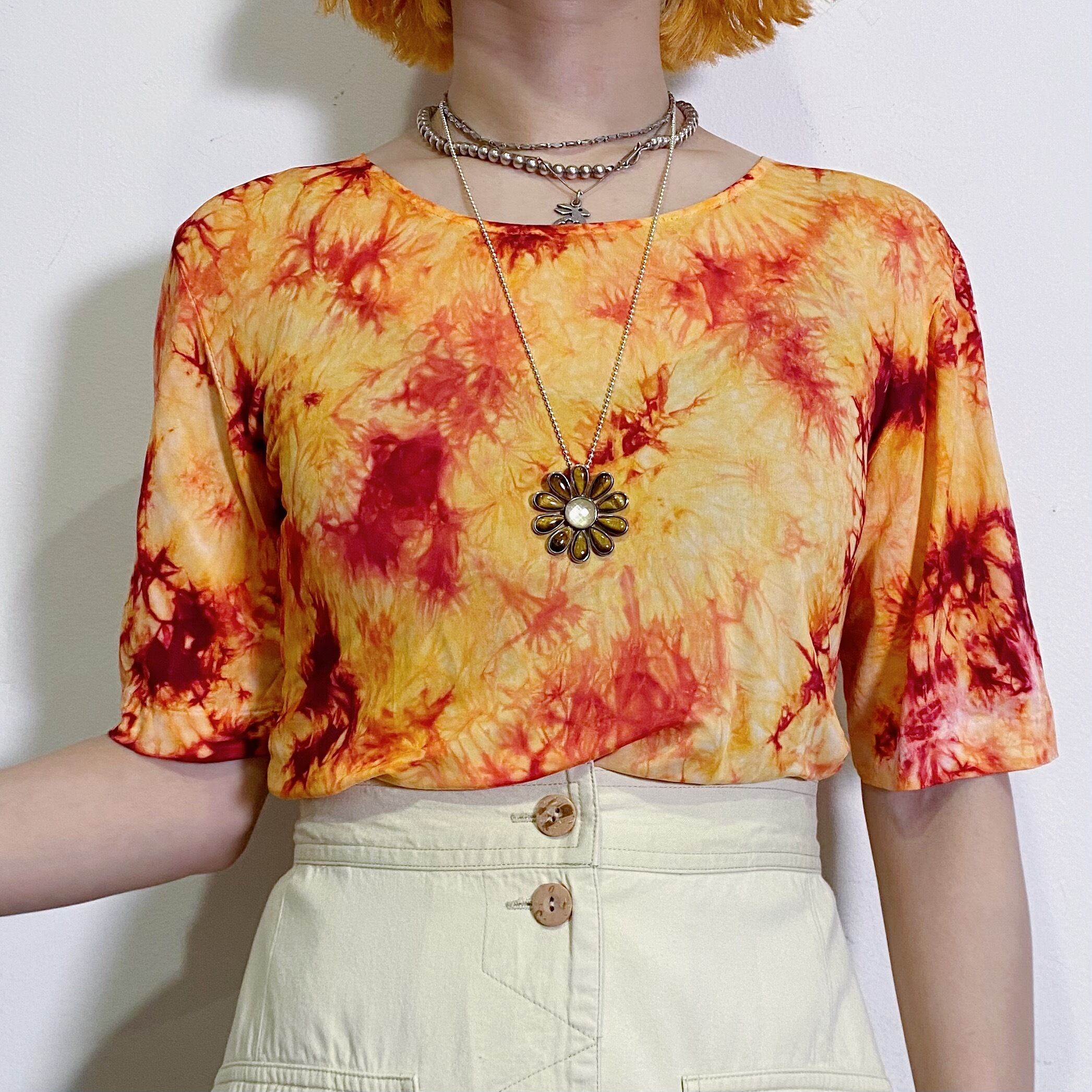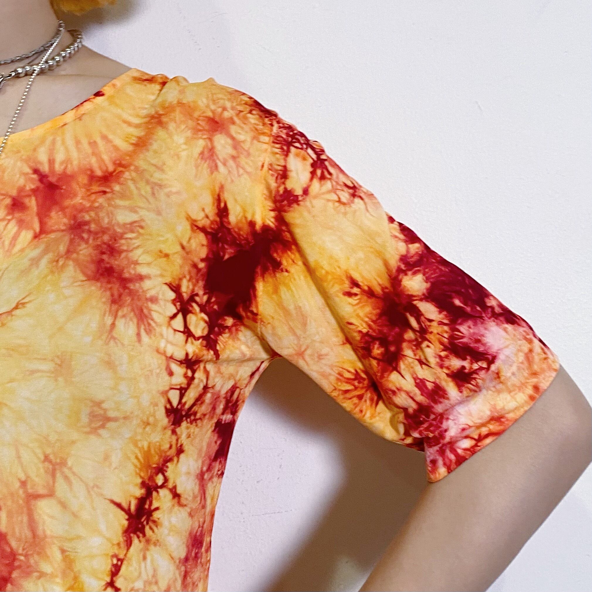orange tie-dye short sleeves top