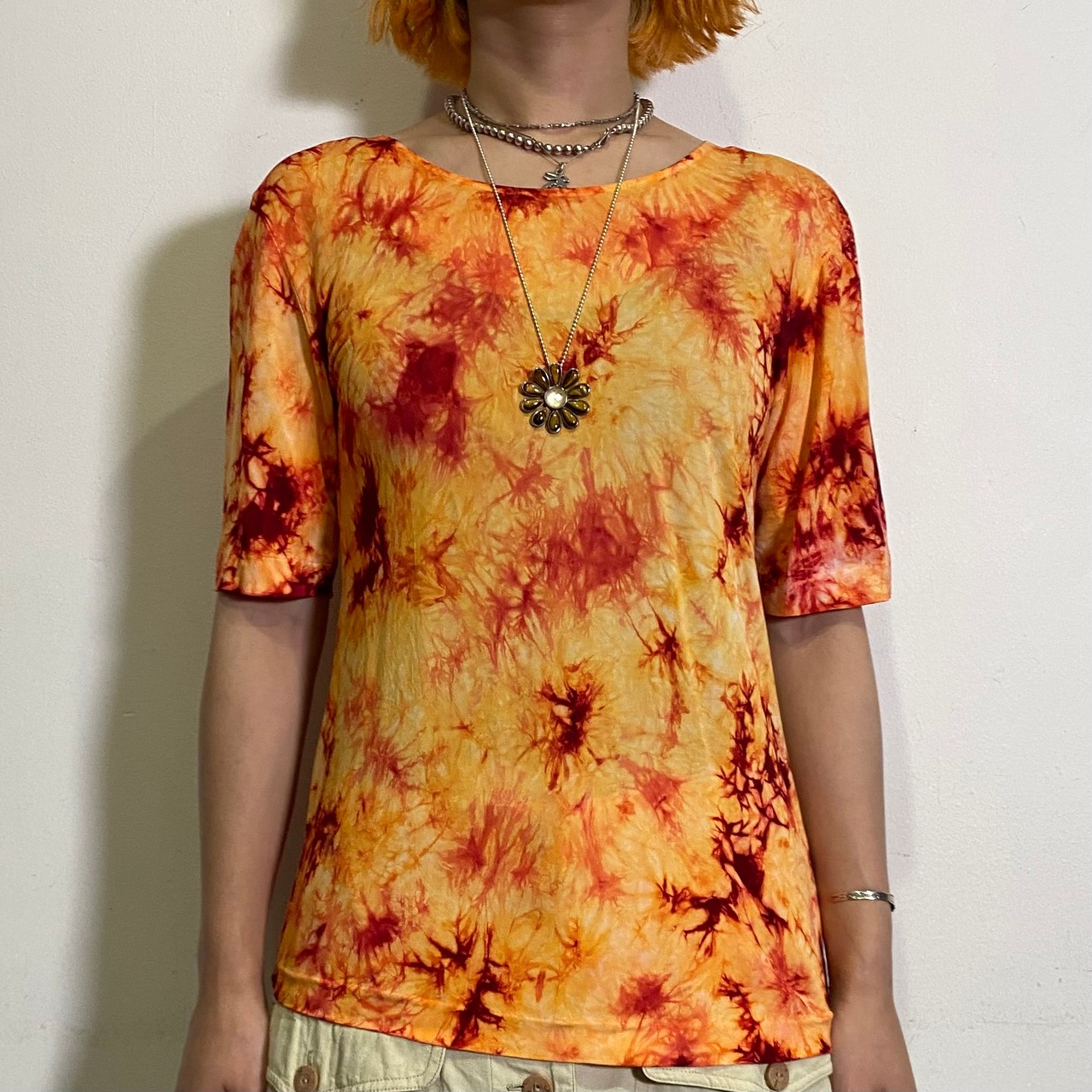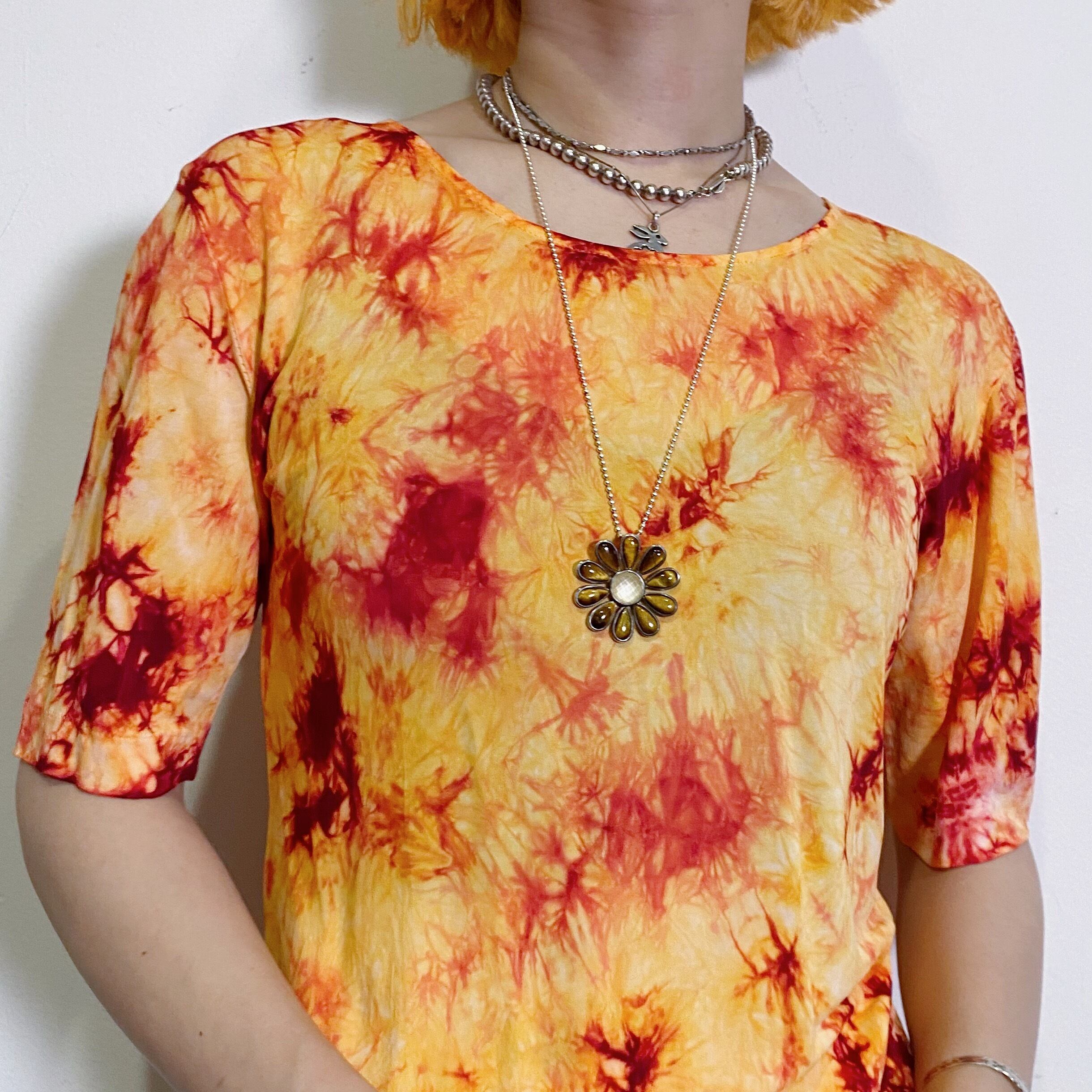 オレンジのタイダイ柄が可愛い、半袖トップスです。