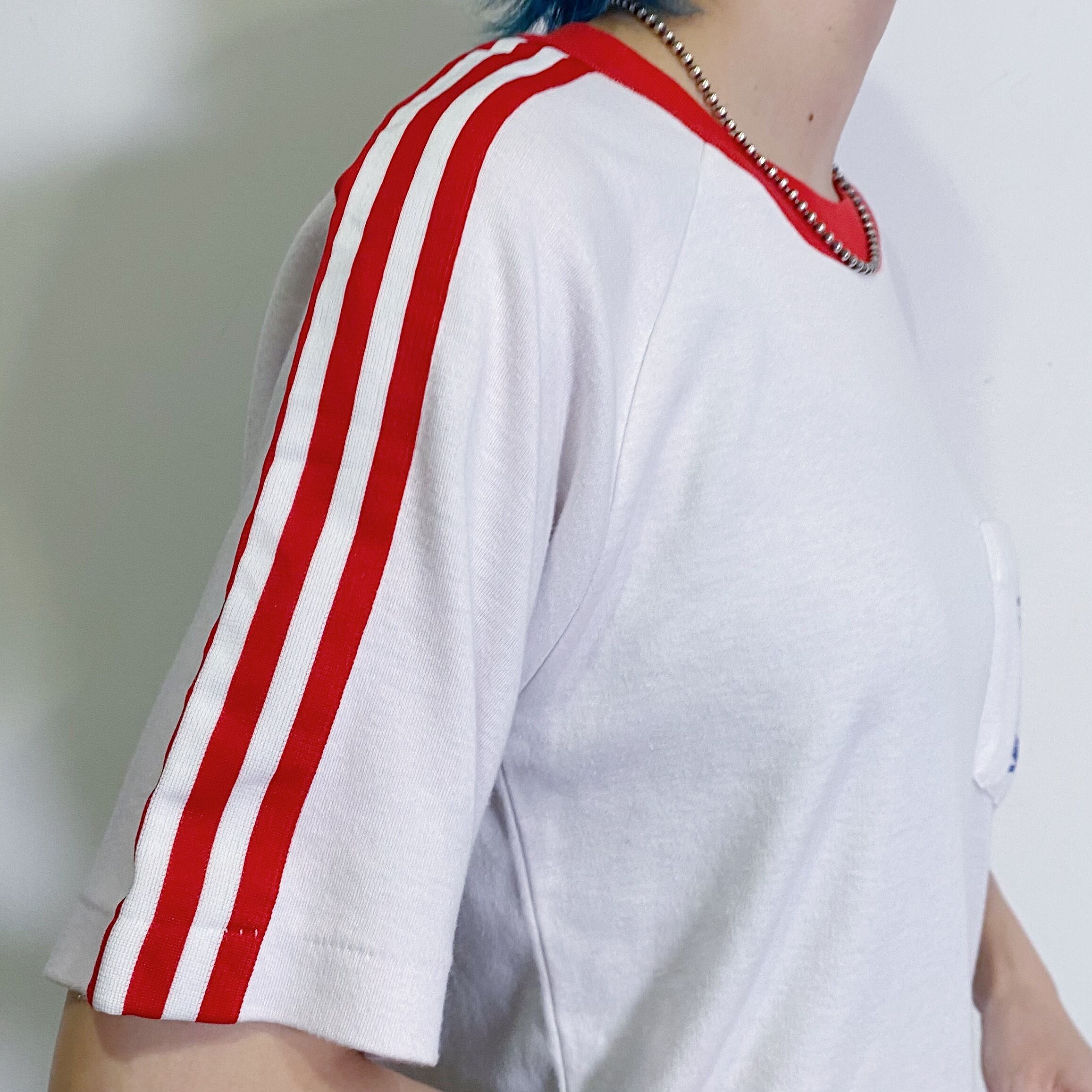 胸ポケットやバックのプリントが可愛い、リンガーTシャツです。