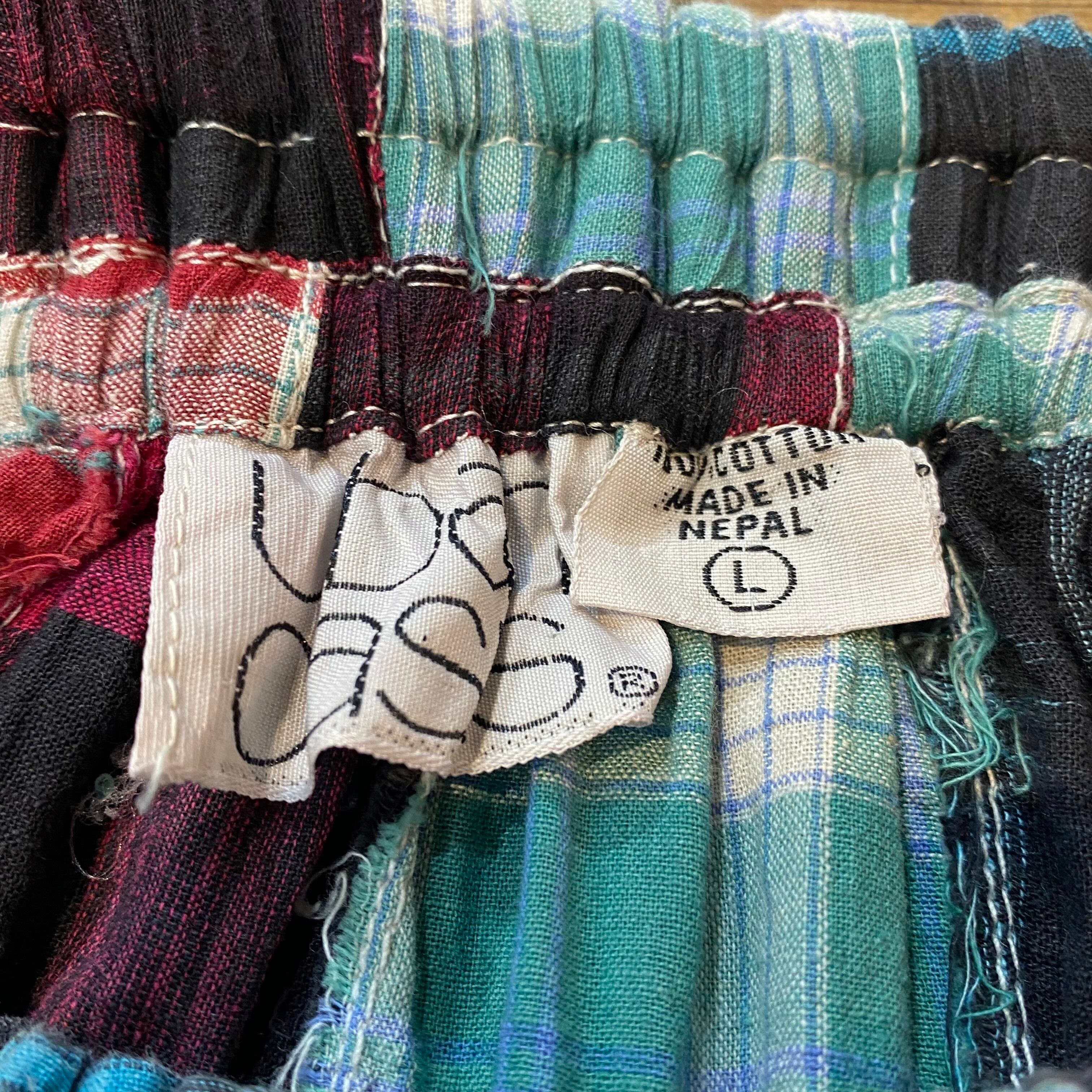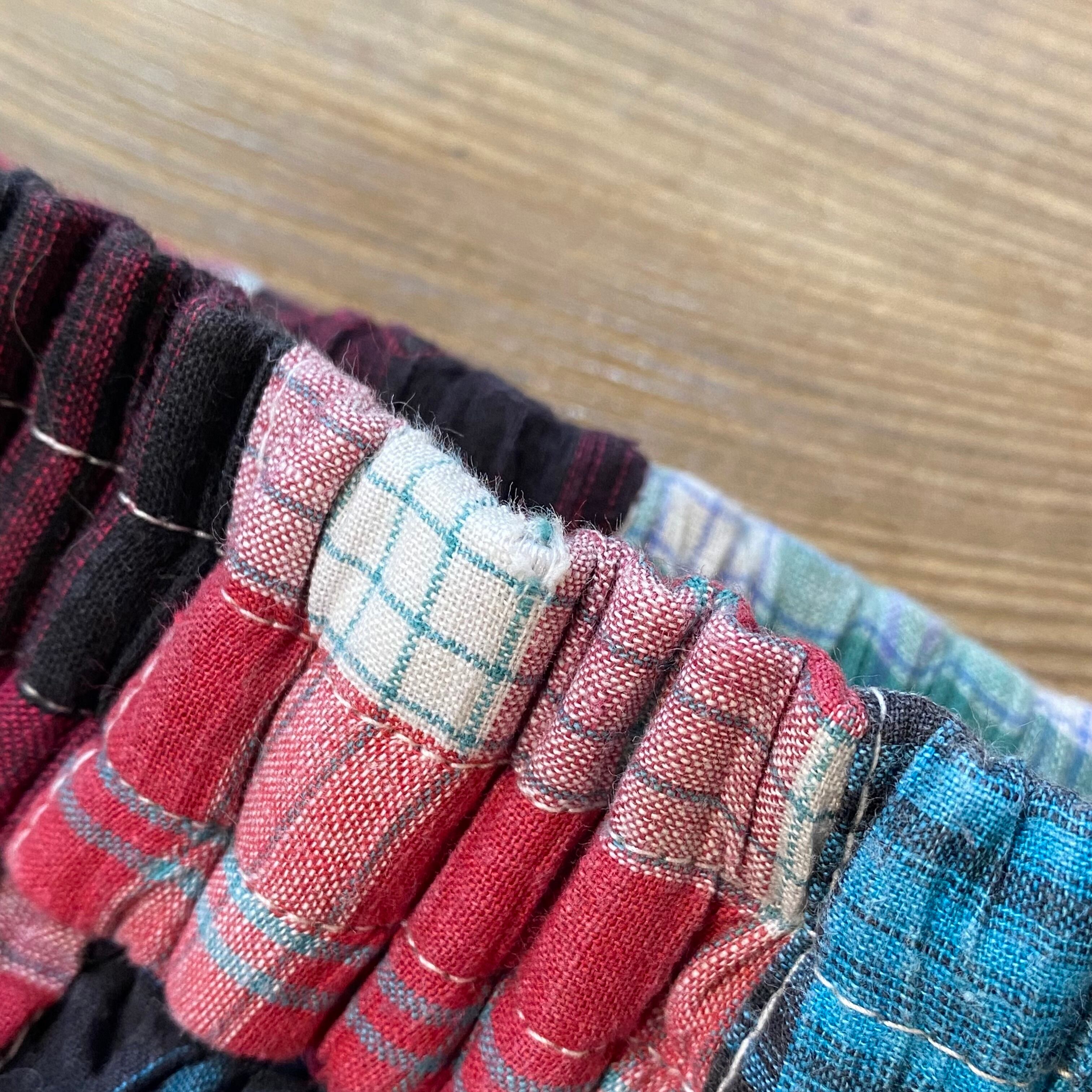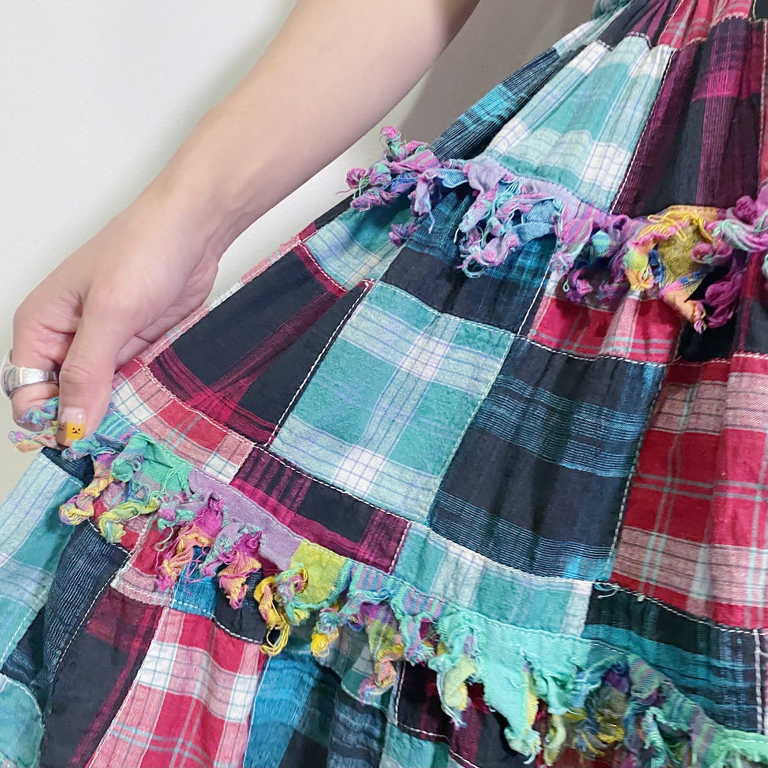 カラフルなチェックのパッチワークが可愛い、コットン素材のスカートです。