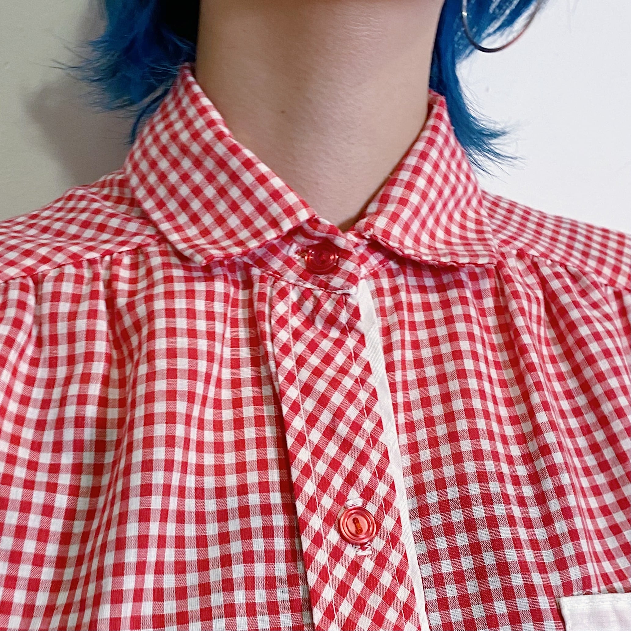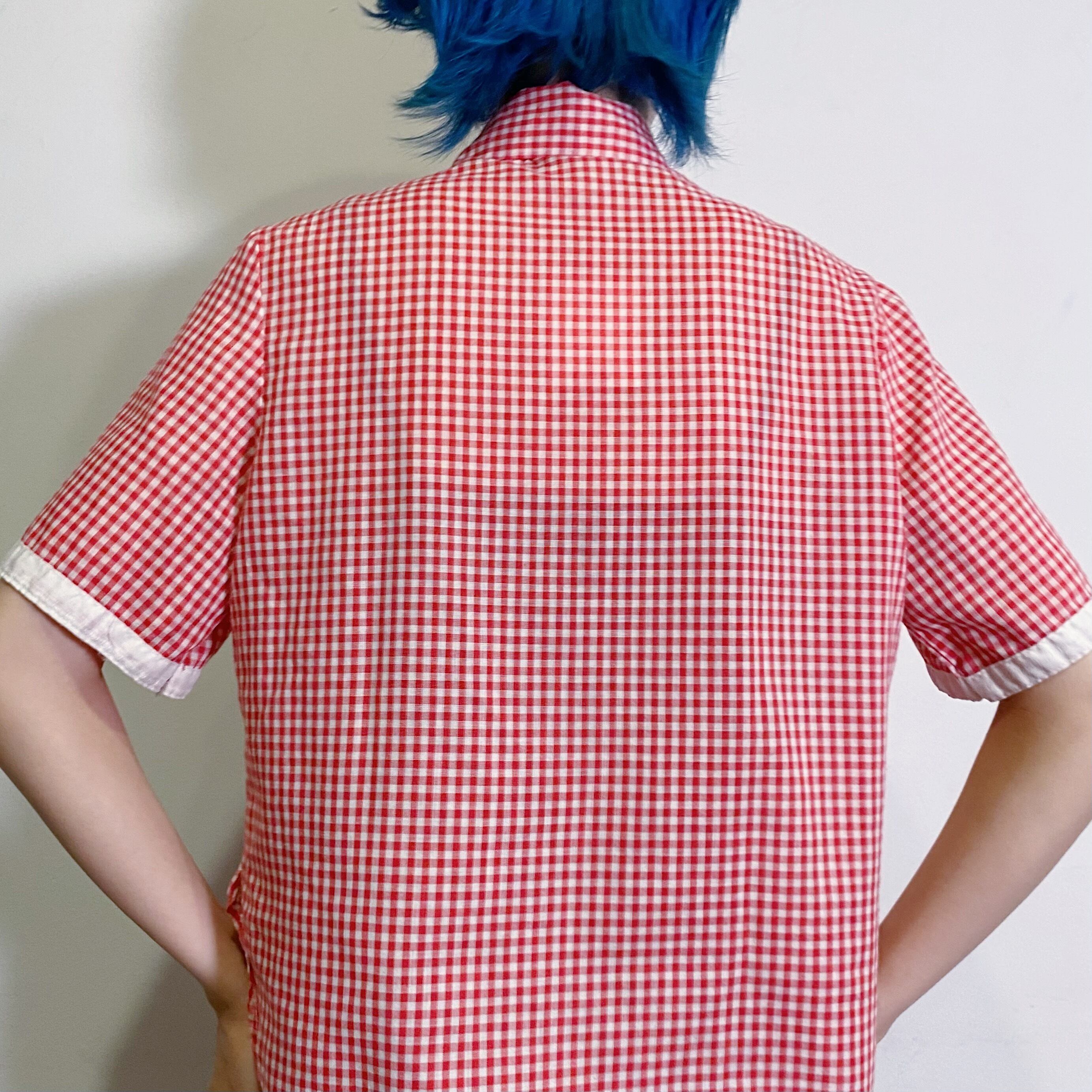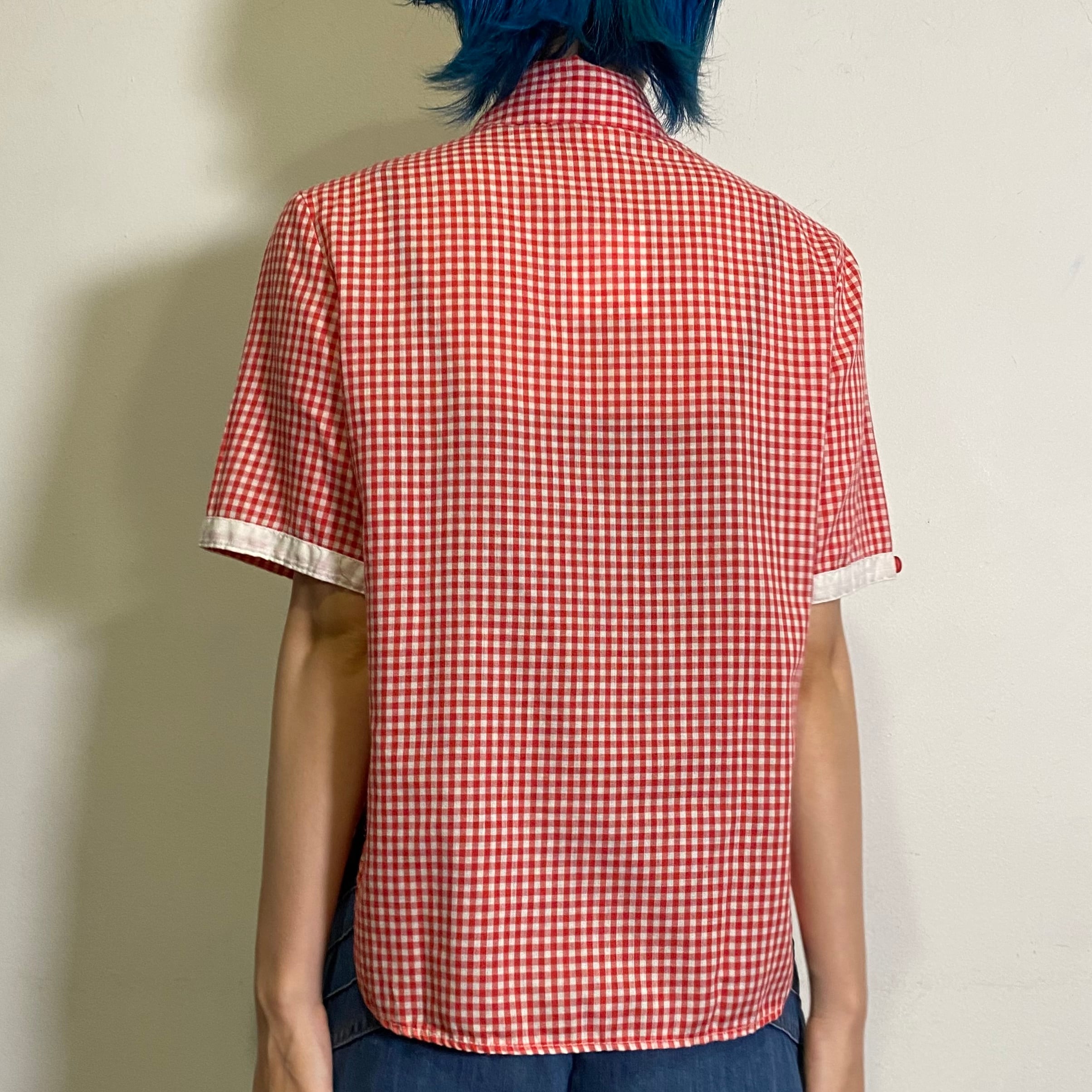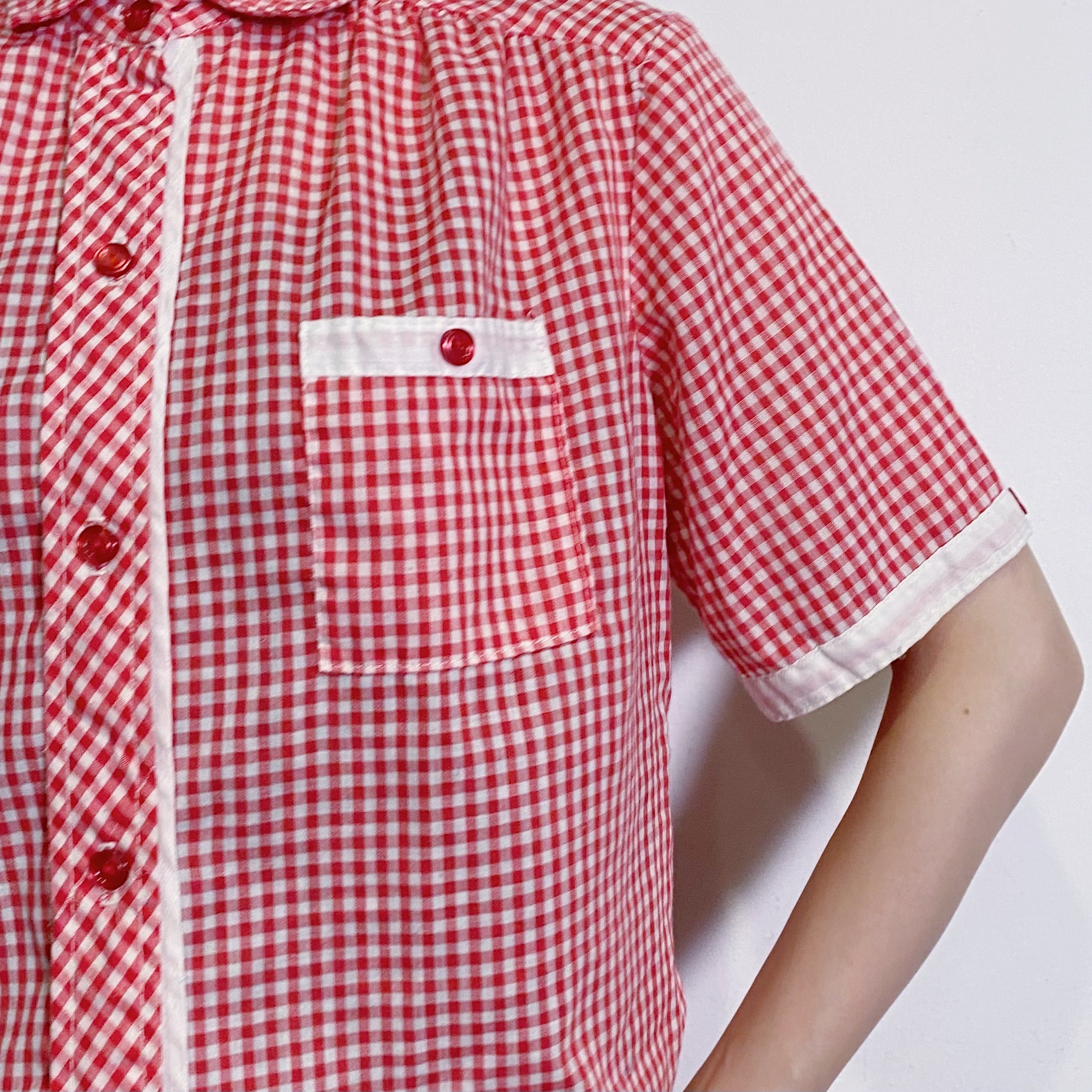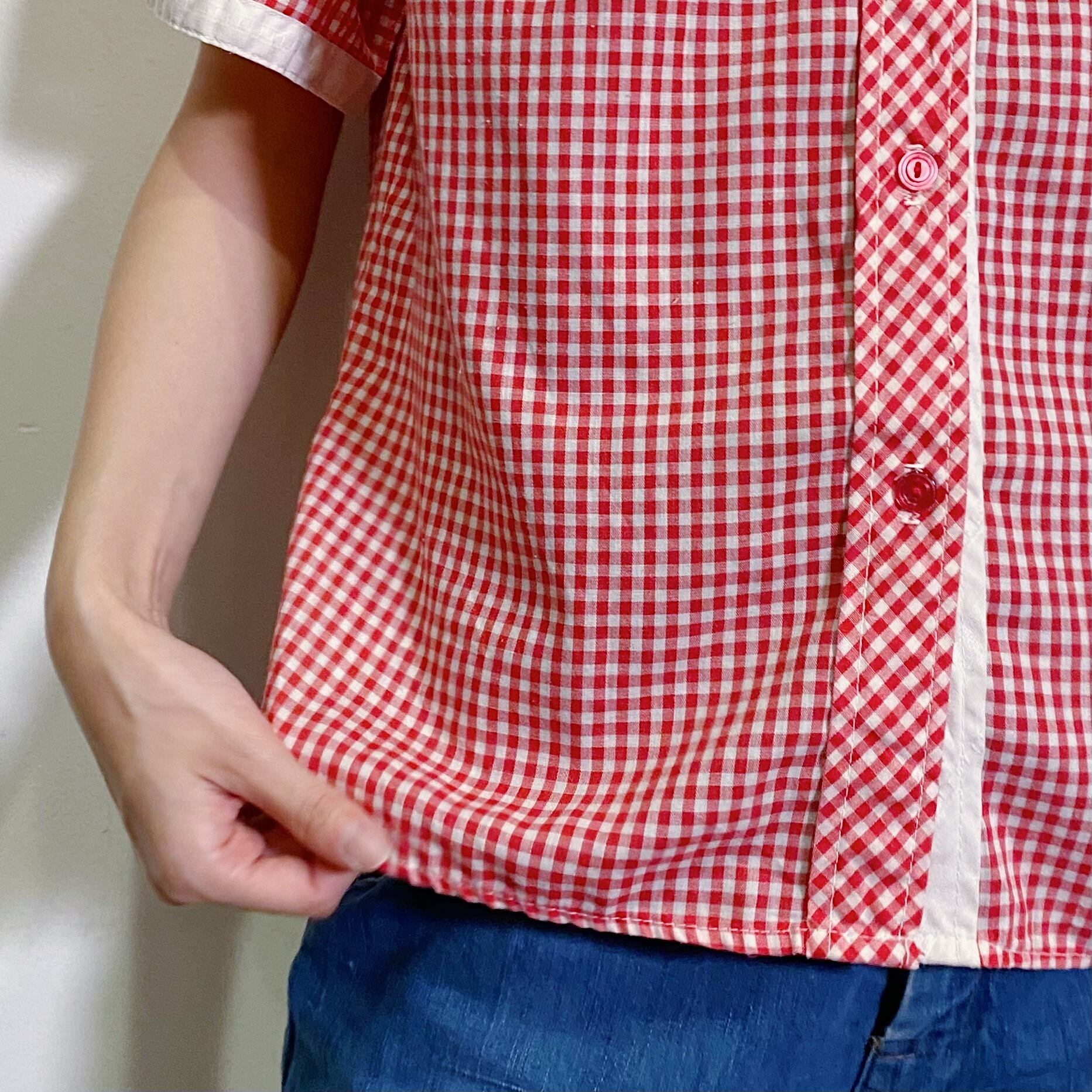 レッド×ホワイトのギンガムチェックが可愛い、70年代のシャツです。
