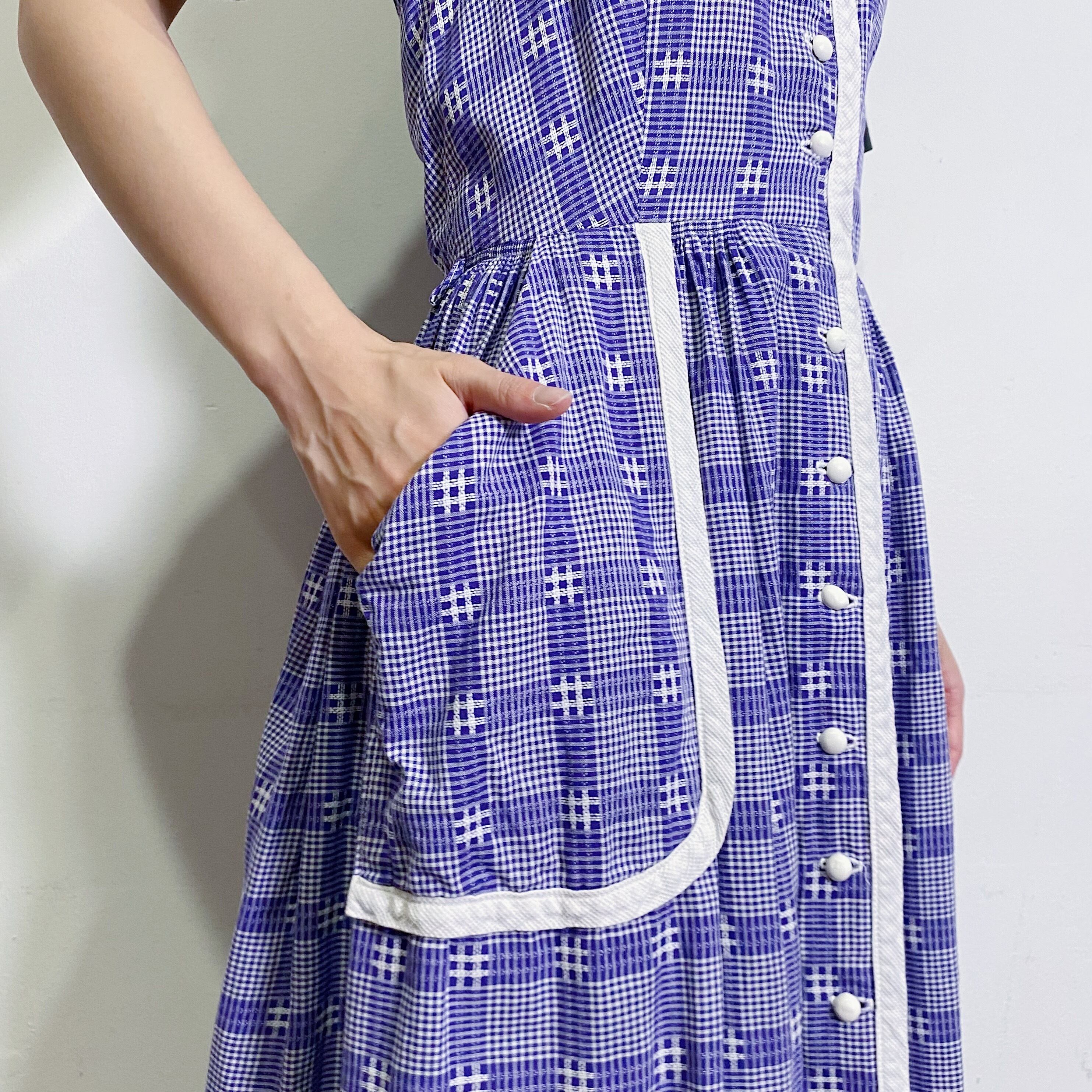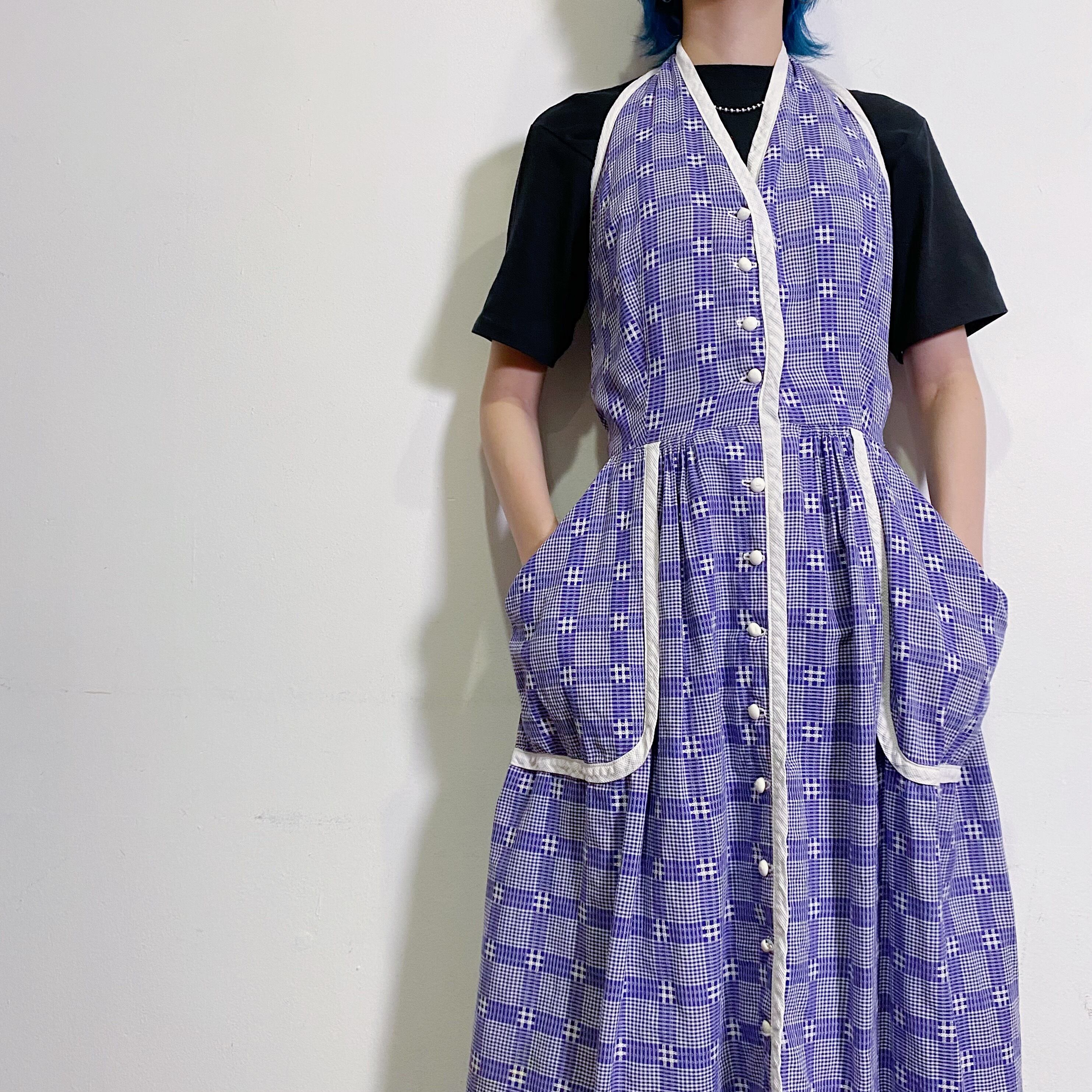 パープルのチェック柄が可愛い、50~60年代のワンピースです。