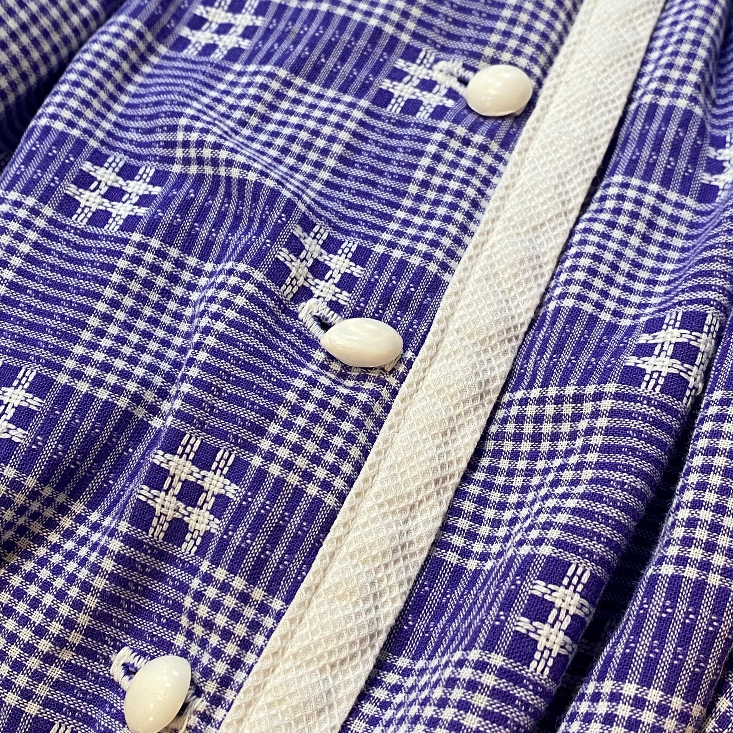 50-60s purple cotton plaid dress
