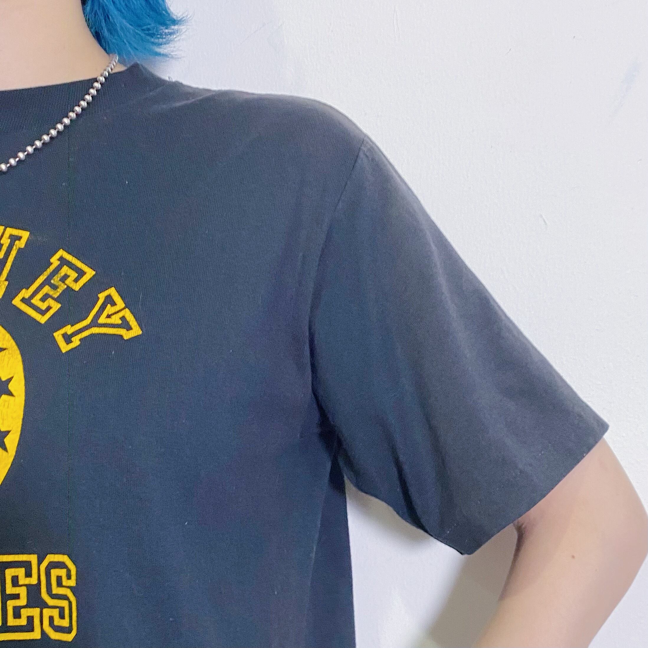 ブラックベースにイエローのプリントが映える、80年代のTシャツです。
