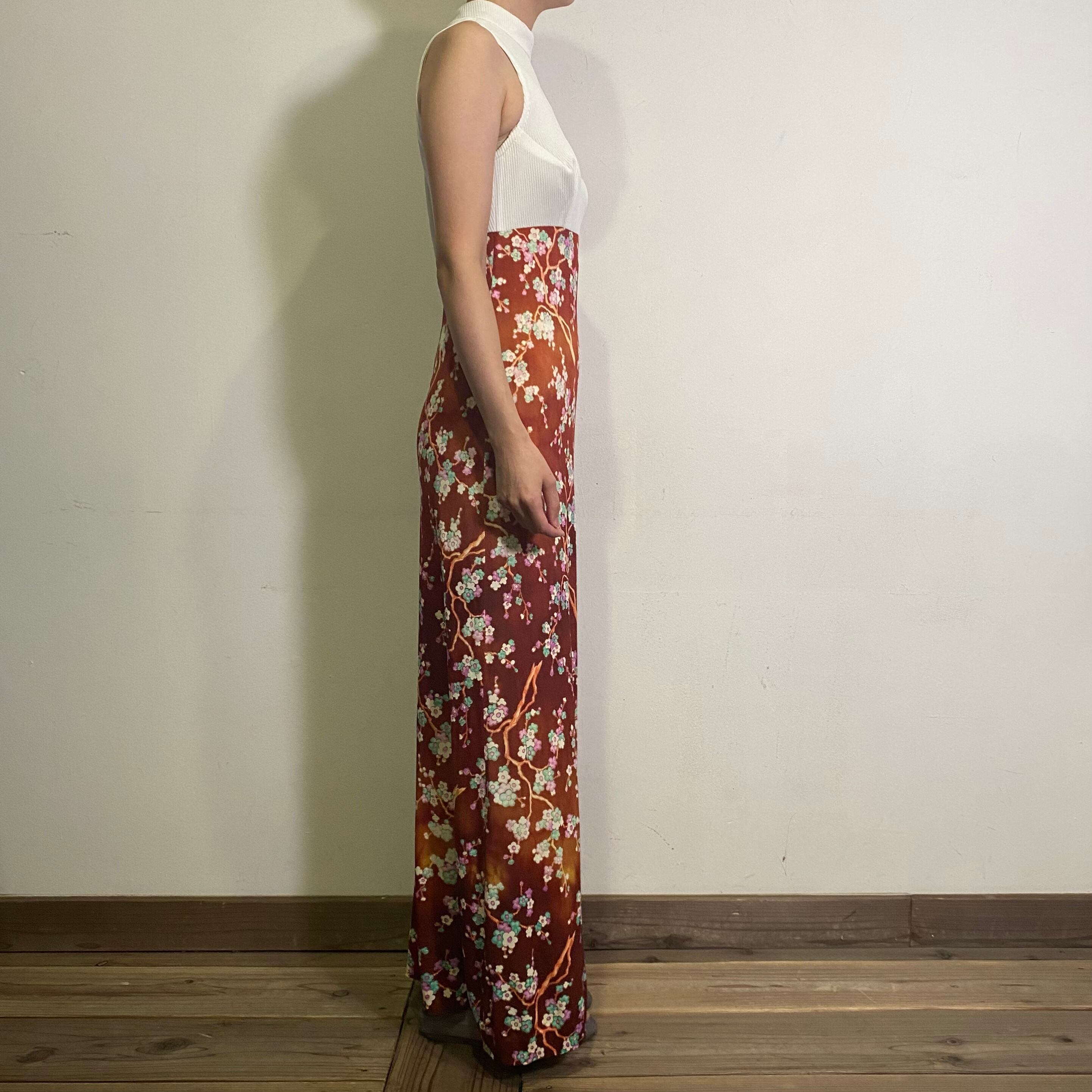 梅のようなオリエンタルな柄が可愛い、60年代のロングワンピースです。