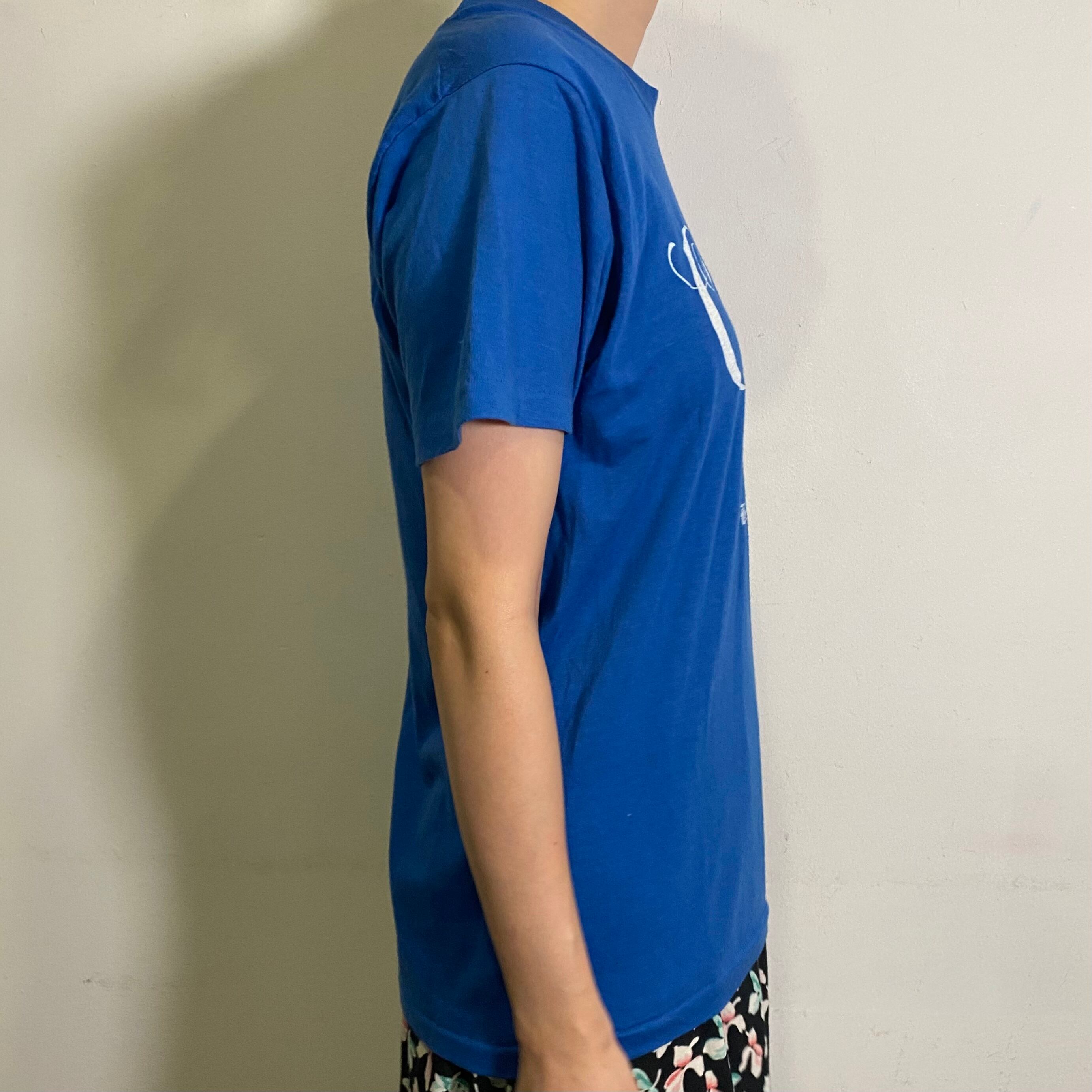 ブルーカラーにホワイトのロゴが可愛い、80年代のTシャツです。
