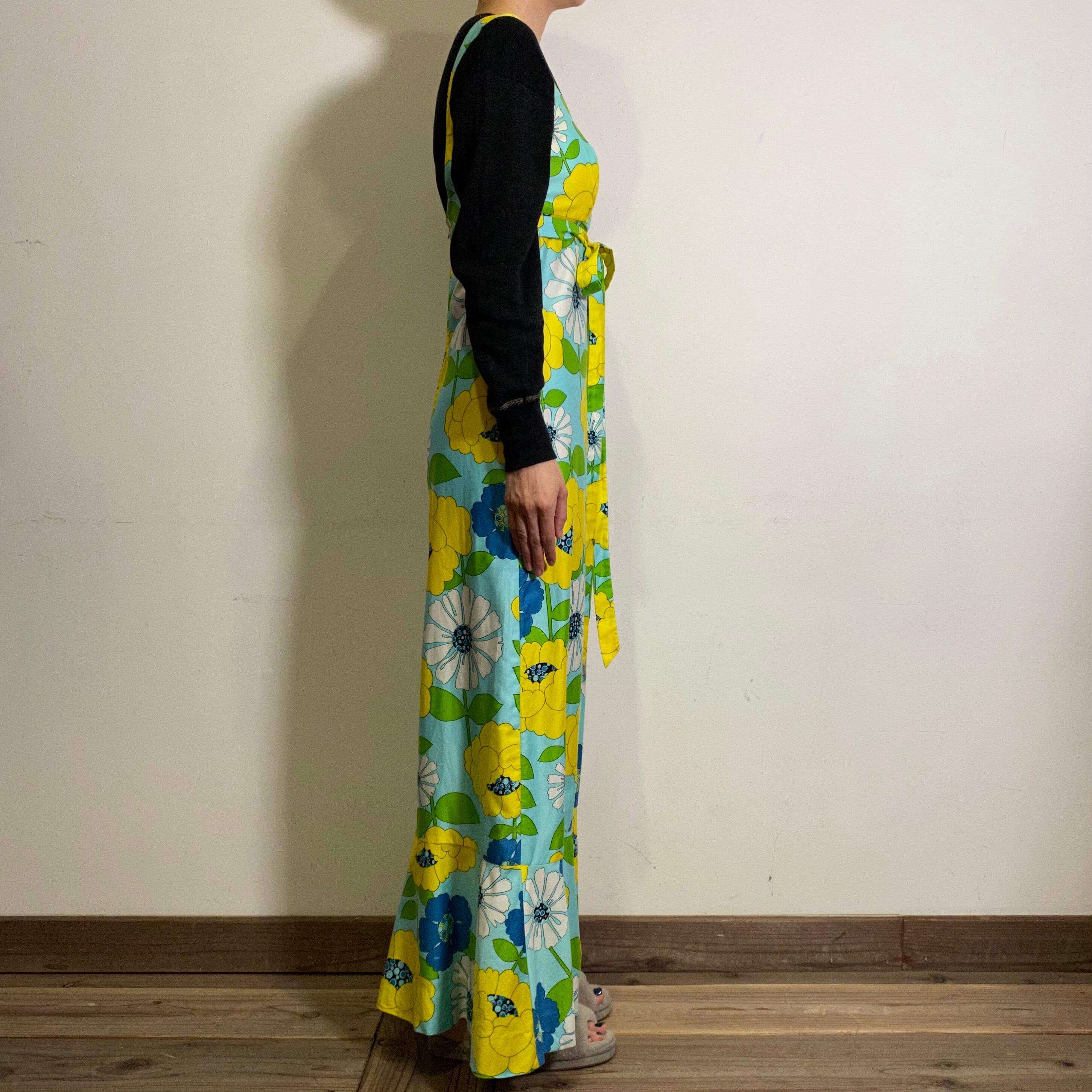 ハッピーな大きめの花柄がとっても可愛い、70年代のジャンプスーツです。