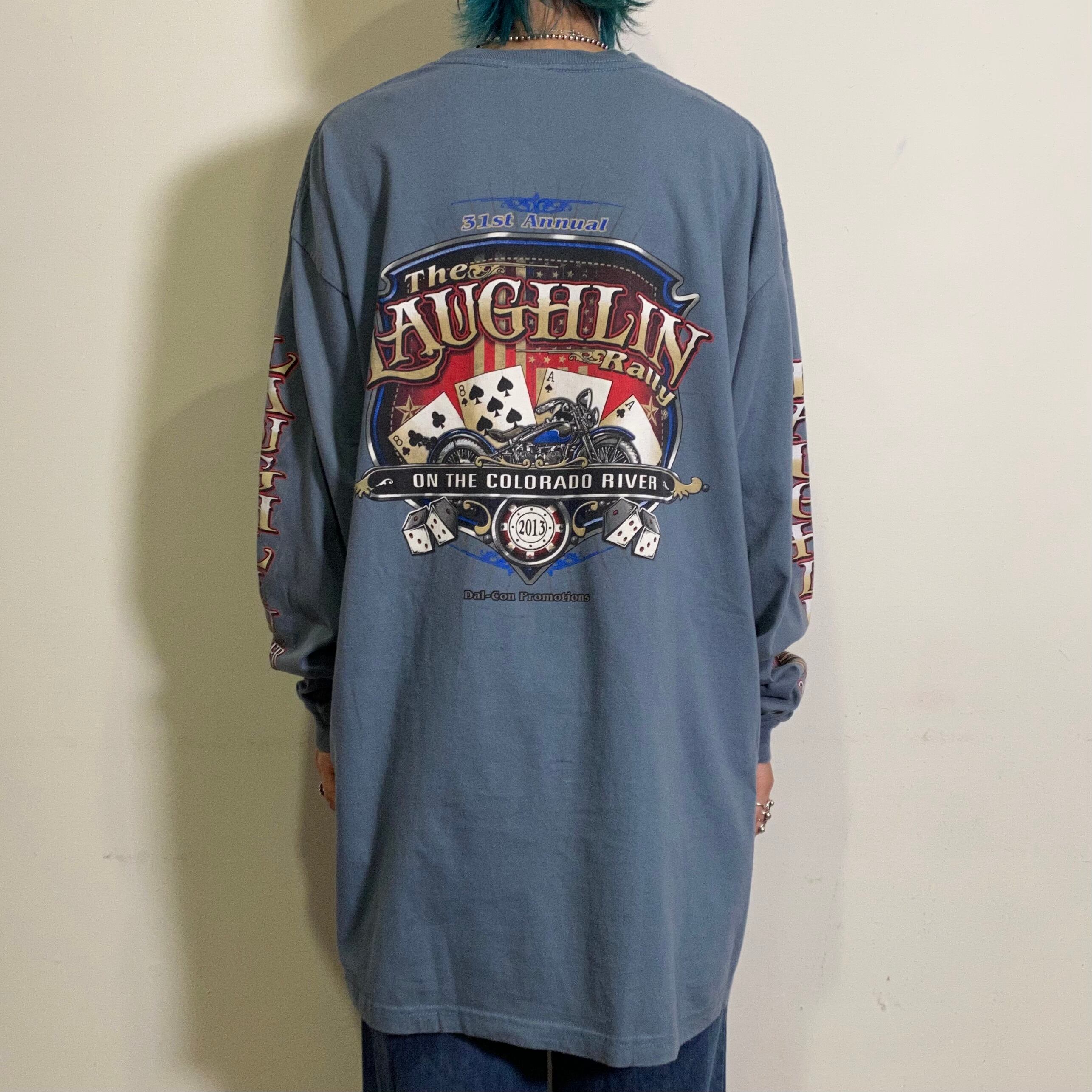 フロントだけでなく、バックや袖にまでプリントが入ったロンTです。