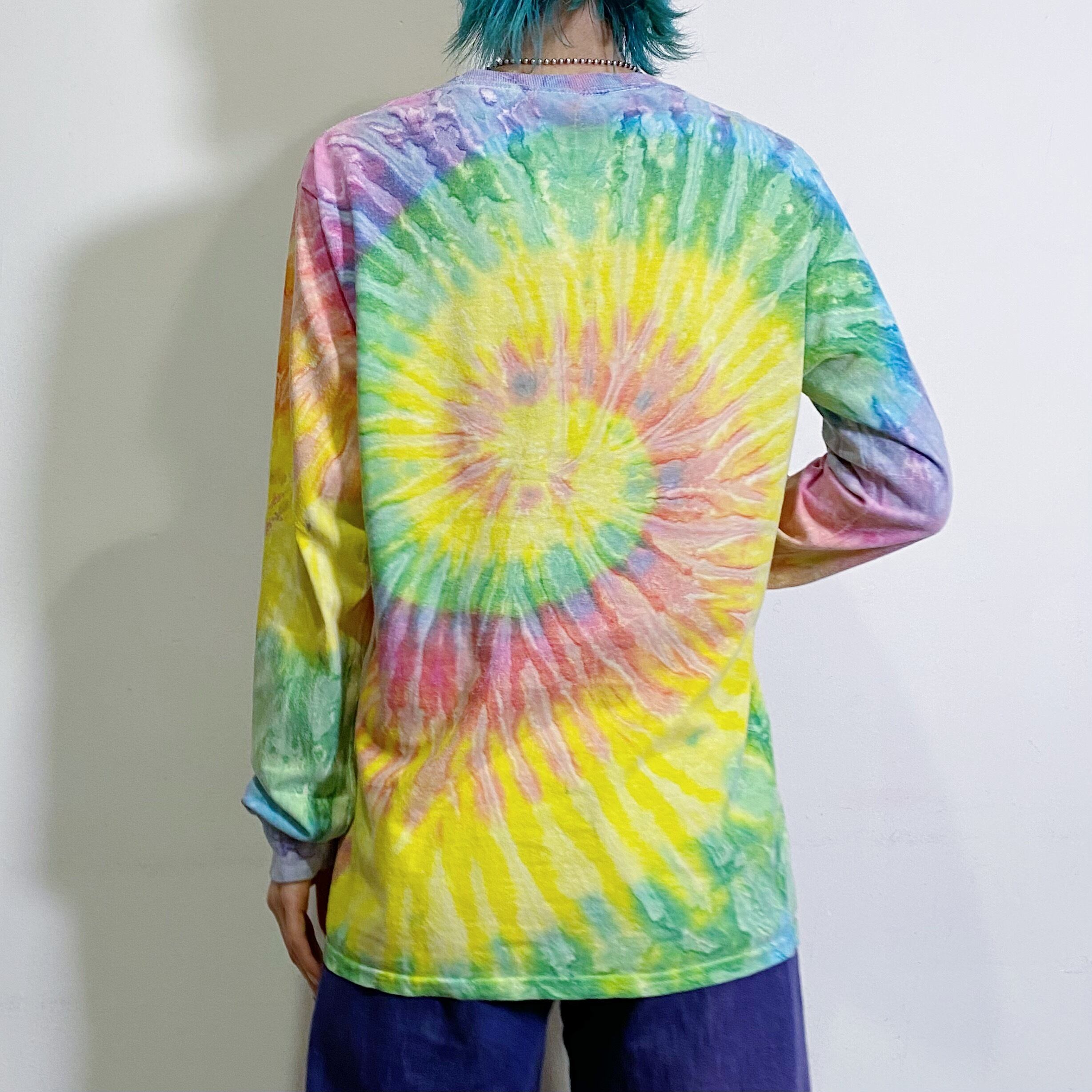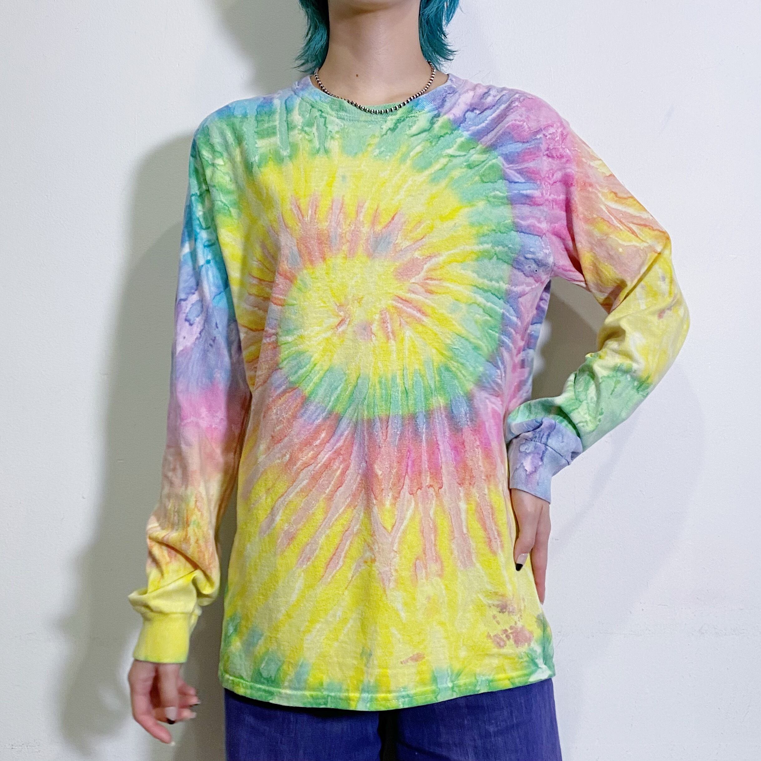 カラフルでハッピーな色合いのタイダイ柄が可愛いロンTです。