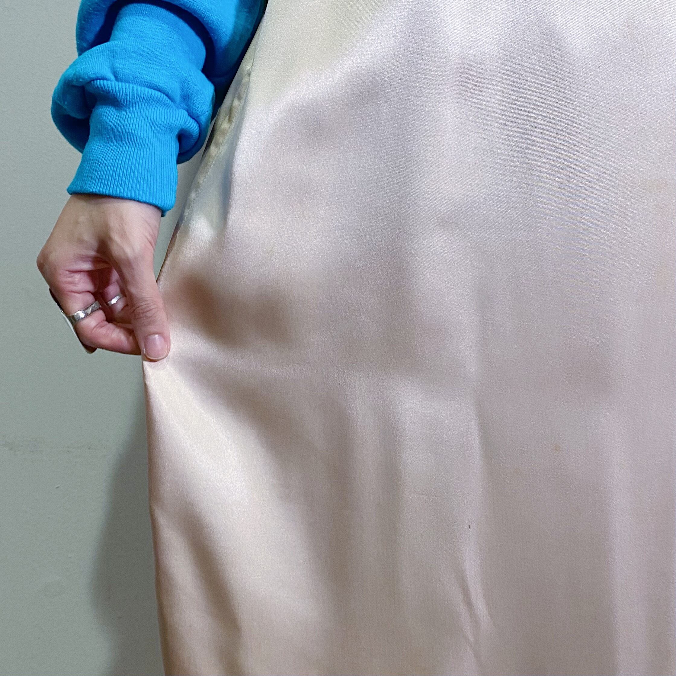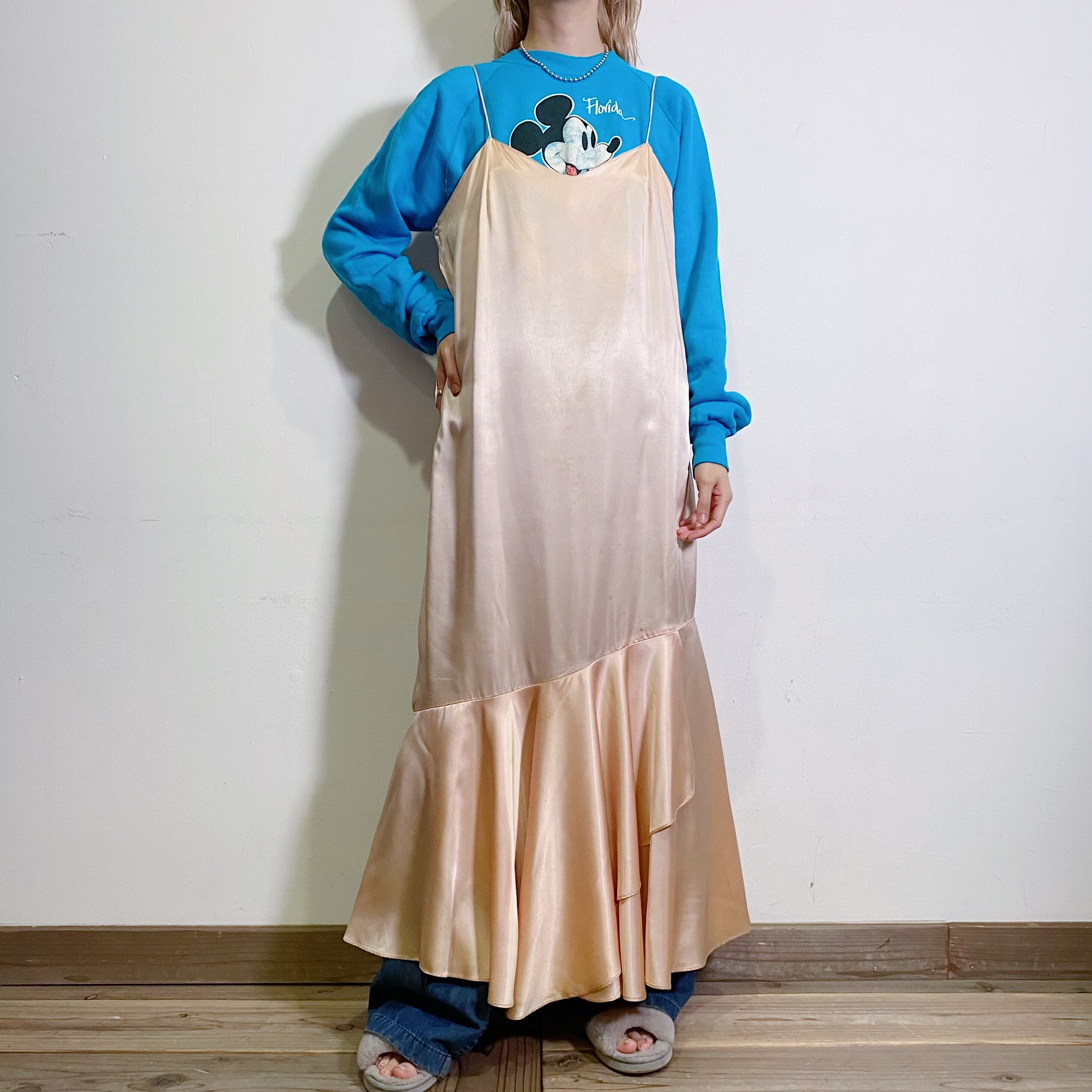 ピンクゴールドのような色合いが可愛い、70年代のキャミワンピースです。